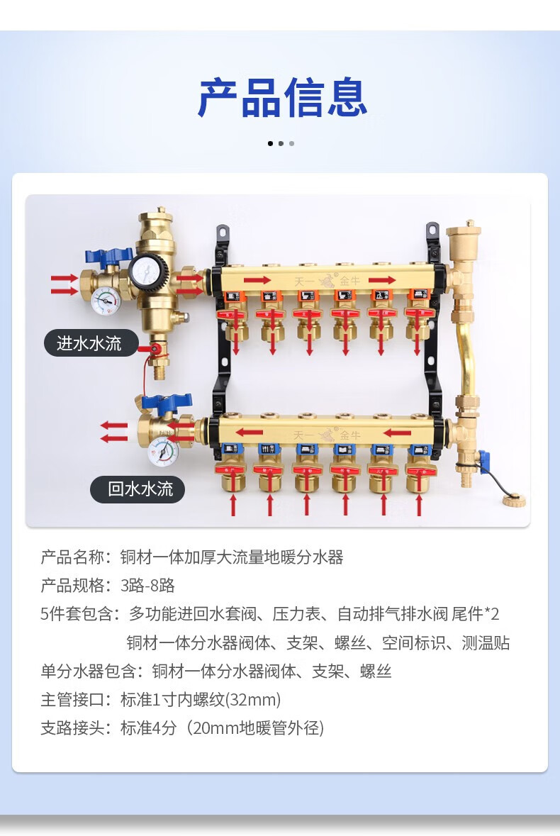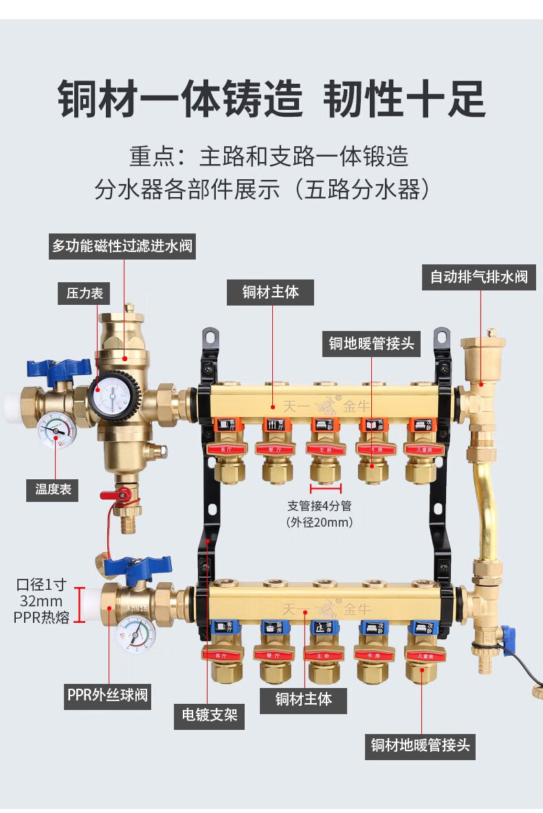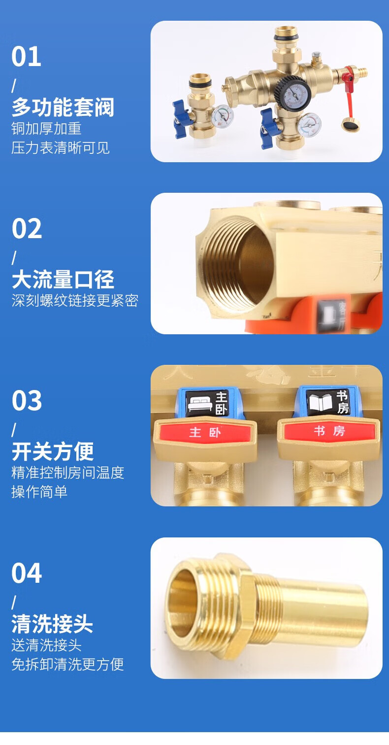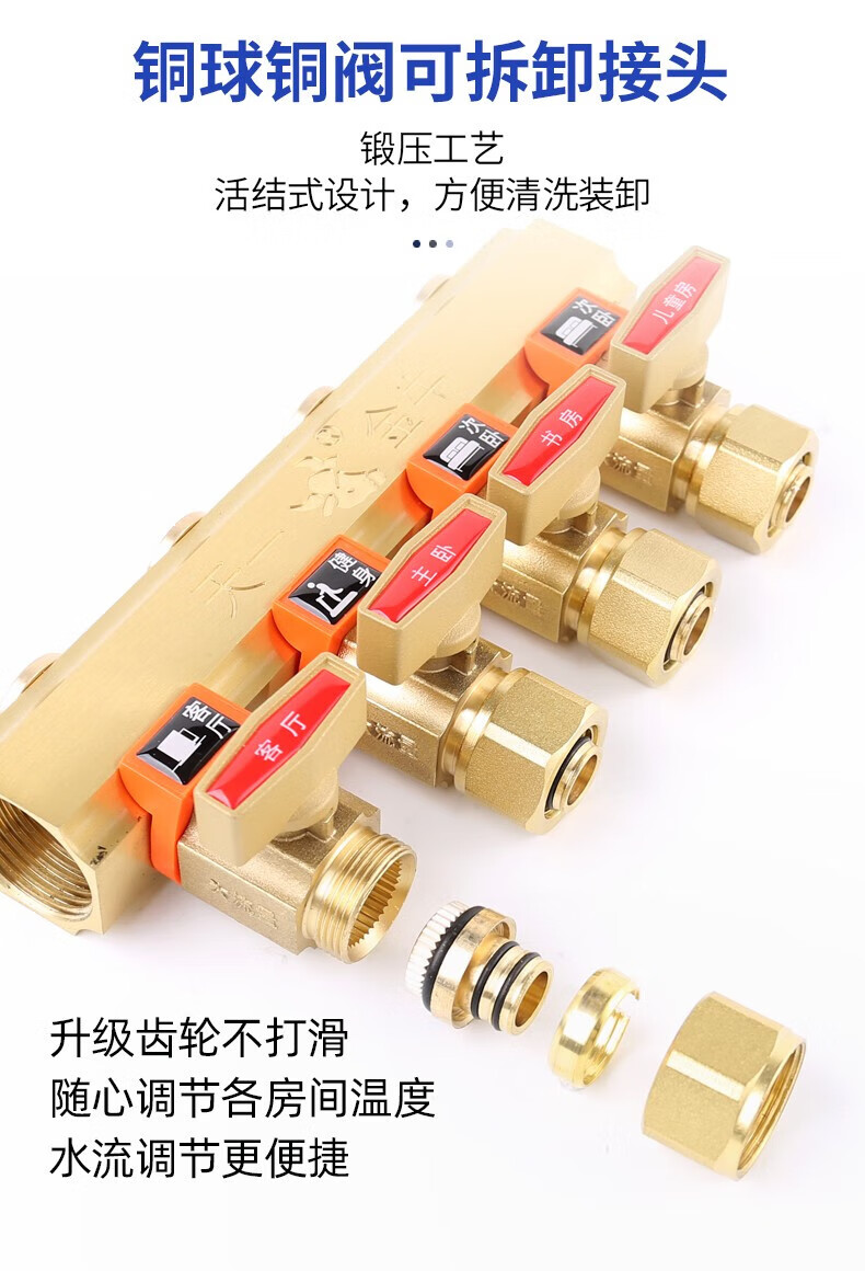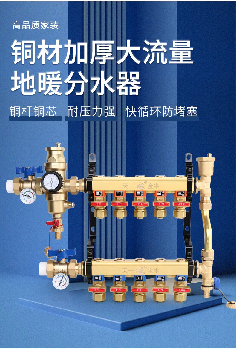 Tianyi Jinniu floor heating floor heating water collector is cleanable and does not require disassembly of copper five-way single water distributor (washable)
