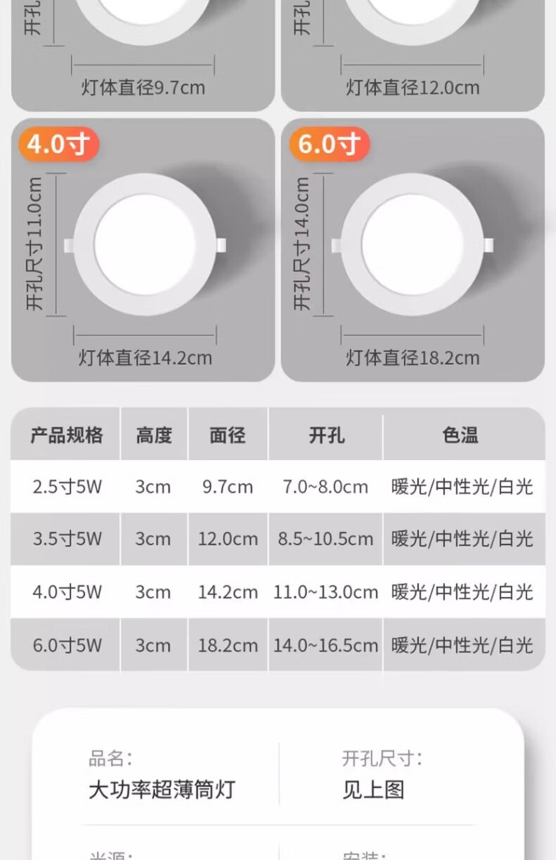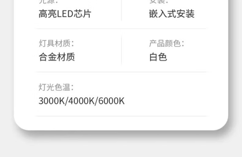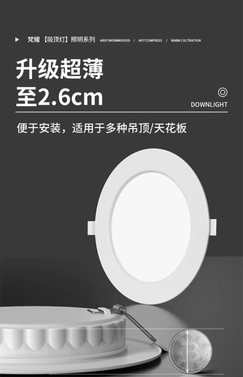 Fanyao LED downlight 4 inches 12W white light 6000K ultra-thin embedded hole size 110-130mm ceiling light crystal lamp