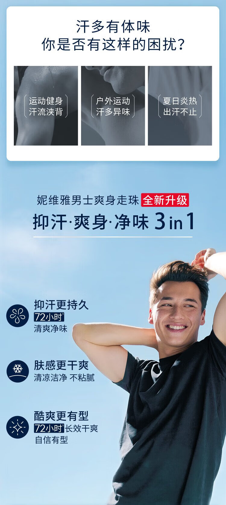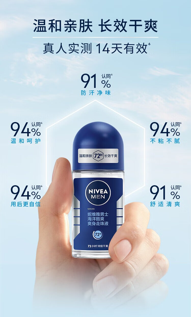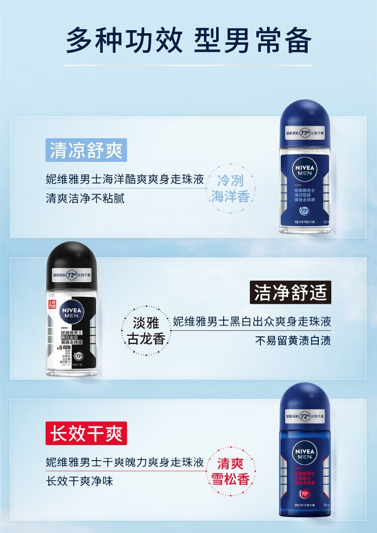 NIVEA antiperspirant underarm antiperspirant men's black and white outstanding body lotion 50ml*3
