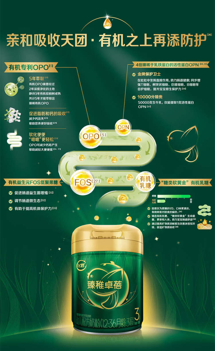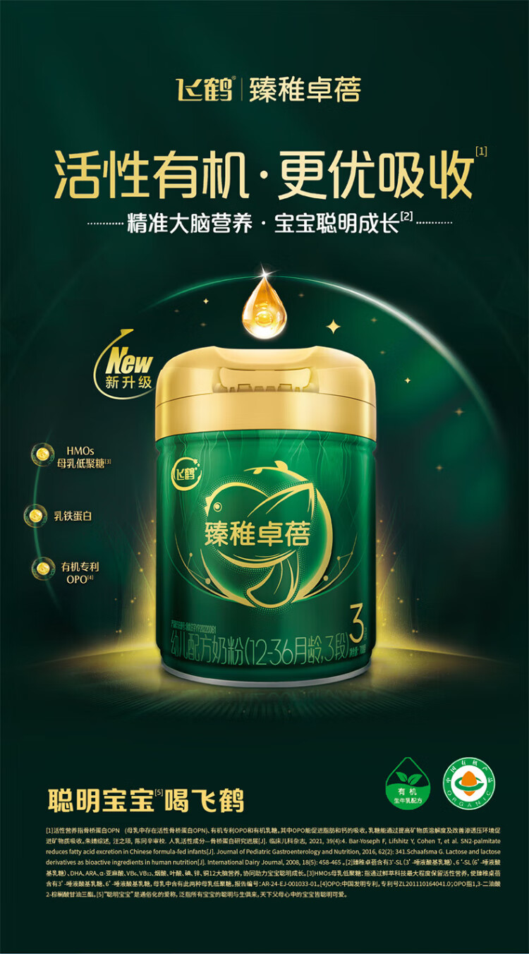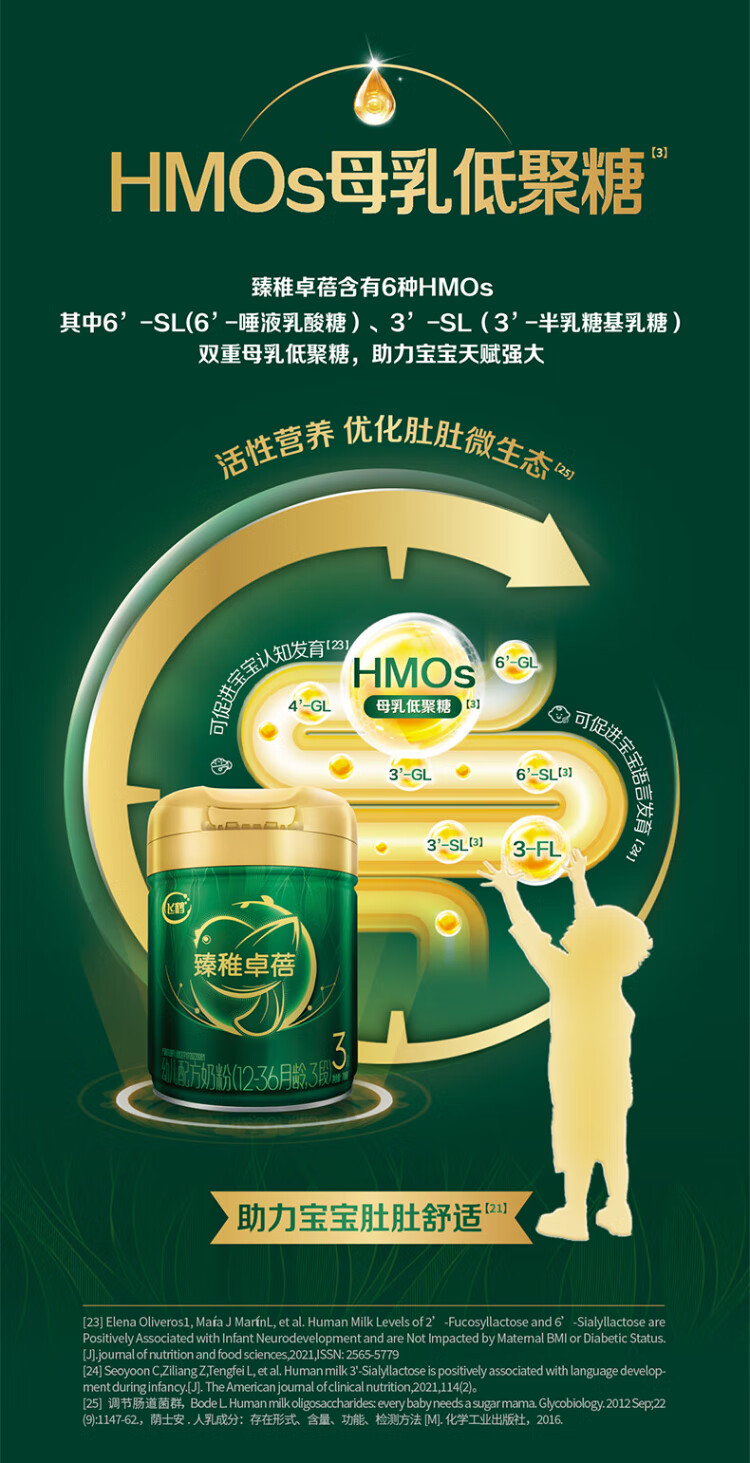 Feihe Zhenzhi organic upgraded 6 kinds of HMOs Zhenzhi Zhuobei 3-stage formula milk powder (1-3 years old) 300g