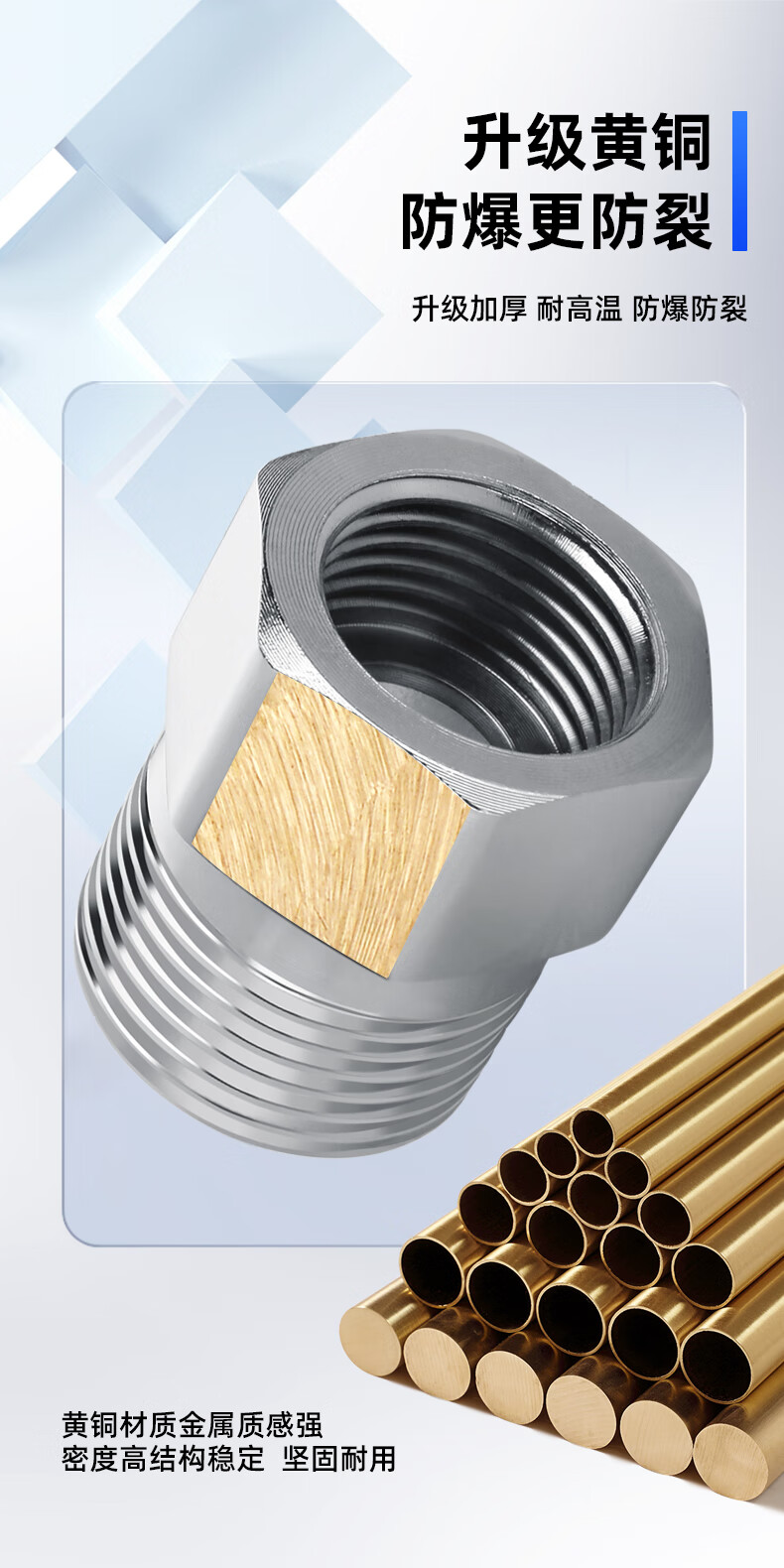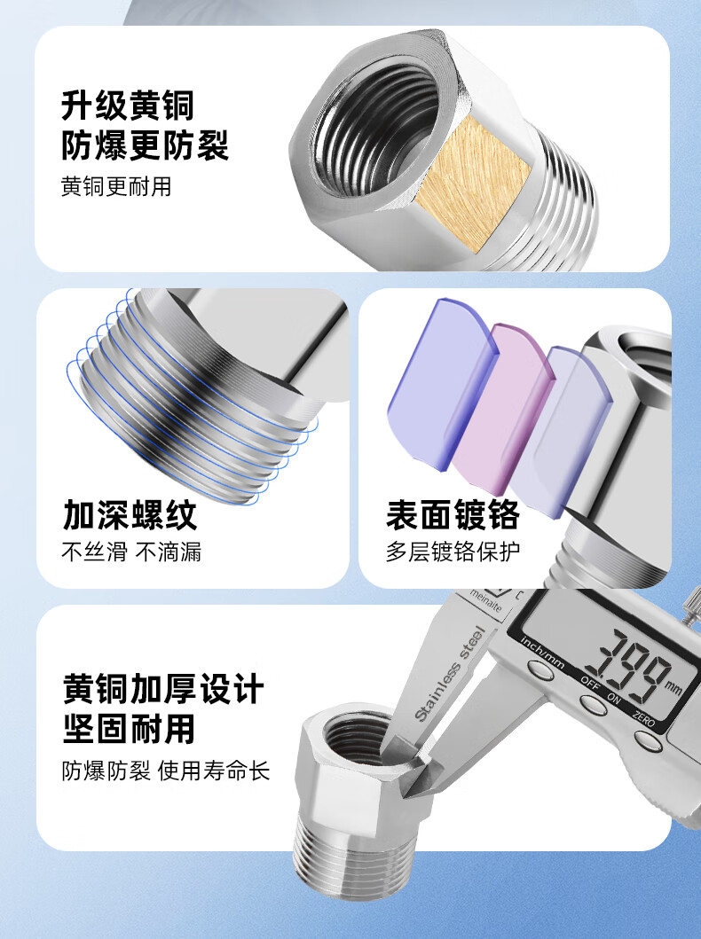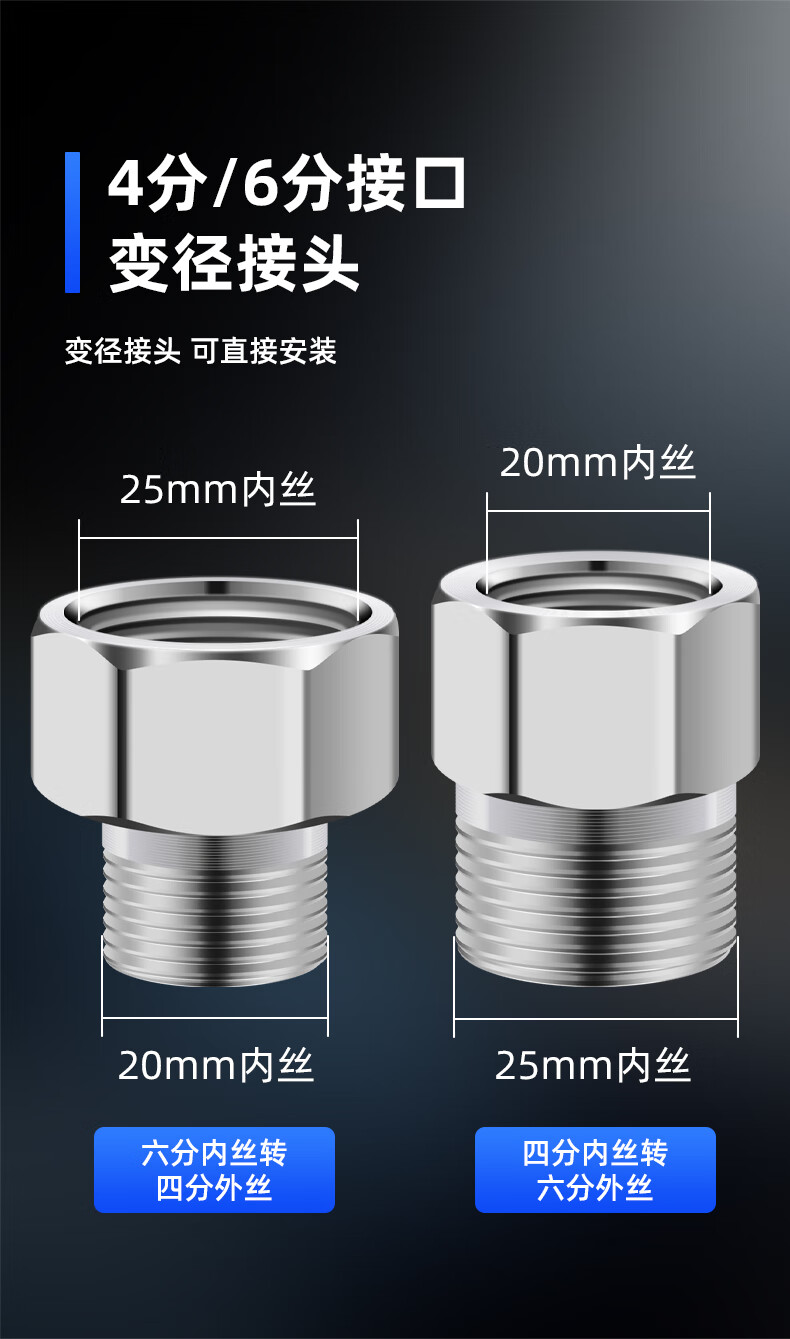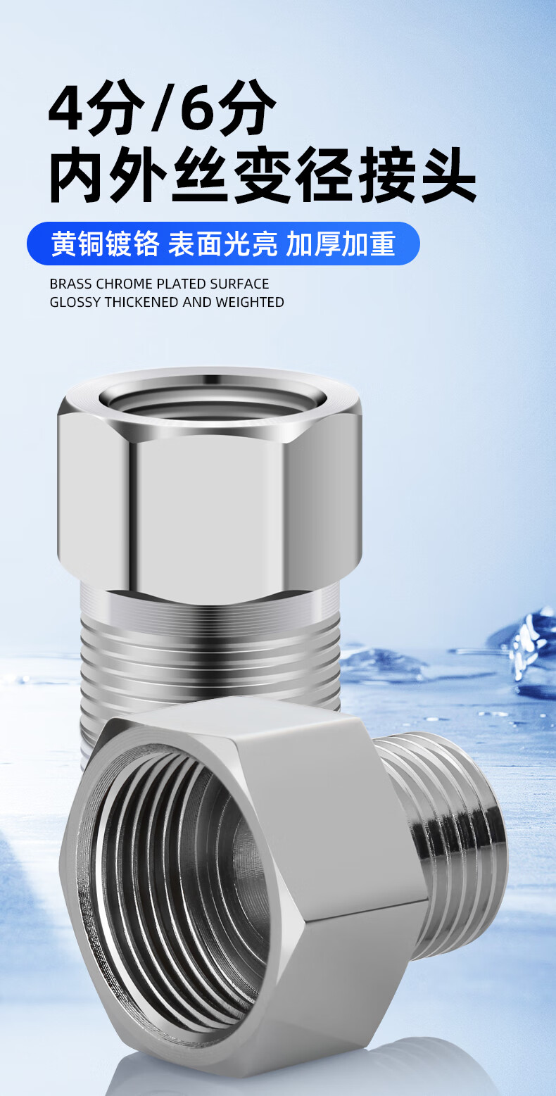 A beautiful thickened brass 4-point to 6-point conversion joint, water inlet pipe, variable diameter, large and small head, copper filler accessories A1 4-point external teeth to 6-point internal teeth
