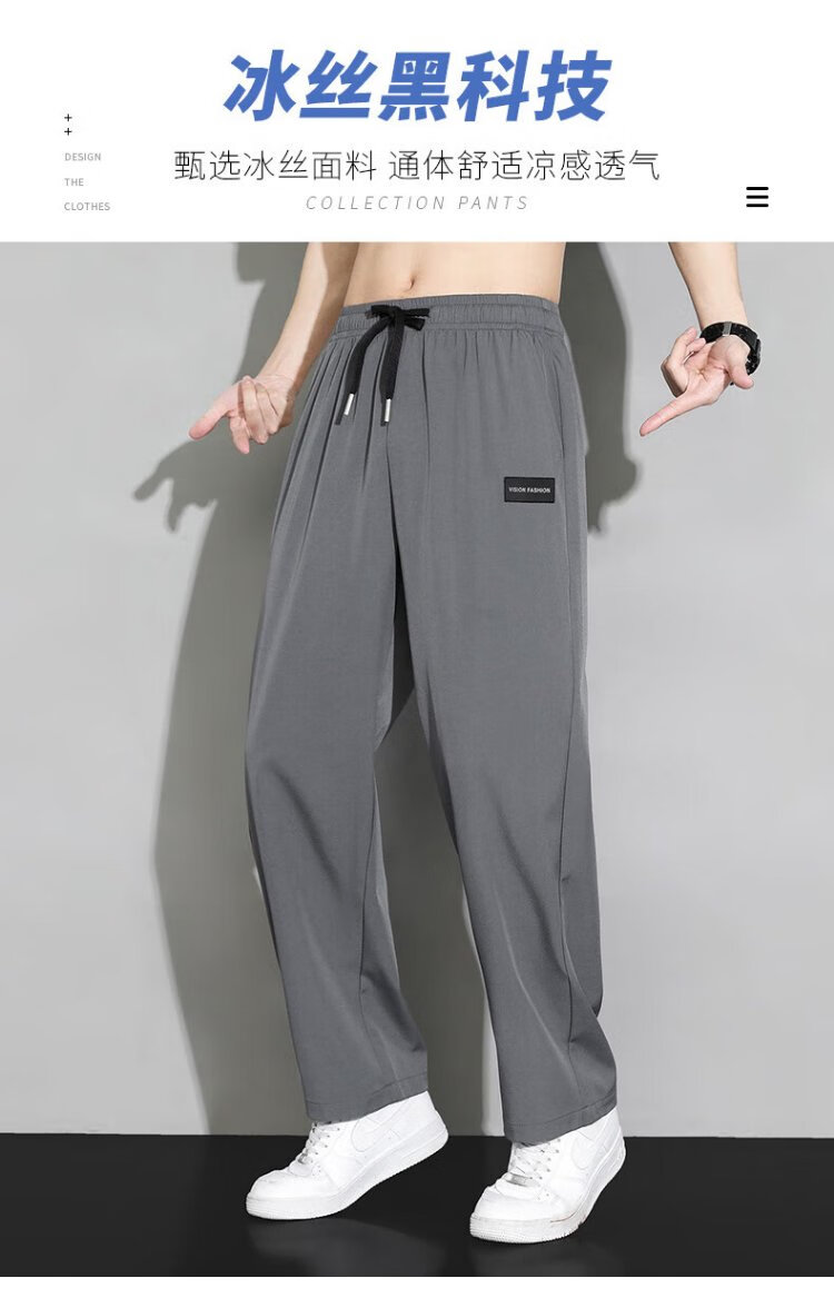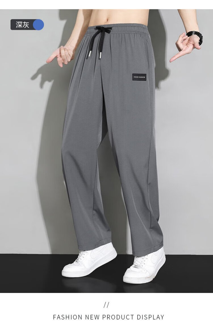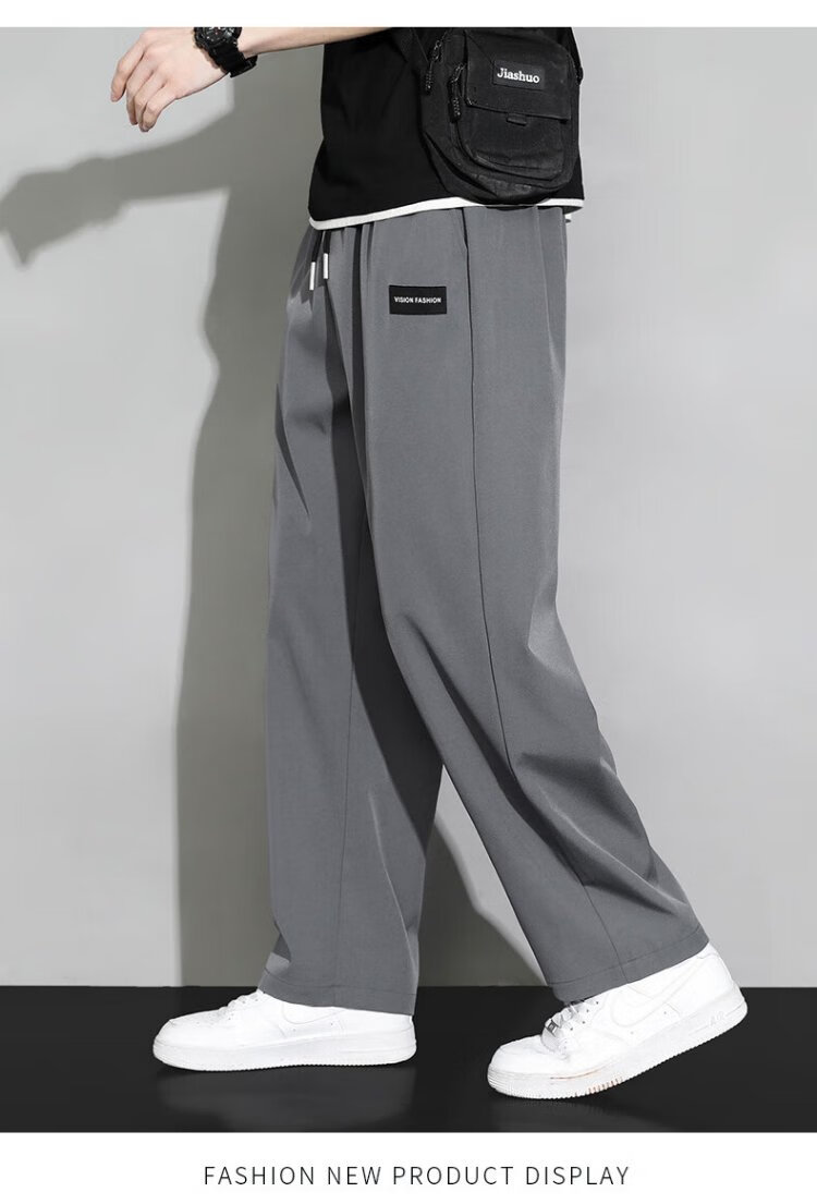 Dingfengbaoluo casual pants men's autumn loose straight drape comfortable wide-leg pants sportswear trousers DDF04 light gray L