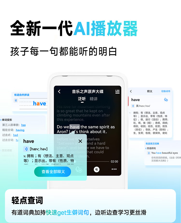 Youdao Hearing Bao E6 64G repeater walkman ear-grinding word memorization learning listening and reading artifact synchronized English pocket portable English Bao Hearing Baoxun listening machine learning machine