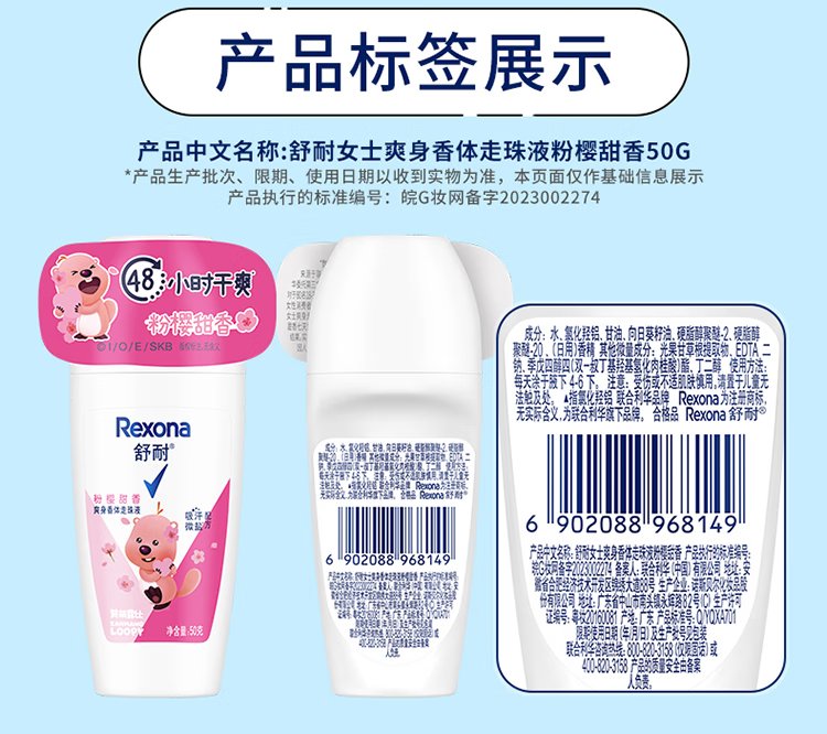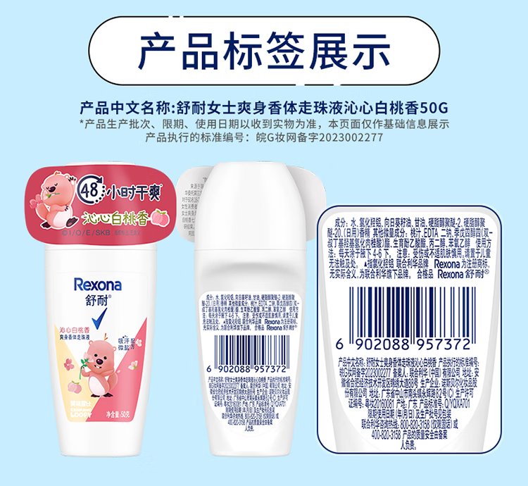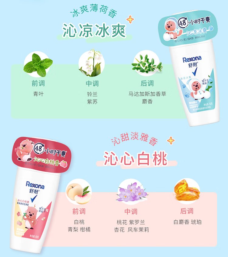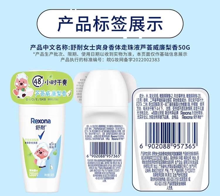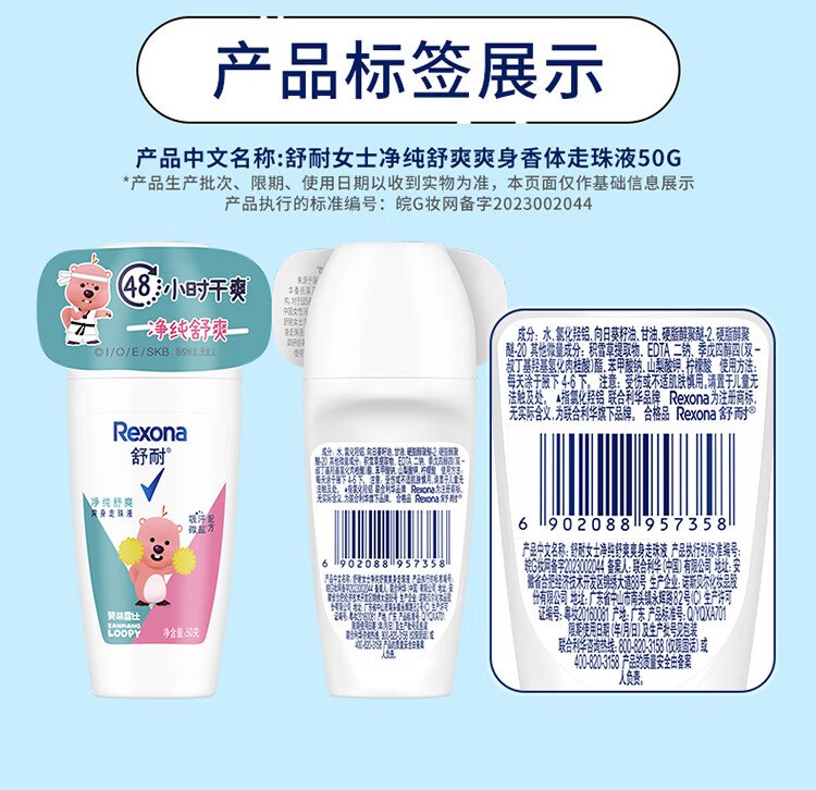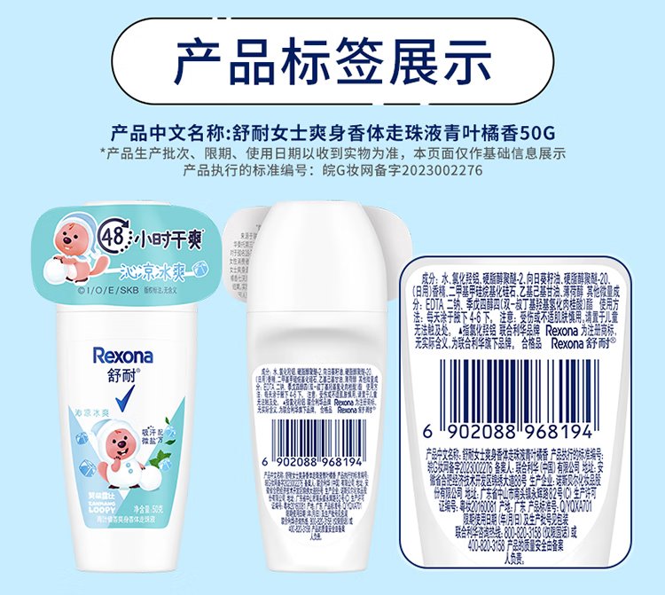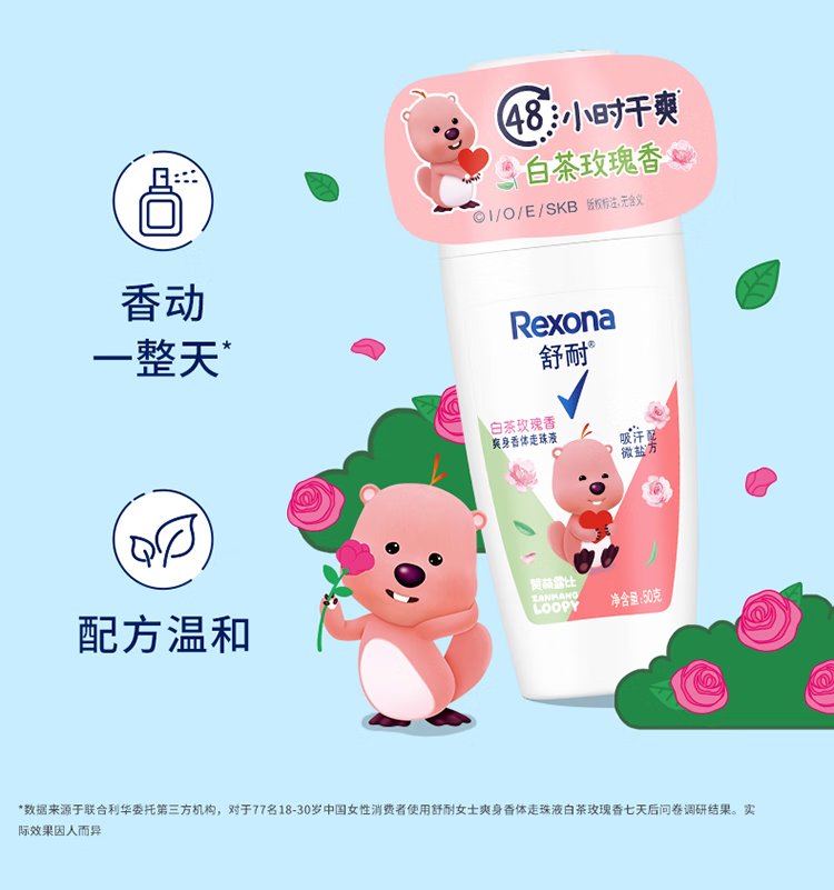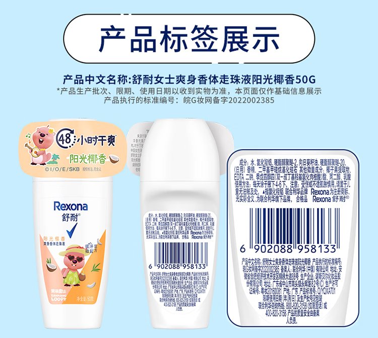 Shunai loppy co-branded women's refreshing body deodorant roll-on liquid sunshine coconut fragrance 50g (new and old packaging shipped randomly)