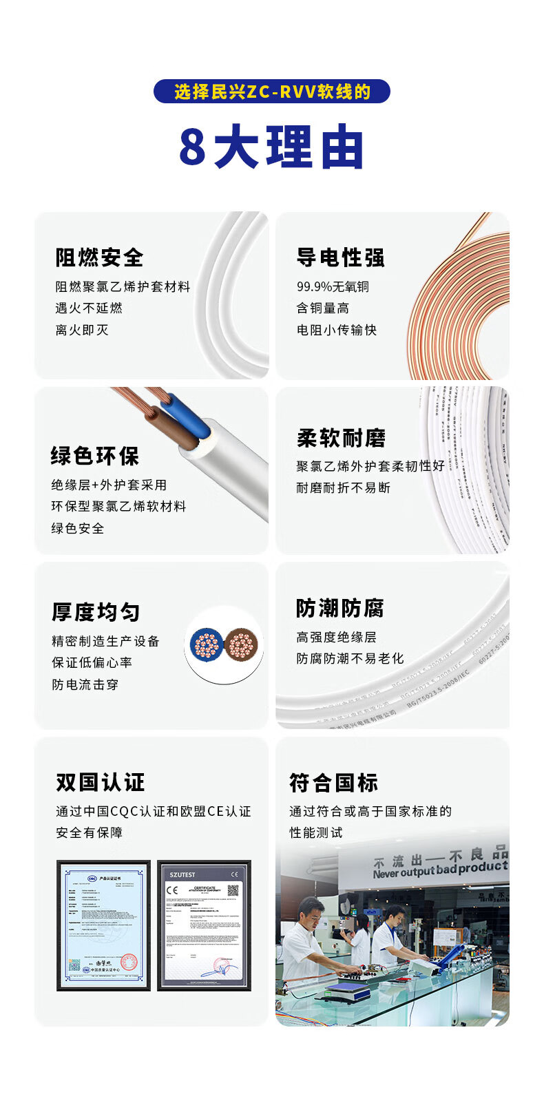 Minxing-Kabel 2,5-Quadrat-Kupferkerndraht RVV dreiadrig 3*2,5 nationaler Standard-Kupferdraht ummantelter Draht weicher Draht ZC-RVV-3*2,5-100 Meter
