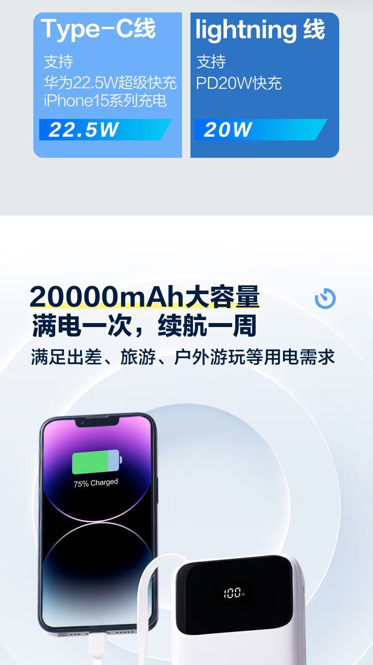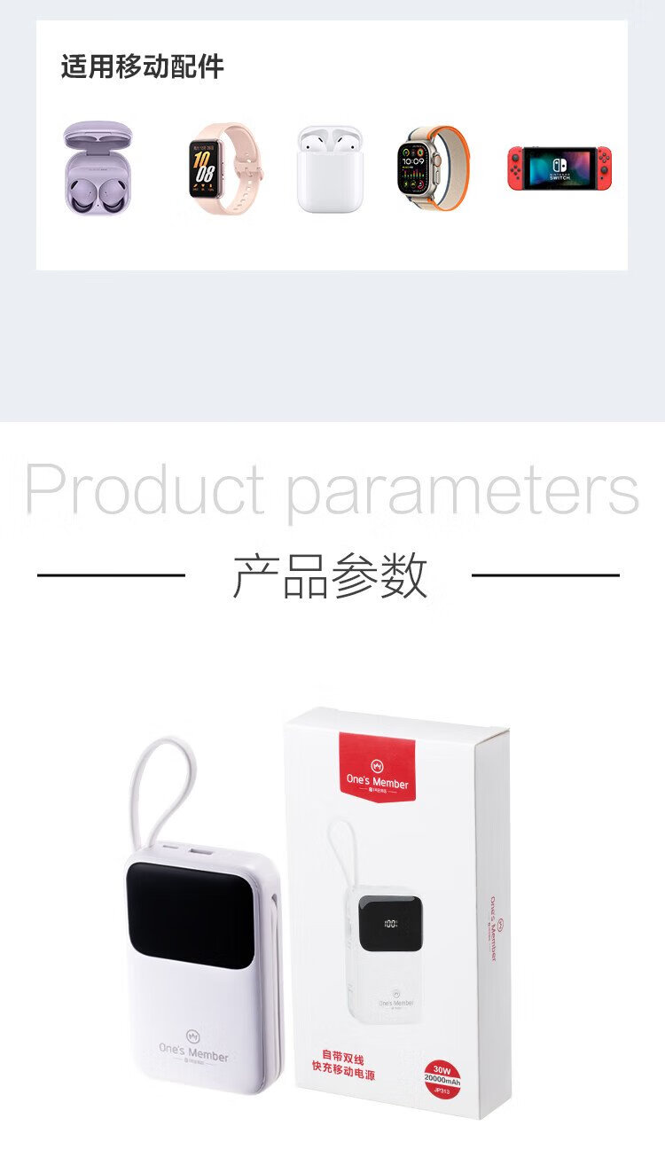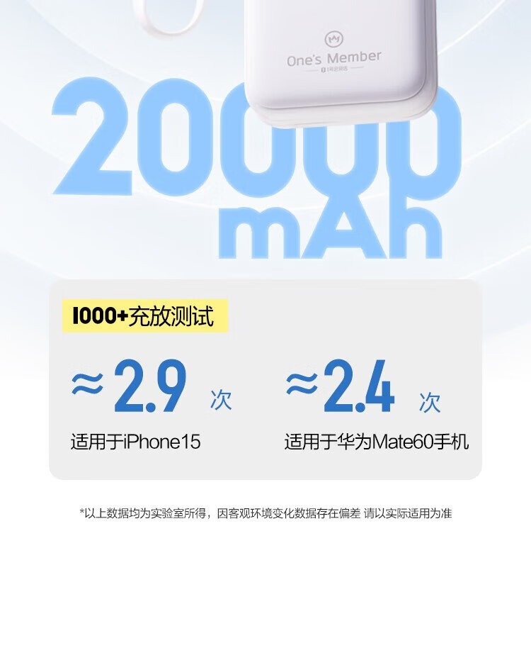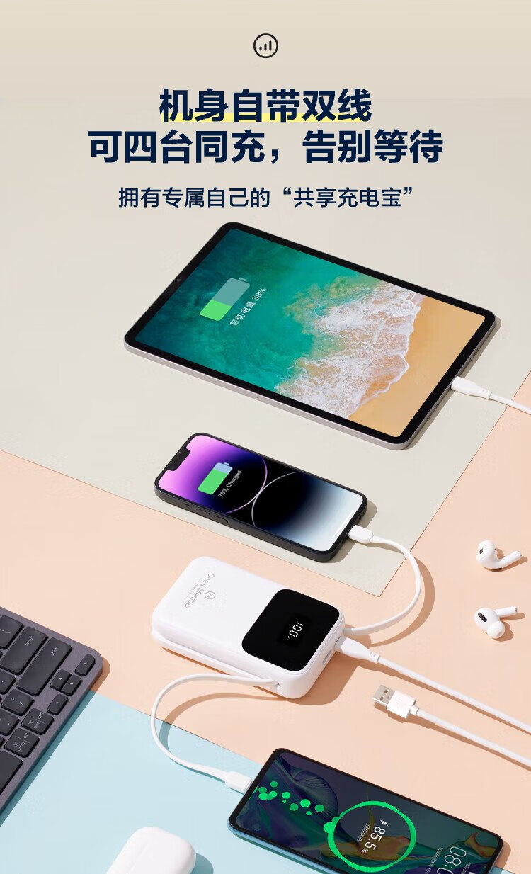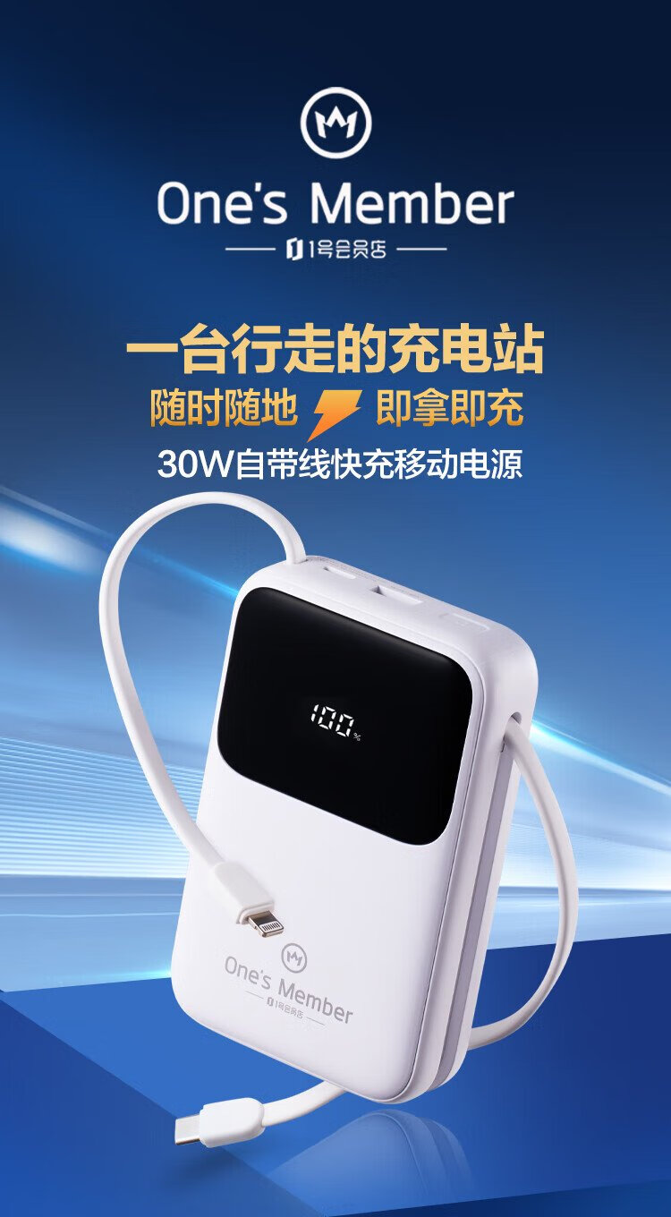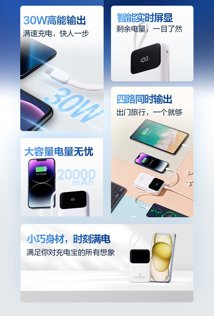 Member Store No. 1, 3C certified, can be used on airplanes, 20000mAh power bank, comes with dual wires, two-way fast charging, compact and portable, PD30W, available for Apple/Android