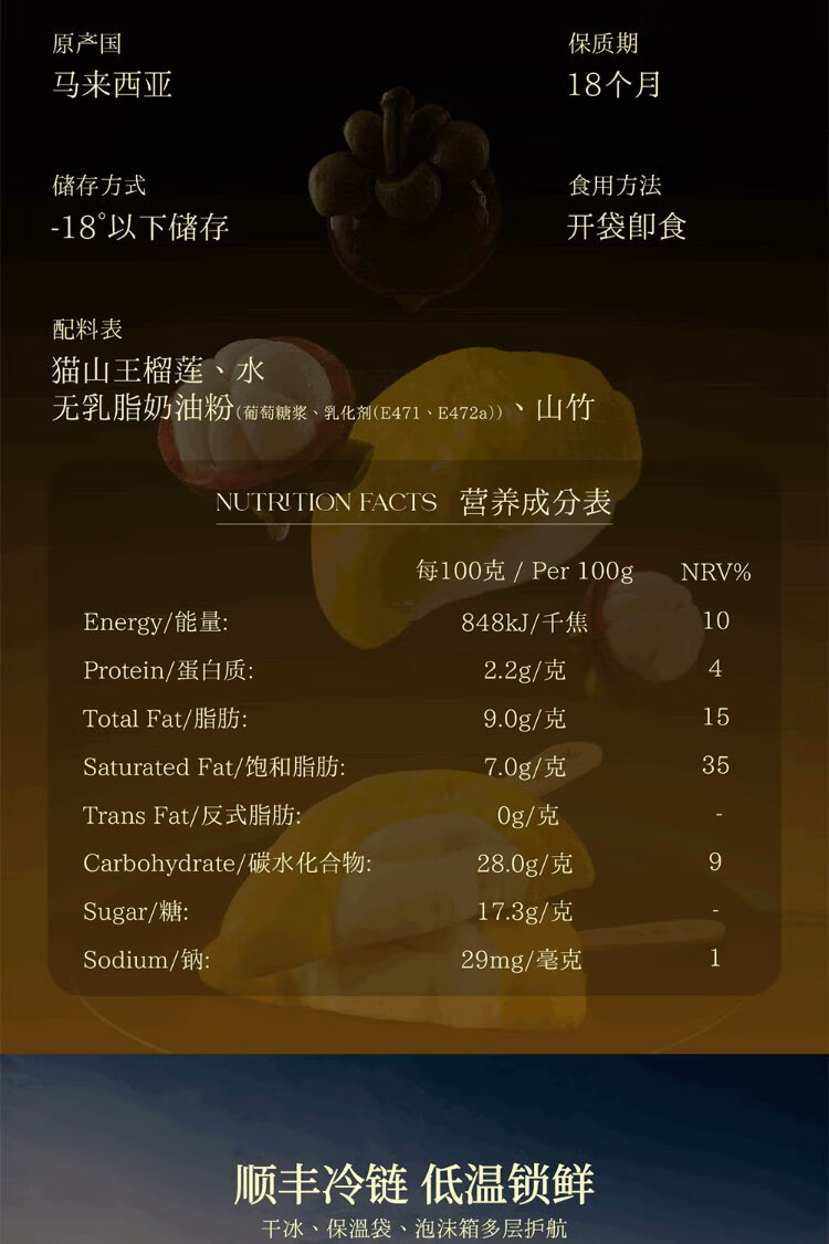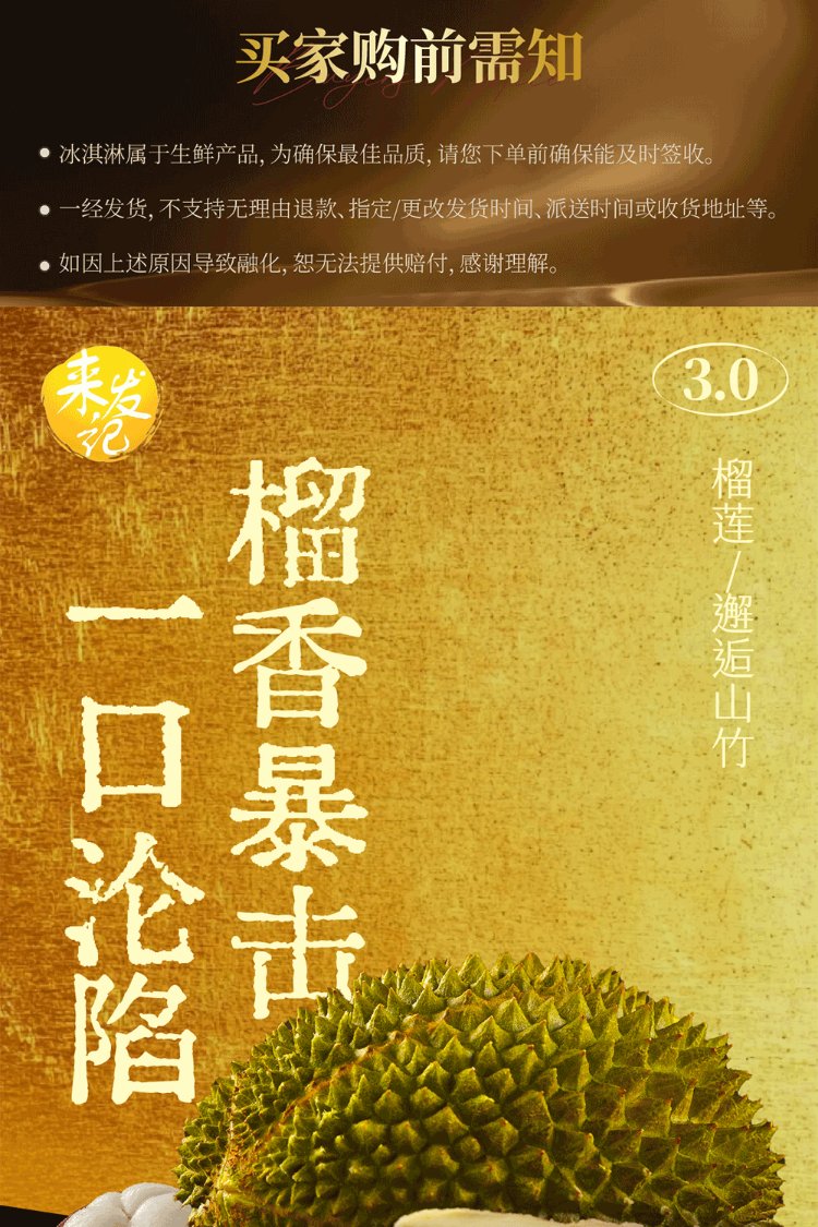 Laifaji Musang King Durian Ice Cream 70g Durian meat content 70%