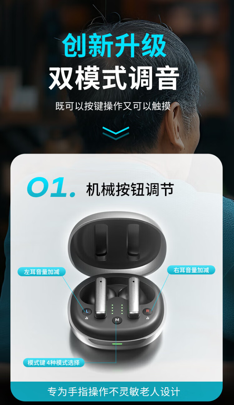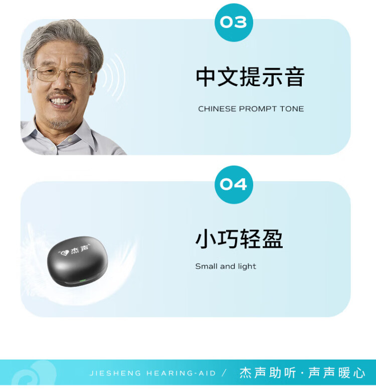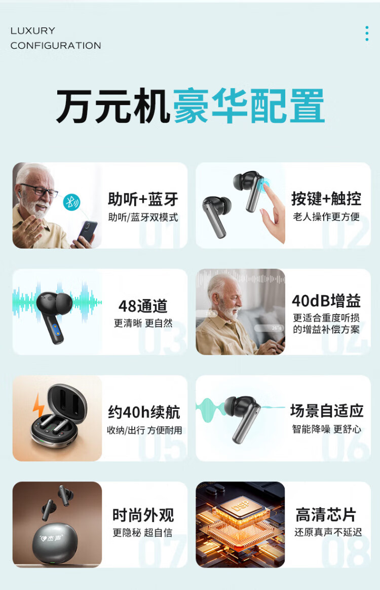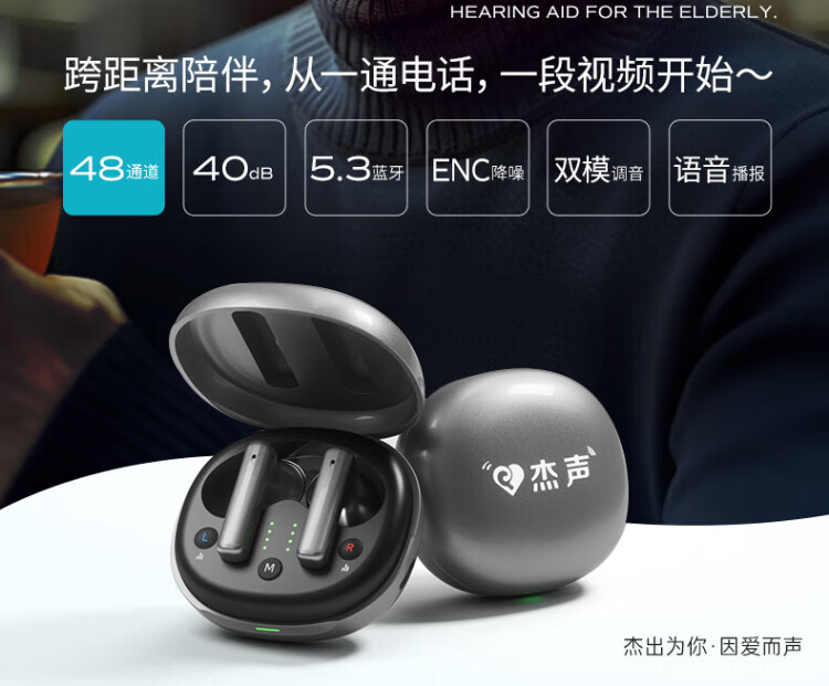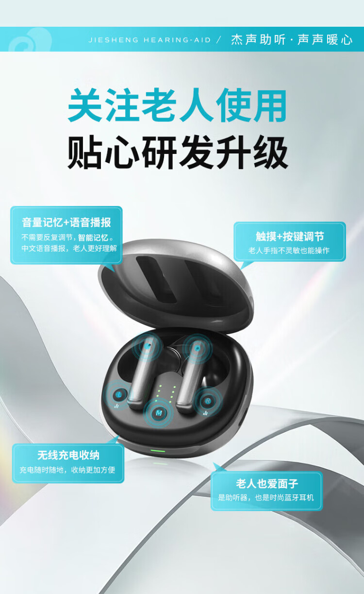 Jiesheng in-ear digital hearing aid for the elderly with deafness, behind-the-ear binaural charging, suitable for light, medium and severe HAT608A