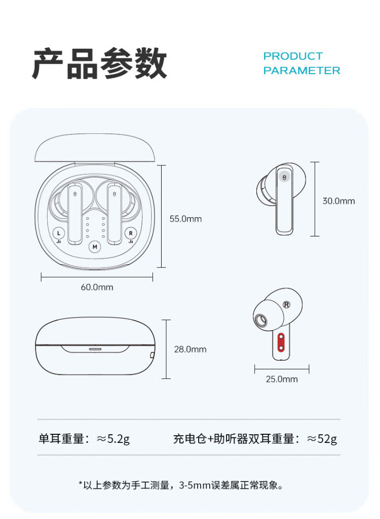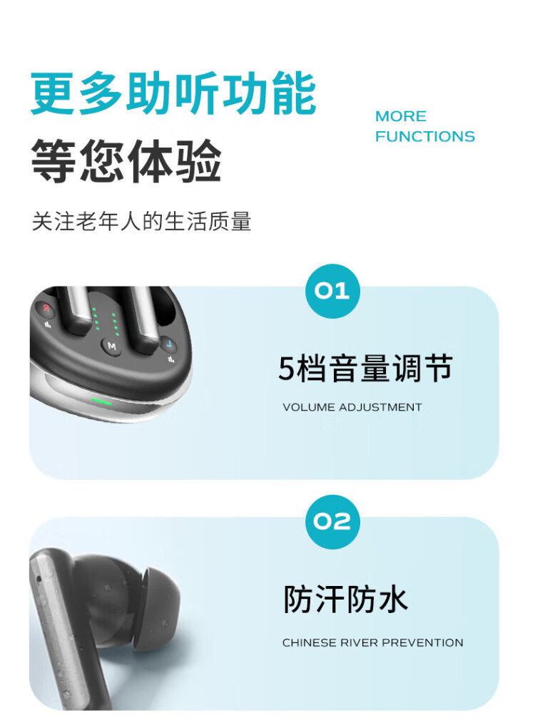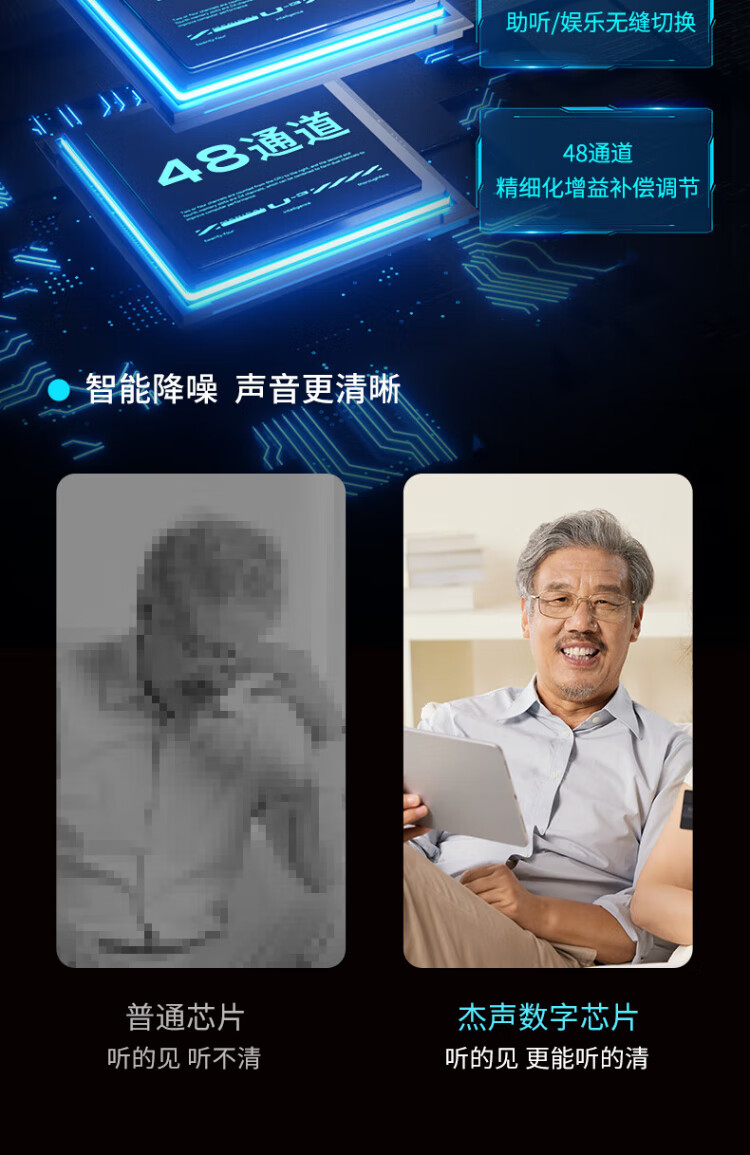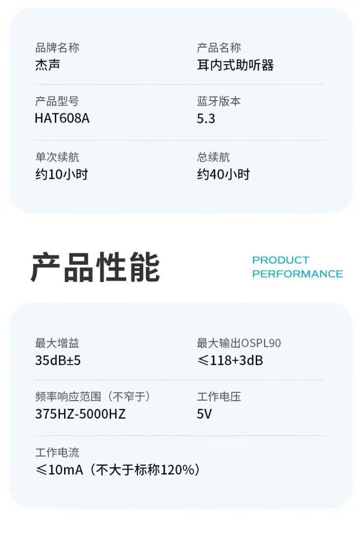 Jiesheng in-ear digital hearing aid for the elderly with deafness, behind-the-ear binaural charging, suitable for light, medium and severe HAT608A