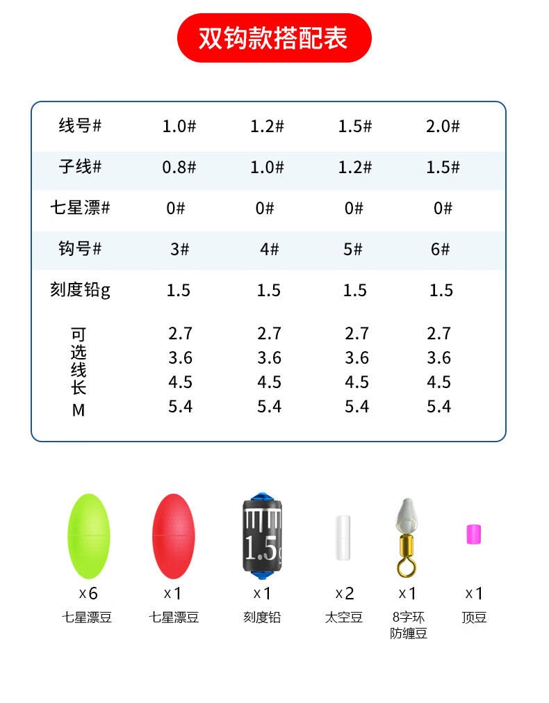 Xiaofengxian seven-star floating line group fishing grass hole wild fishing line fishhook set finished line group 3.6m1.5 Golden Haixi double hook
