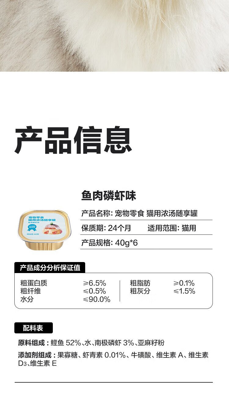 NetEase selecciona cuidadosamente bocadillos enlatados para gatos, sopa para gatos enlatados, pescado enlatado y krill de 40 g * 6 latas