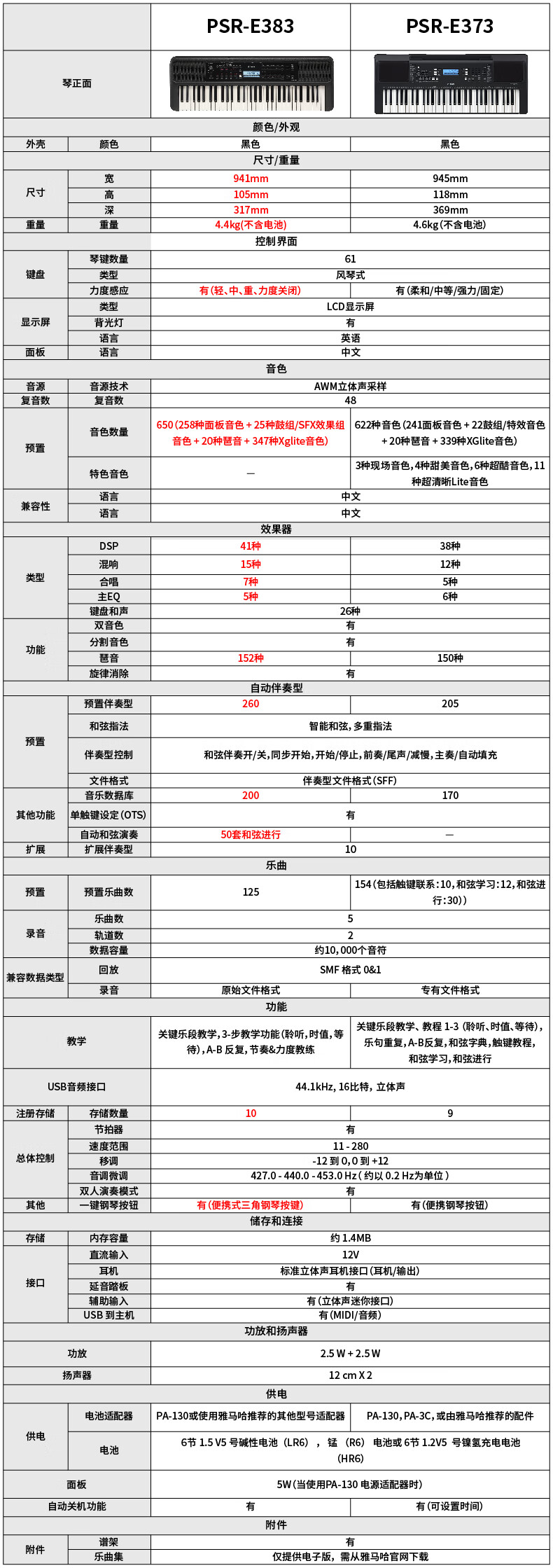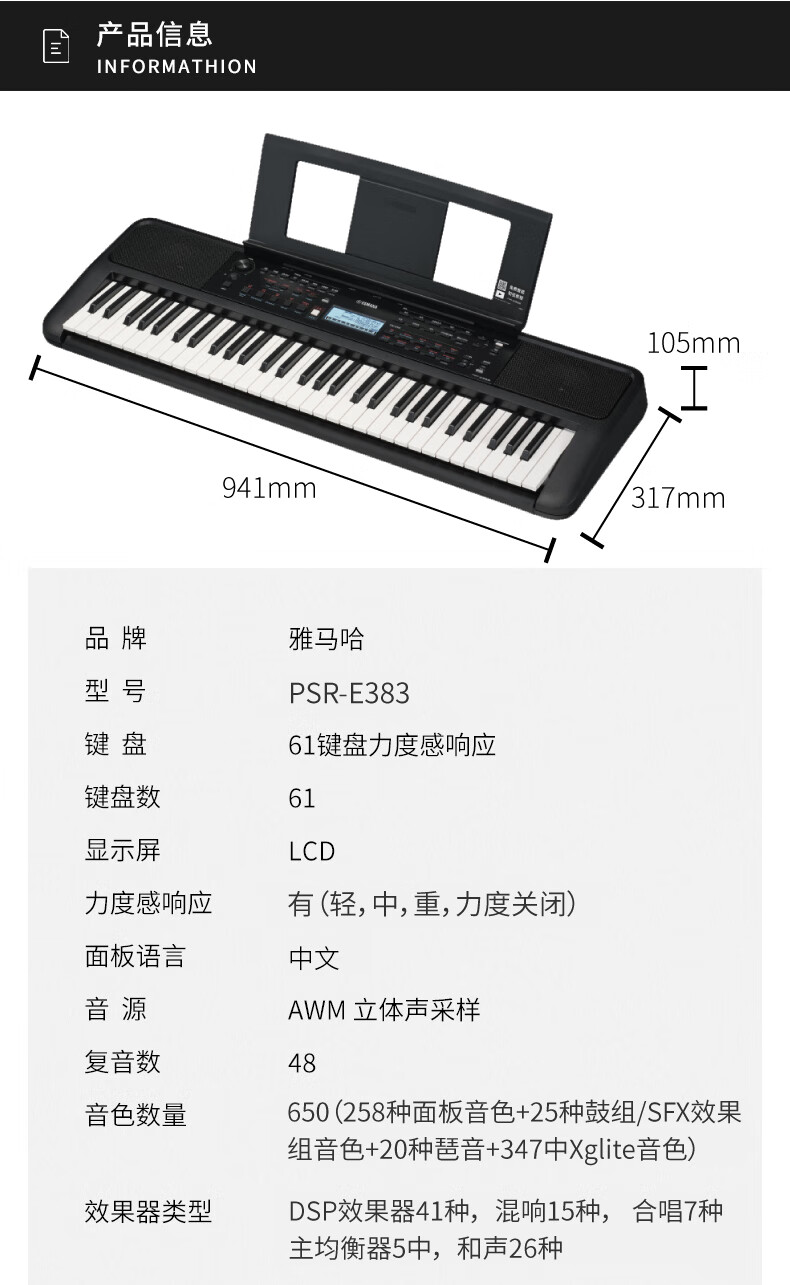 Yamaha (YAMAHA) PSR-E383 children and adults entertainment learning professional performance teaching dynamic key electronic keyboard 61 keys