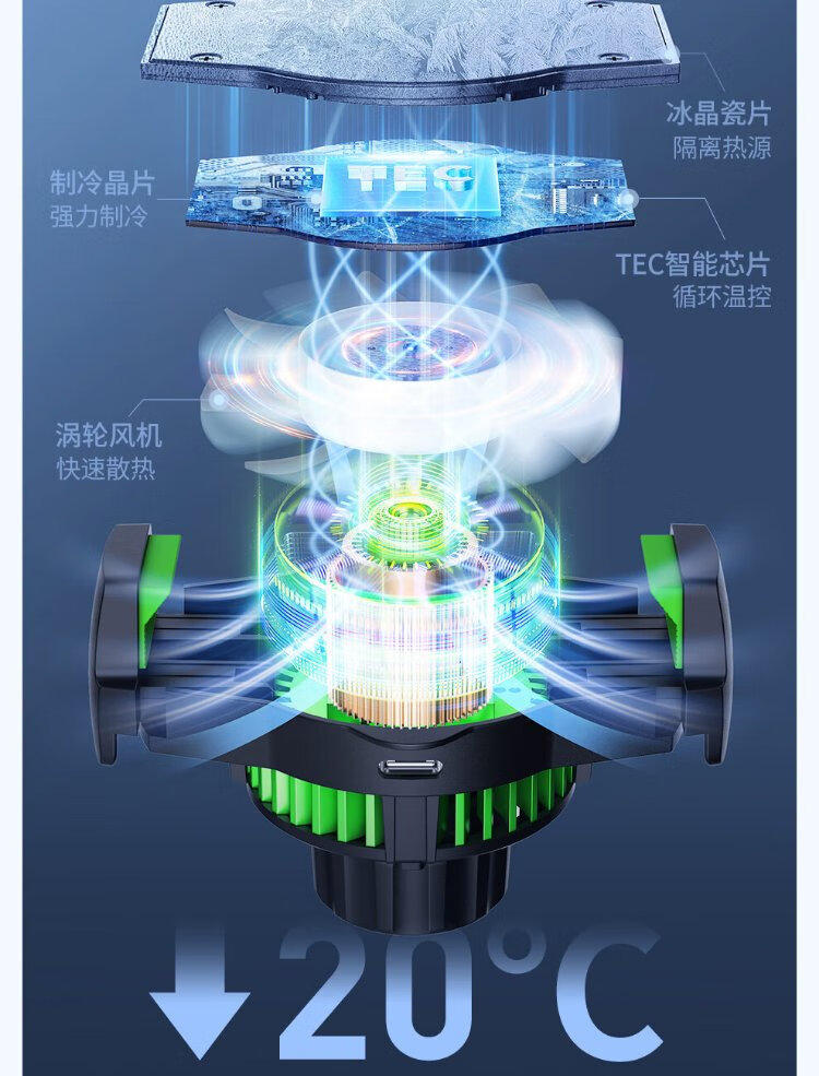 Xiaotian (JOPREE) mobile phone live broadcast radiator semiconductor fast freezing water cooling fan cooling back clip Apple Huawei Xiaomi desktop mobile phone holder universal accessories