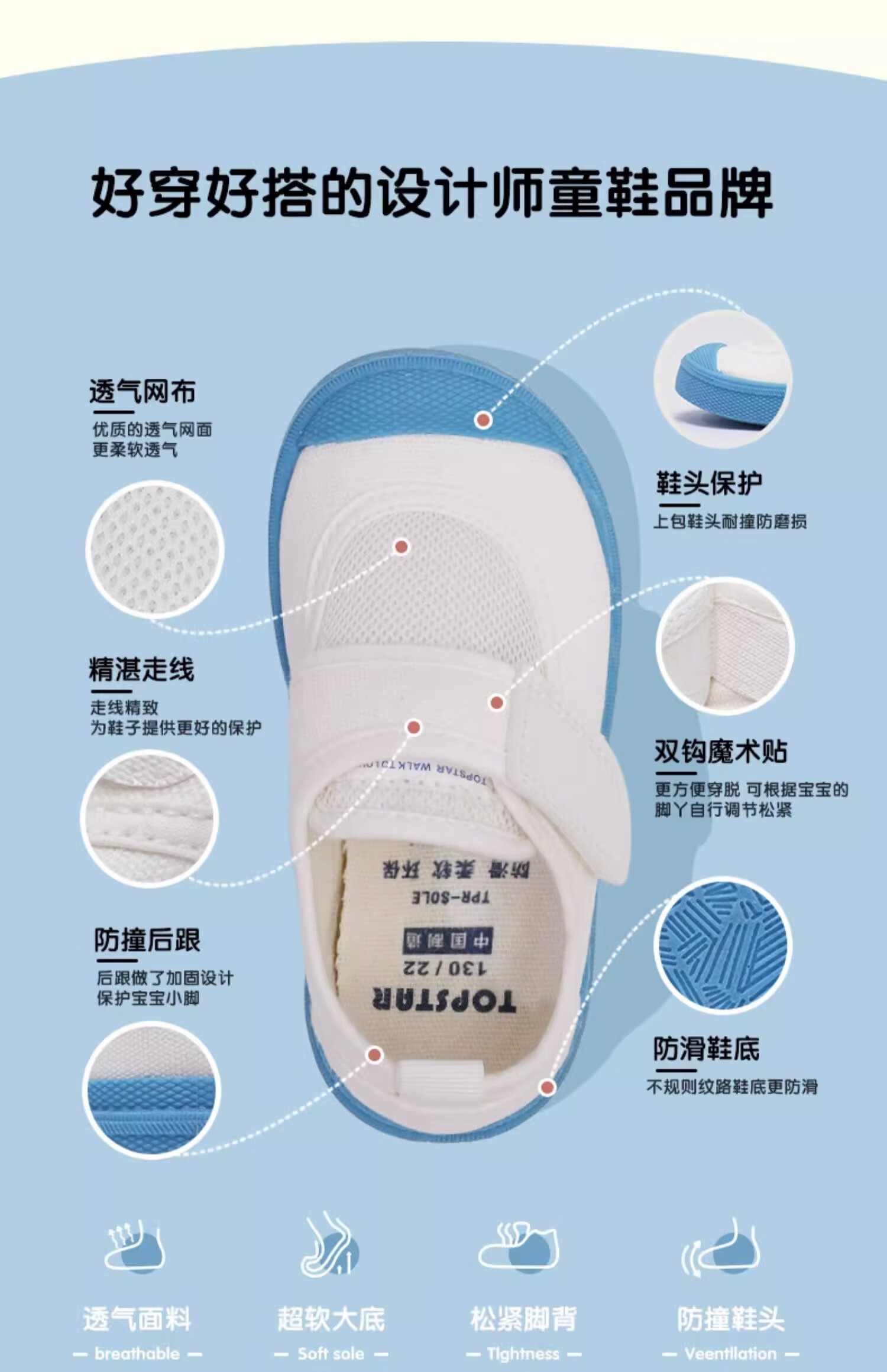 TOPSTAR kindergarten shoes, boys' shoes, girls' soft-soled canvas shoes, small white shoes, children's shoes, light pink 24