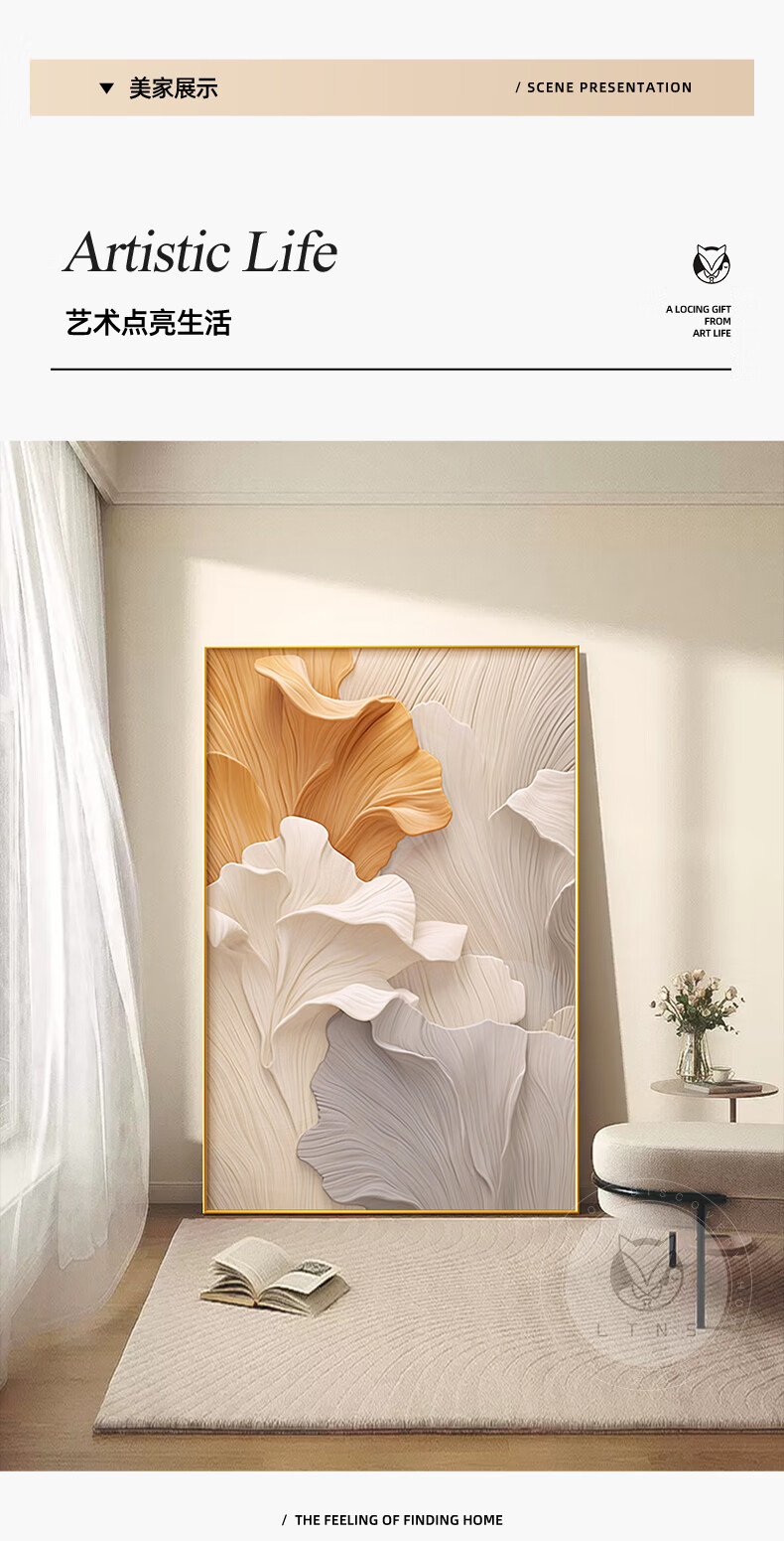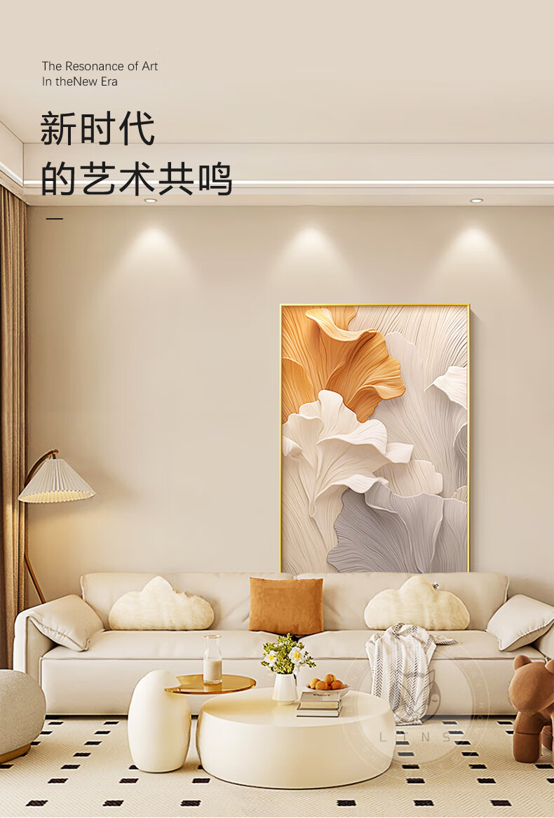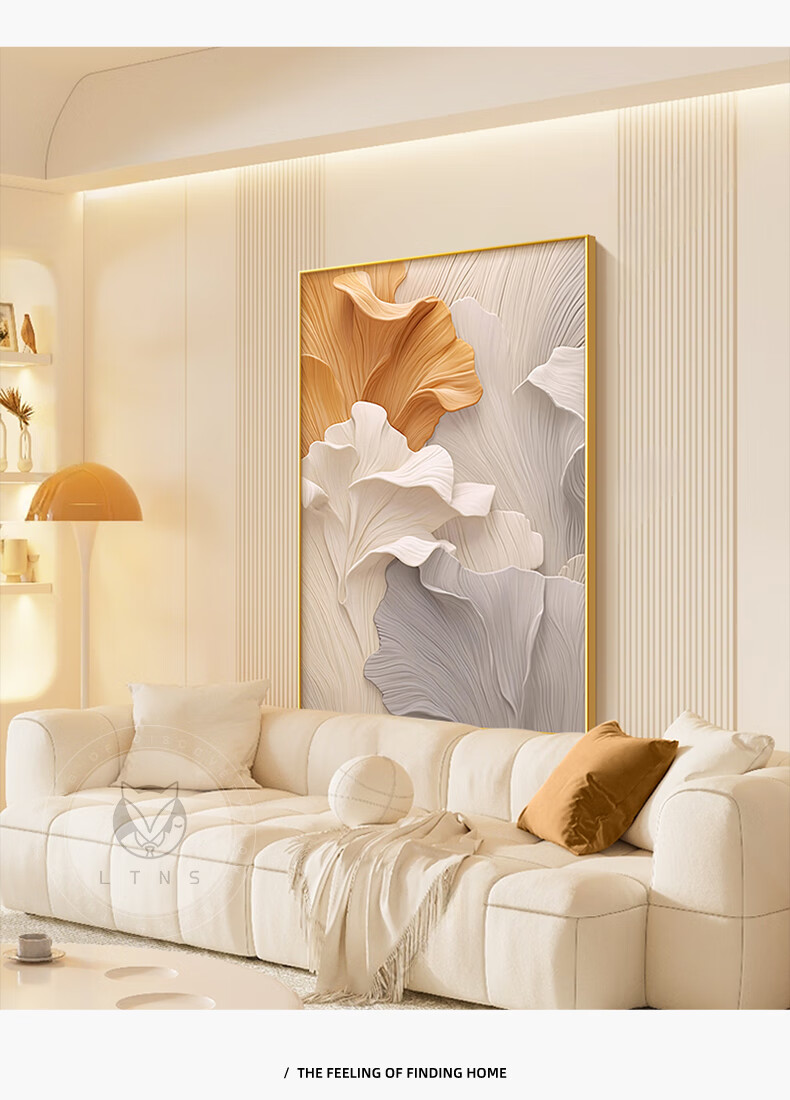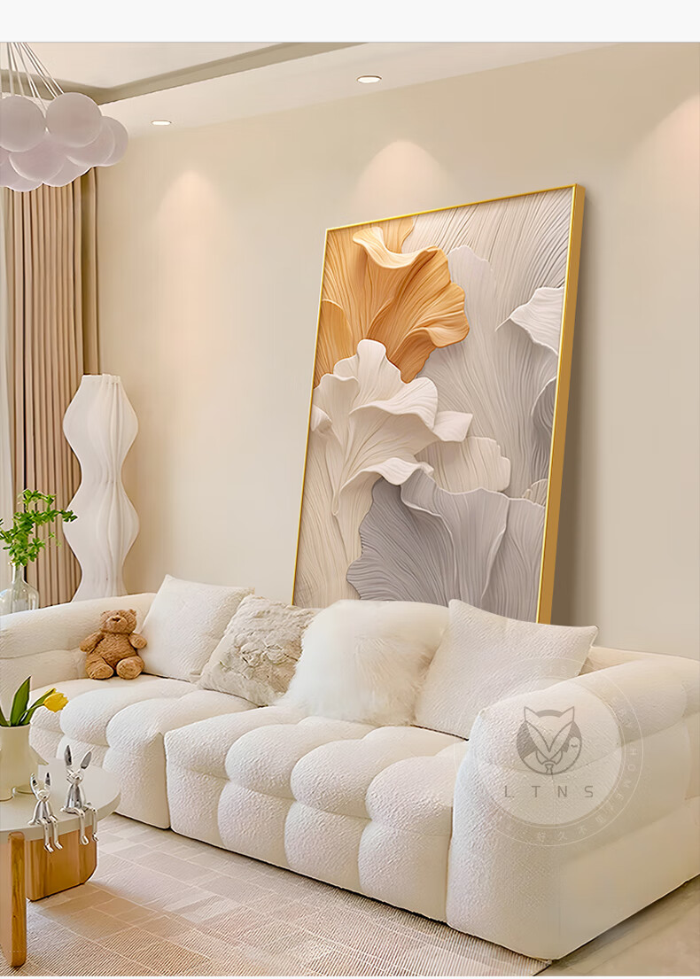 Long time no see cream style living room decoration painting abstract art ginkgo floor painting sofa background wall mural entrance hanging painting
