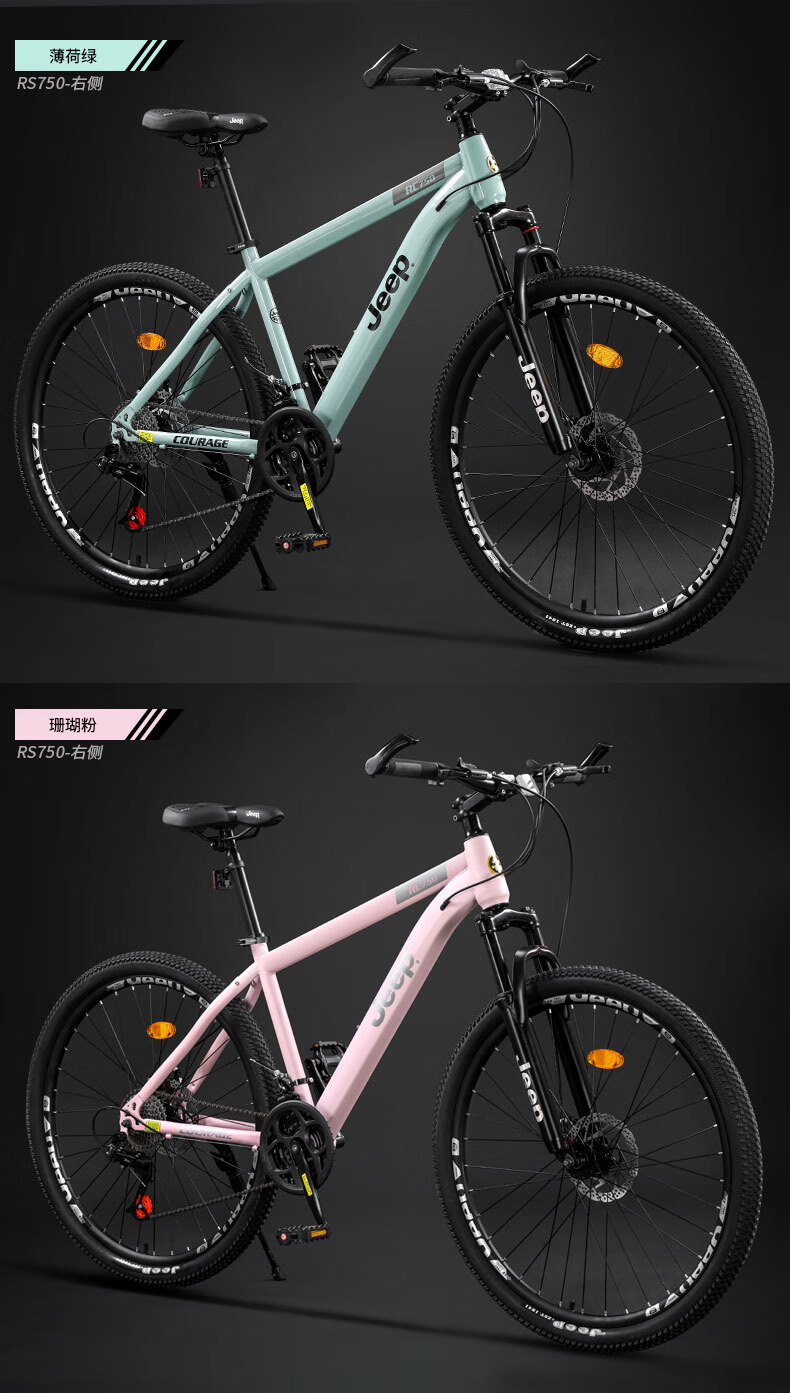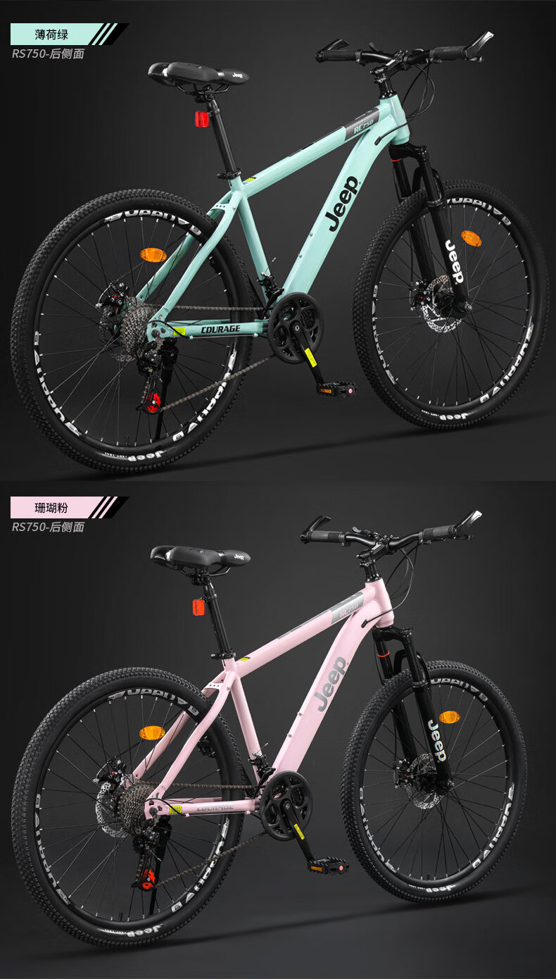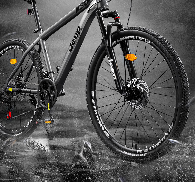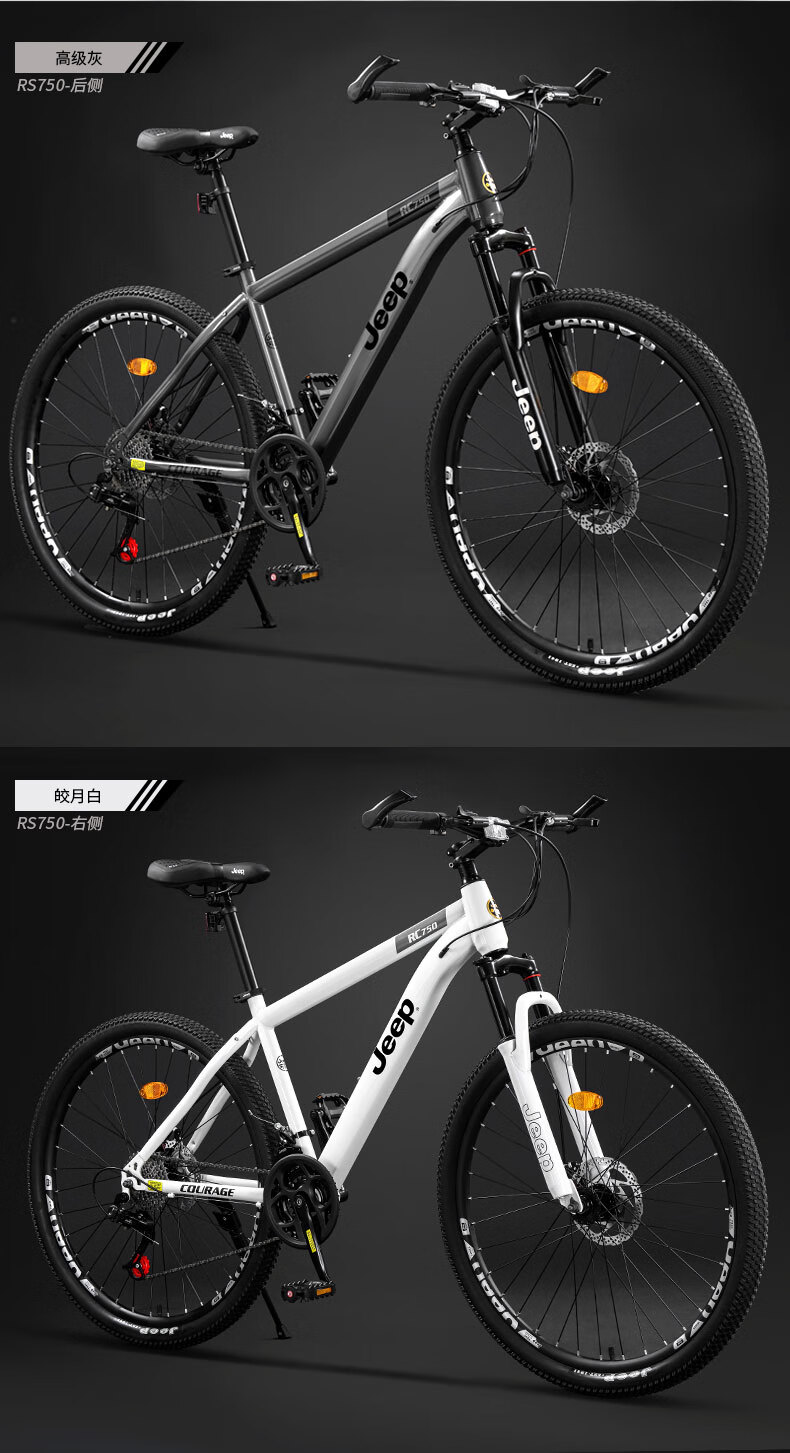 Jeep mountain bike male and female student shock-absorbing scooter RC750 carbon steel modern gray-27.5 inches 27-speed