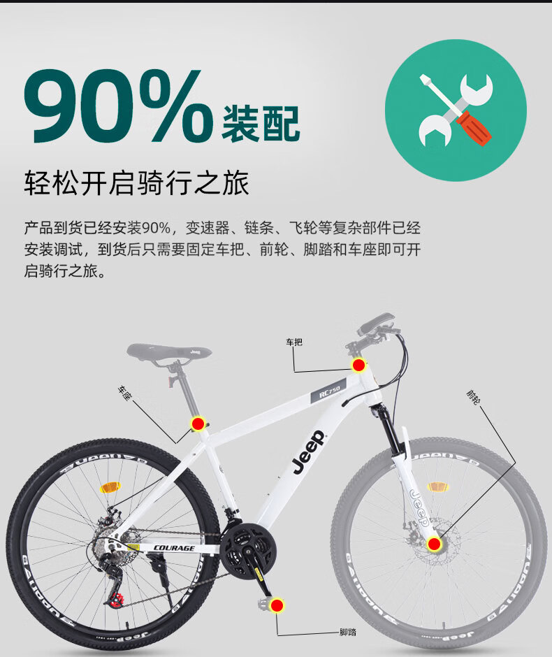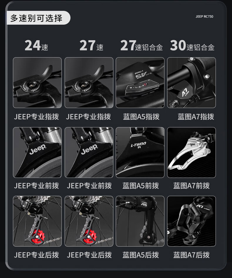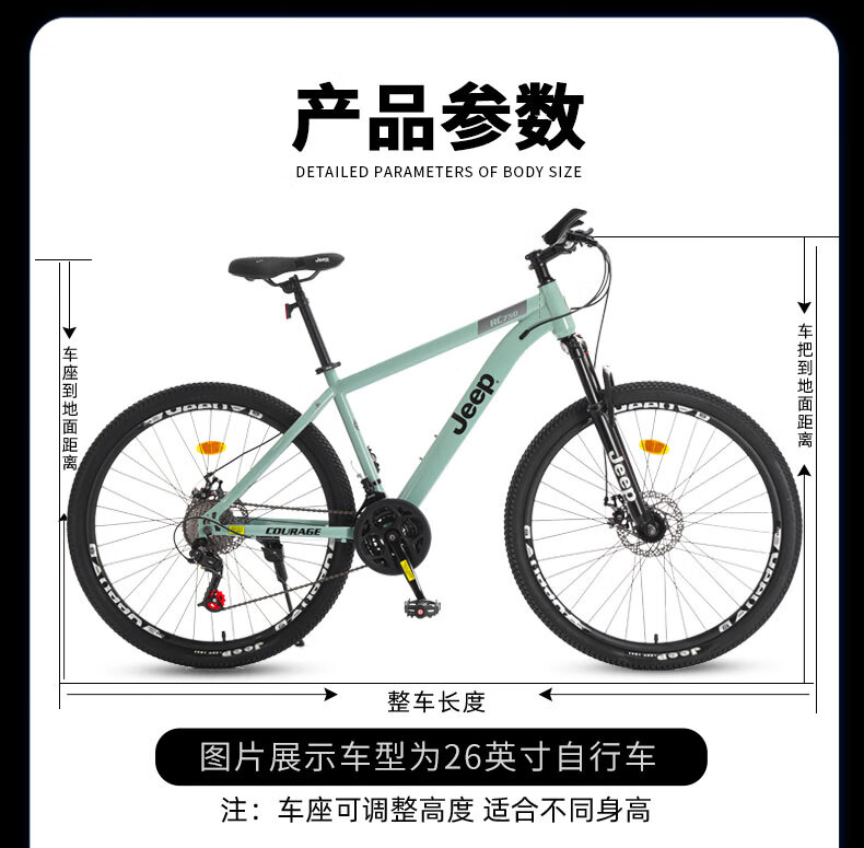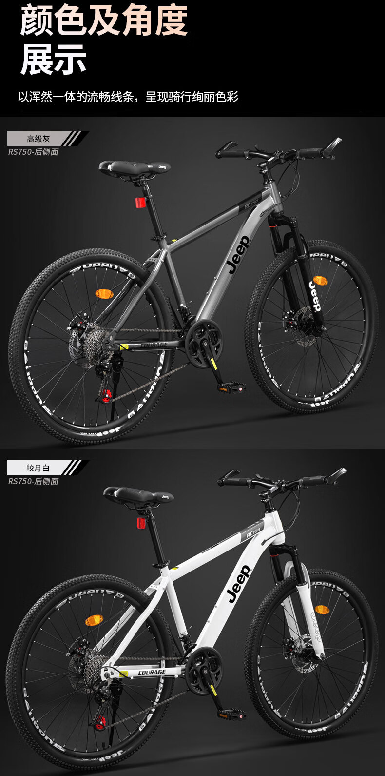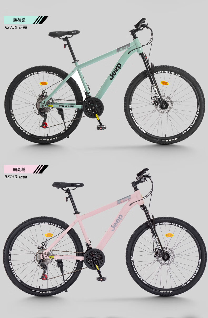 Jeep mountain bike male and female student shock-absorbing scooter RC750 carbon steel modern gray-27.5 inches 27-speed