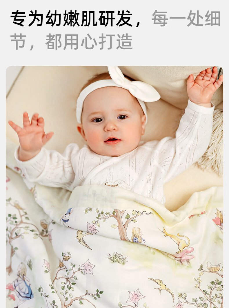 Manxi (EMXEE) baby blanket Tianzhu silk leno baby quilt baby four seasons air conditioning quilt big goose tea party 110*140cm
