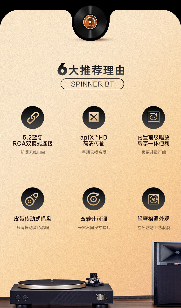 JBL Music Family 500 Bluetooth Speaker + Music Waltz SPINNER BT Professional Gramophone Vinyl Record Player Set
