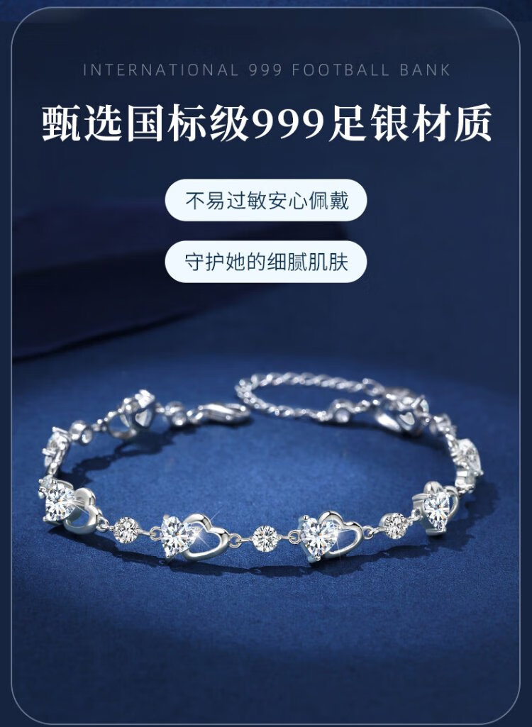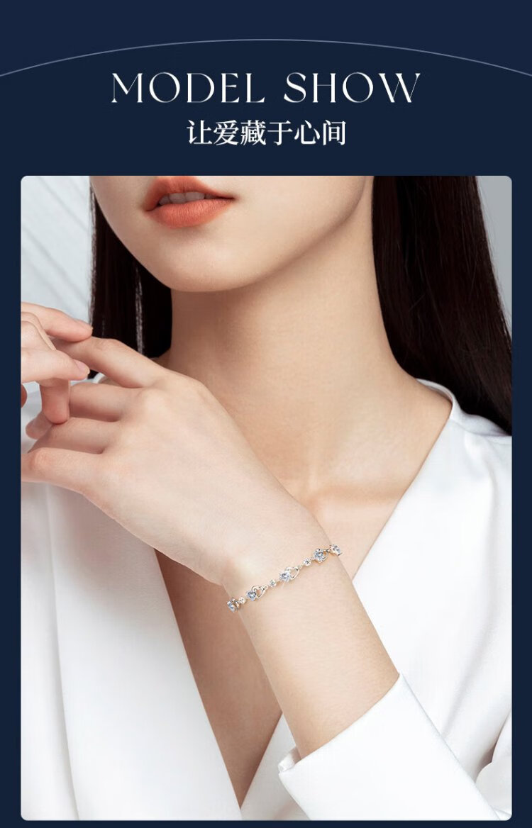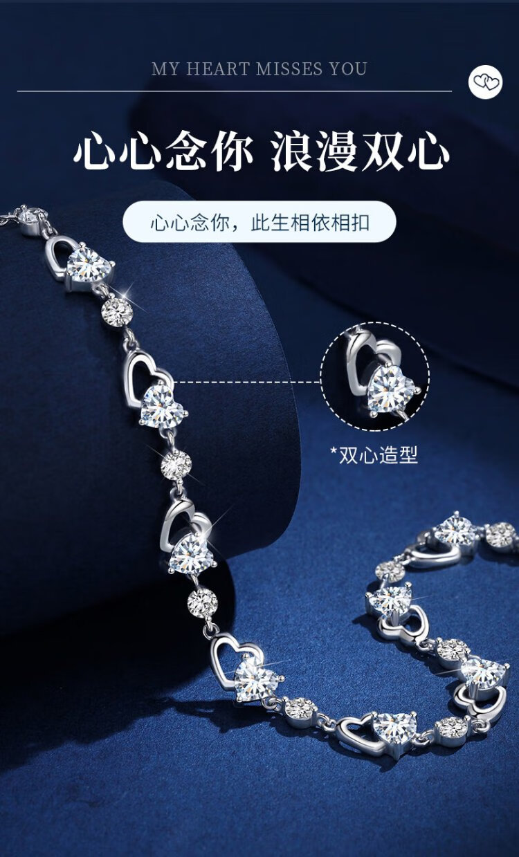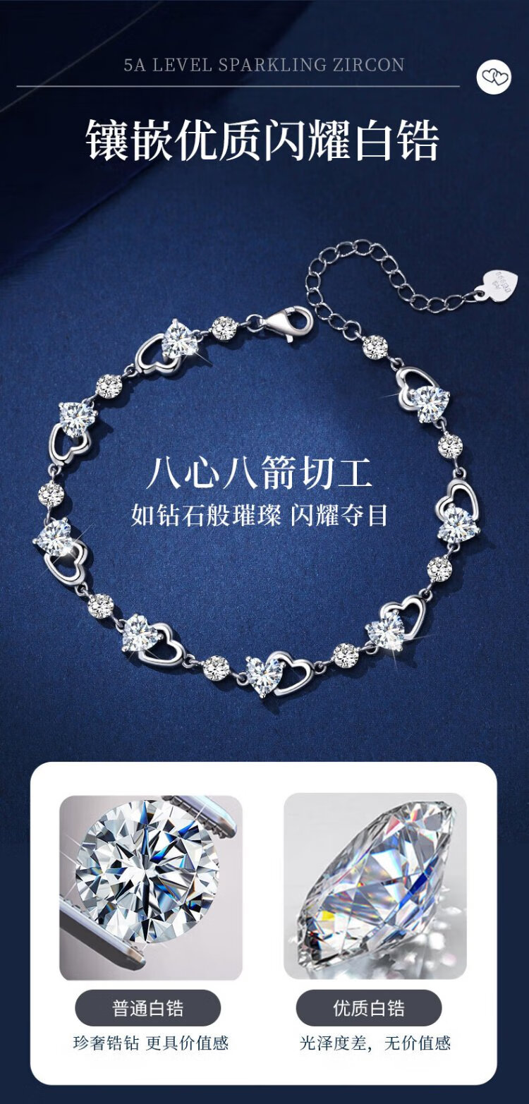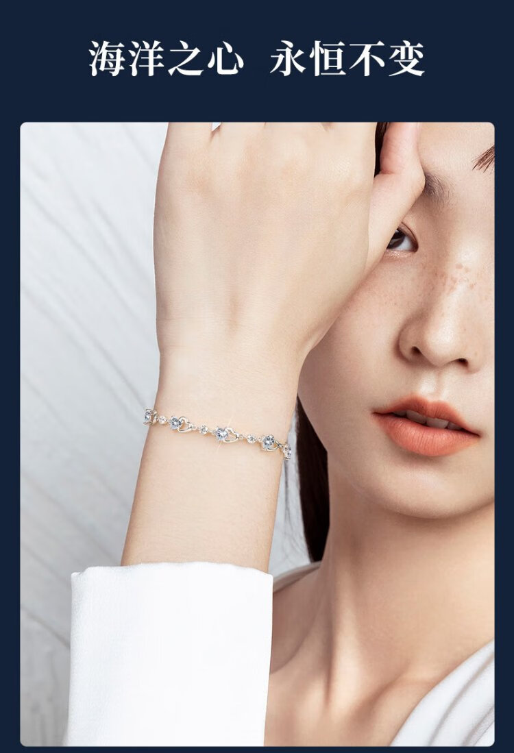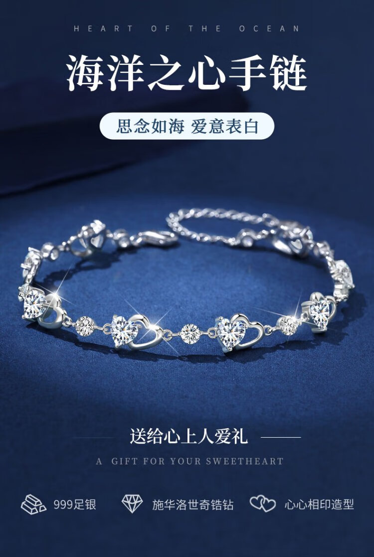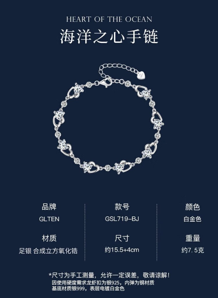 GLTEN Swarovski Zirconium Ocean Heart Silver Bracelet Birthday Gift Women's Anniversary Light Luxury Gift to Girlfriend and Wife