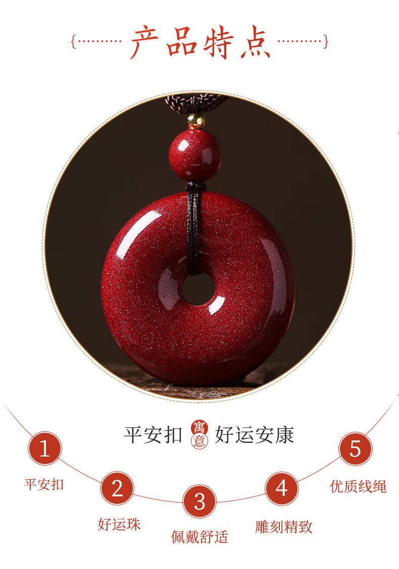 Gold stone spirit cinnabar pendant pendant amulet safety buckle men and women transfer bead necklace birth year children men and women birthday gifts