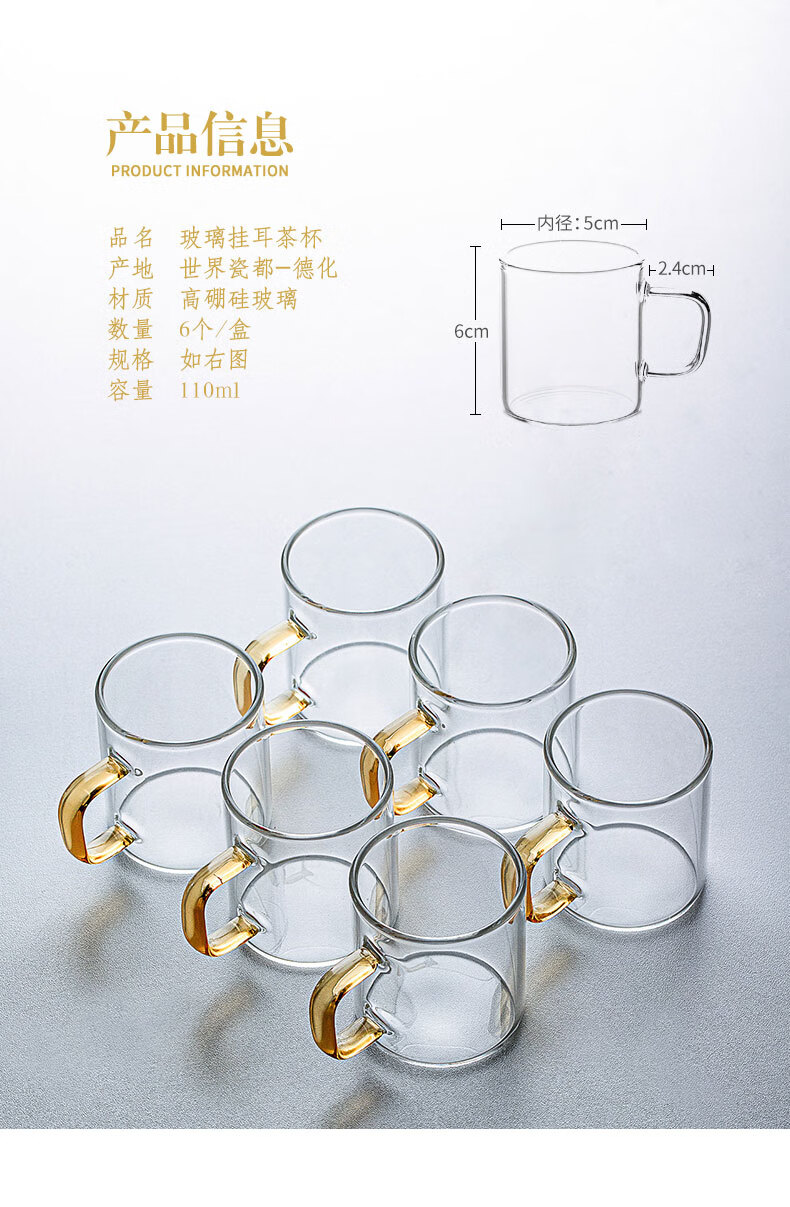 Su's ceramic glass cup tea cup juice cup small fresh water cup office home hanging ear tea cup 6 pack