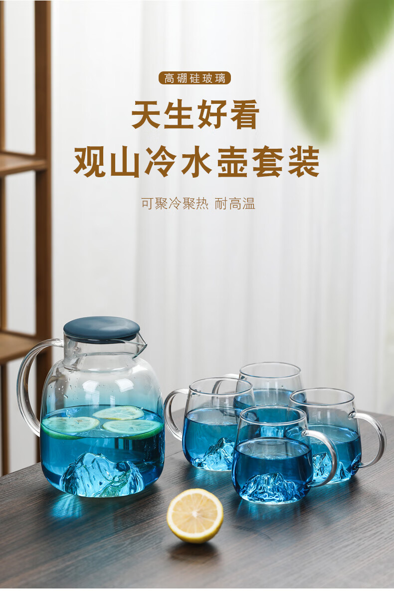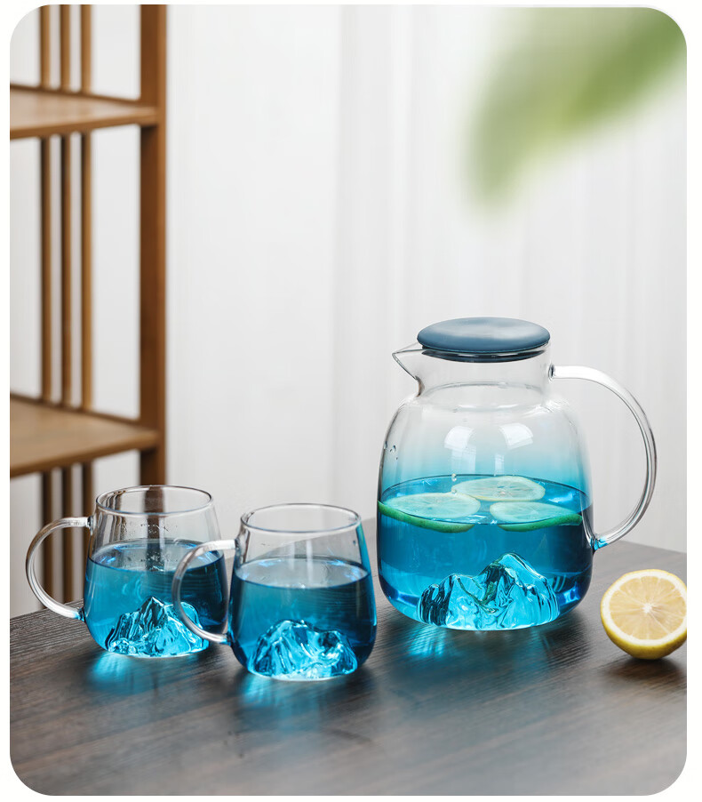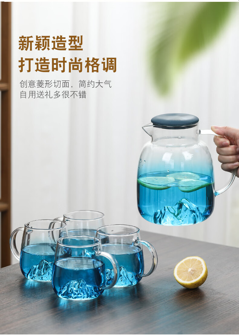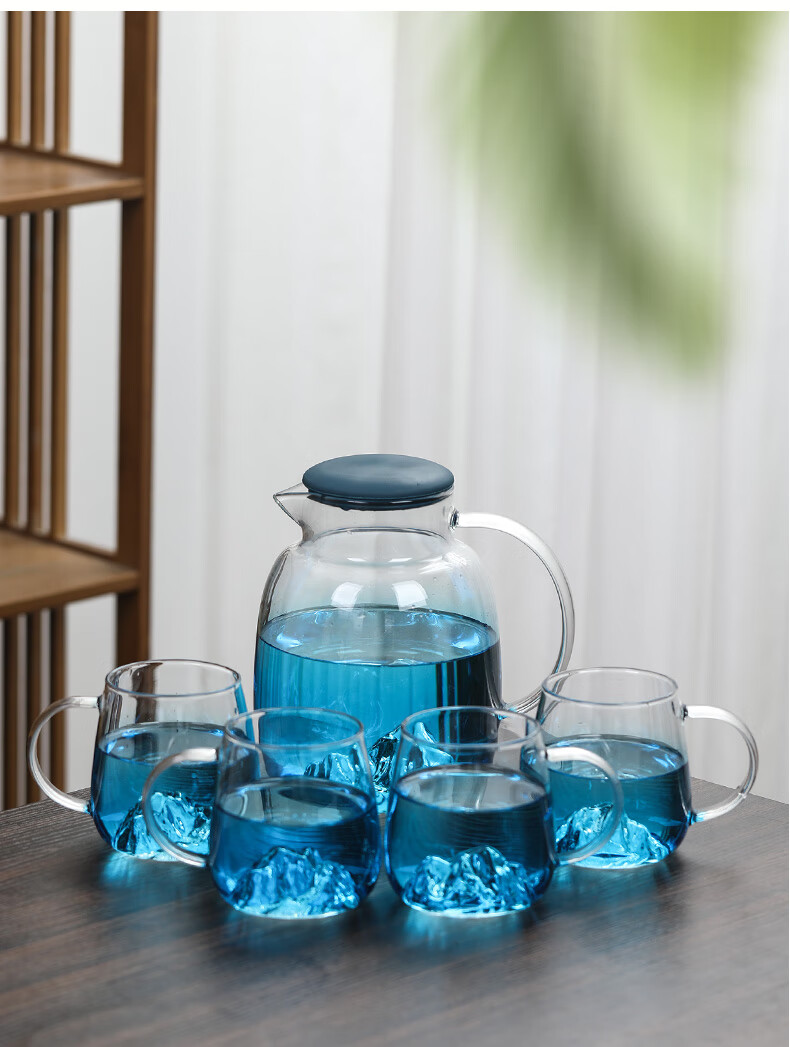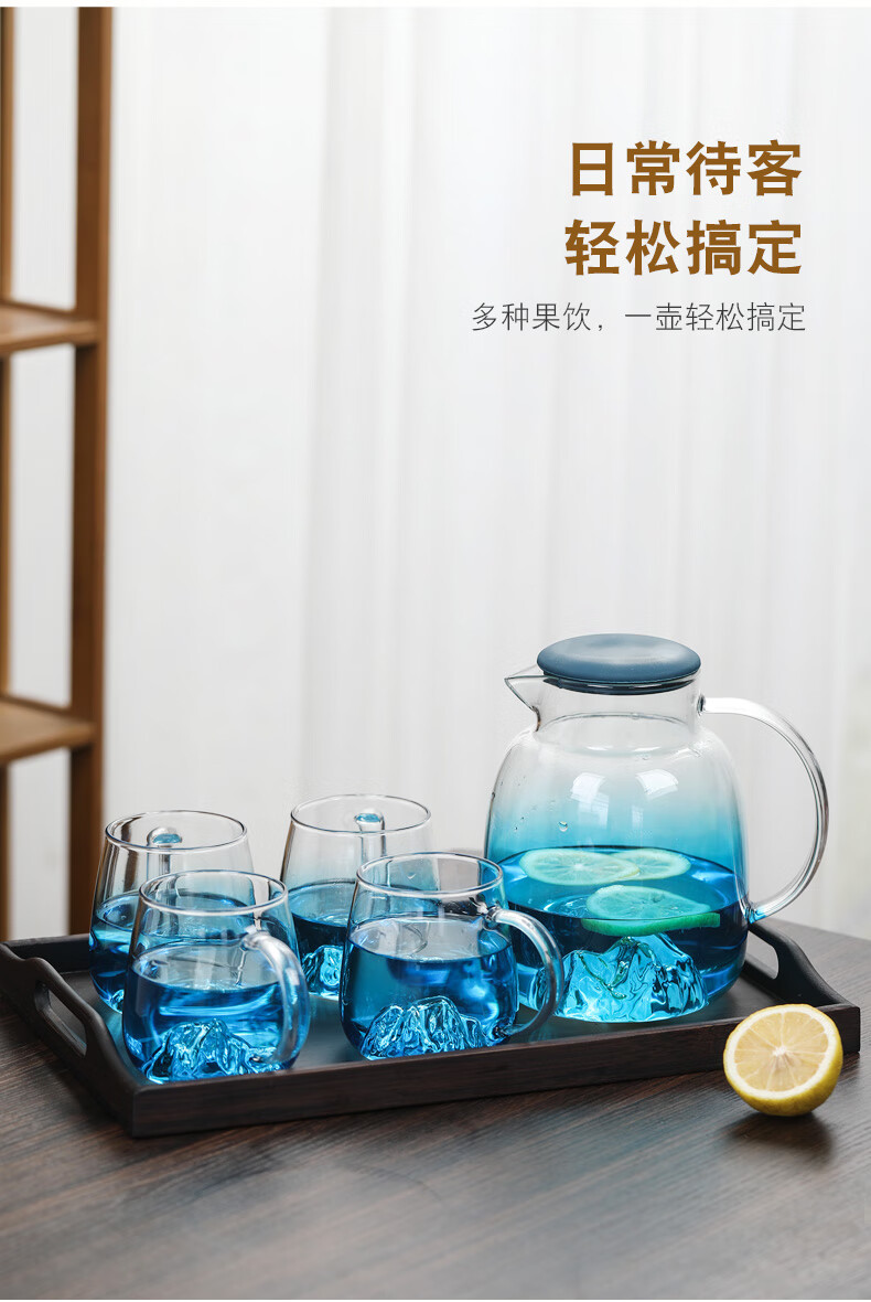 Su's ceramic high borosilicate glass large capacity cold water kettle, juice kettle, cold water cup, glass cup, mountain kettle, gradient blue, one pot, four cups