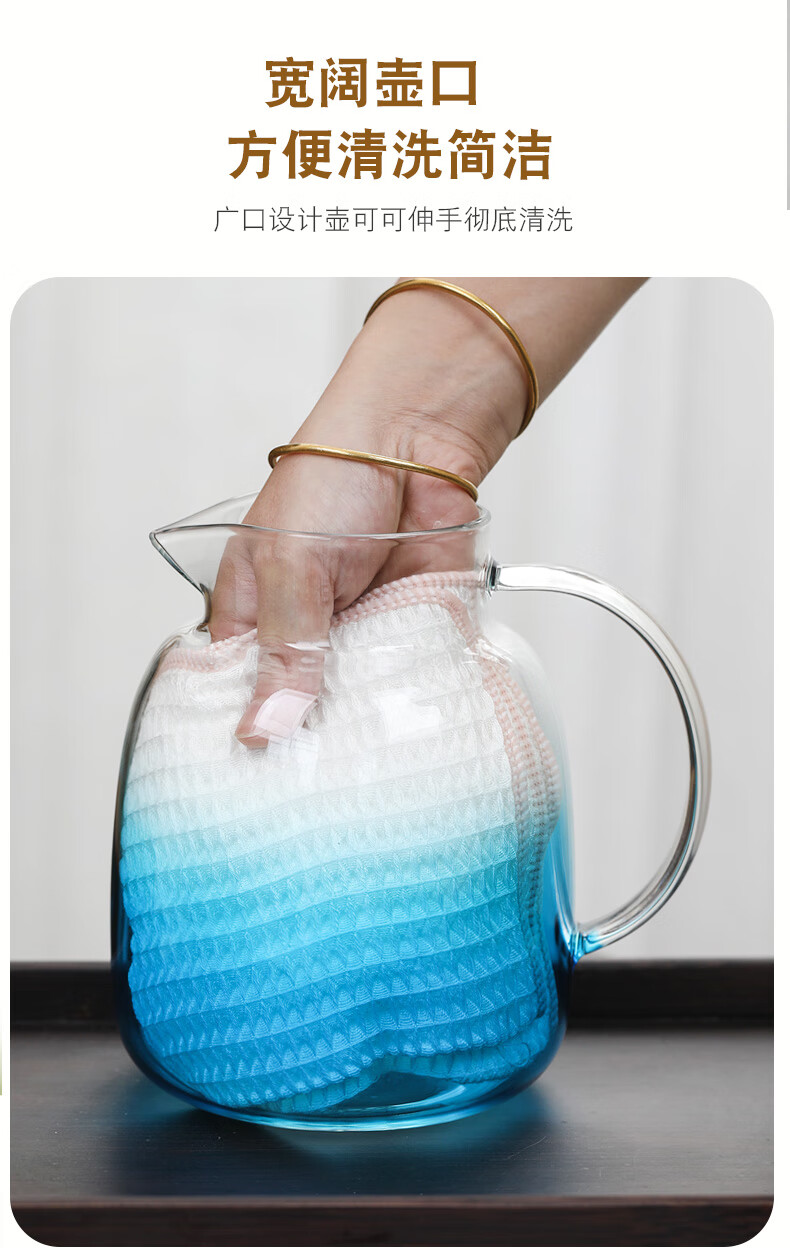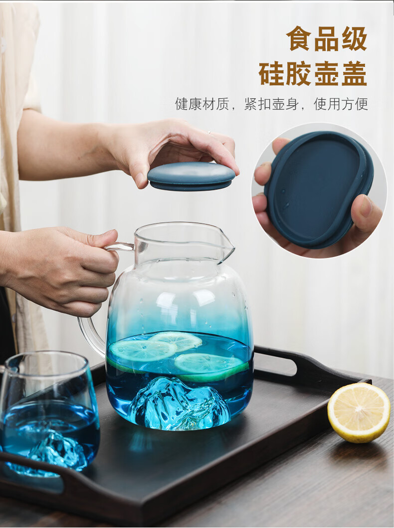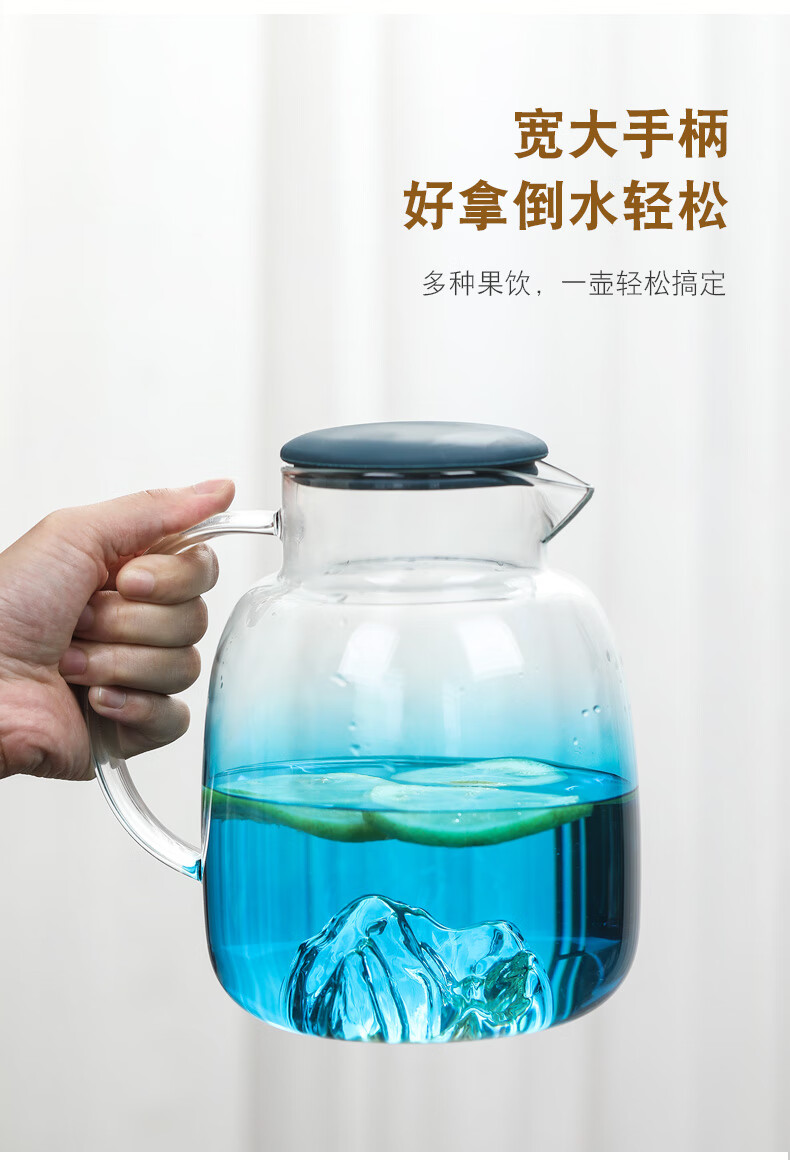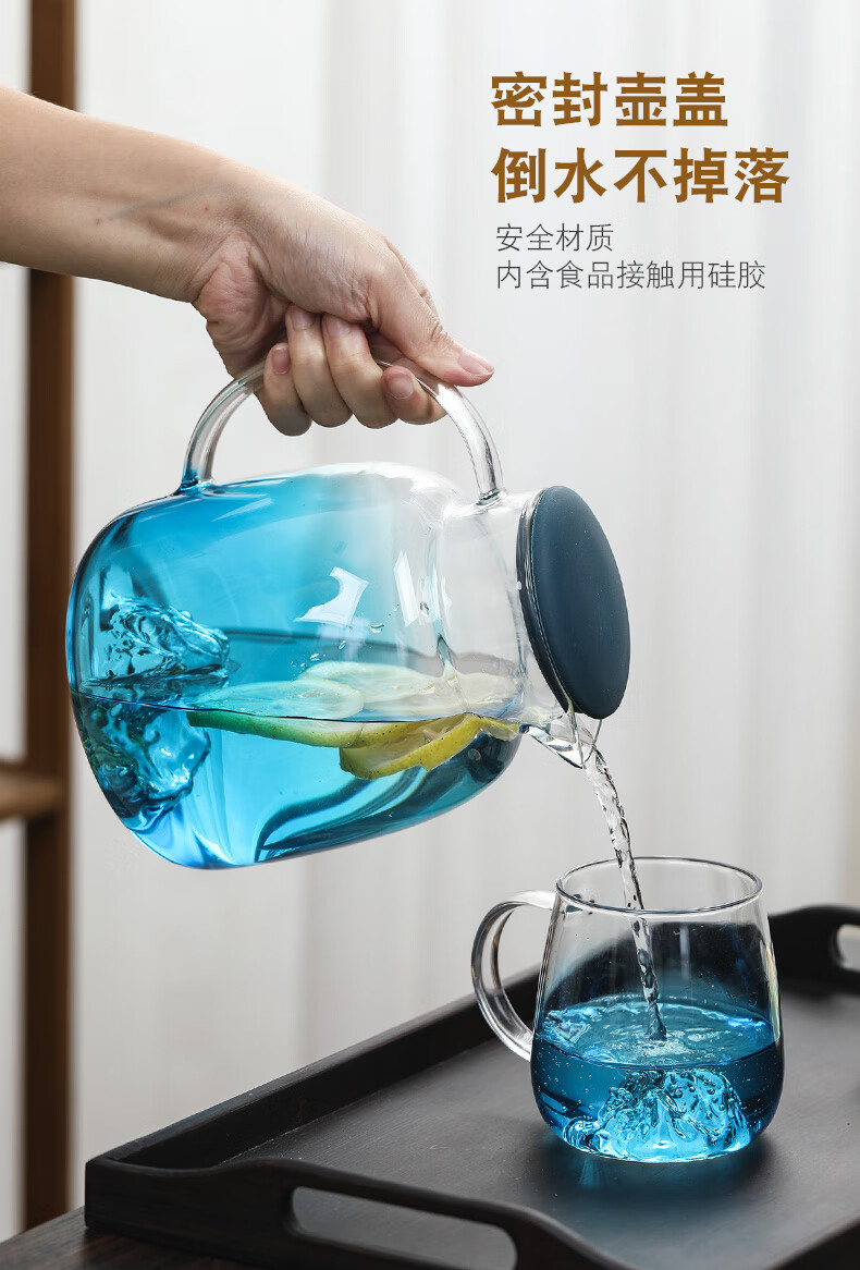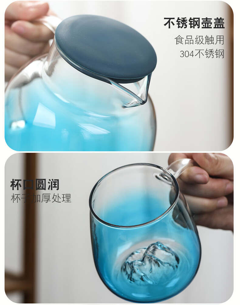 Su's ceramic high borosilicate glass large capacity cold water kettle, juice kettle, cold water cup, glass cup, mountain kettle, gradient blue, one pot, four cups