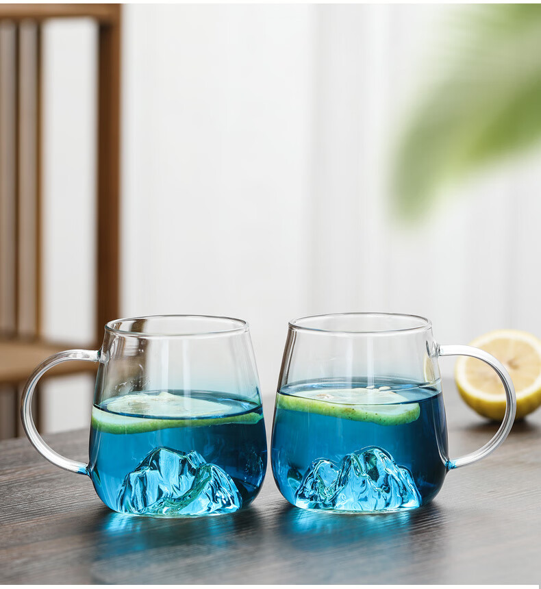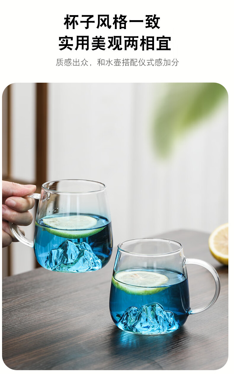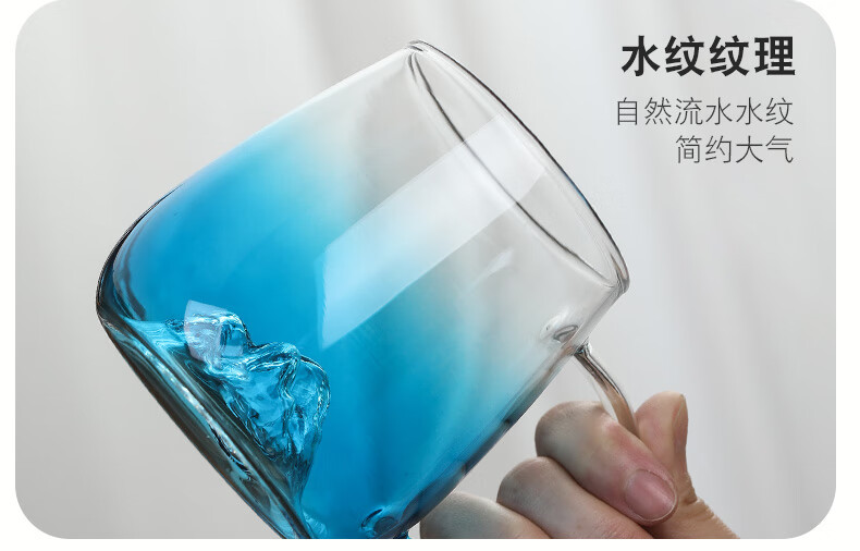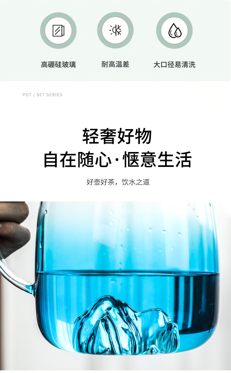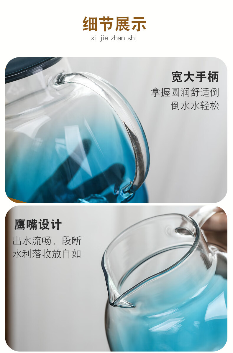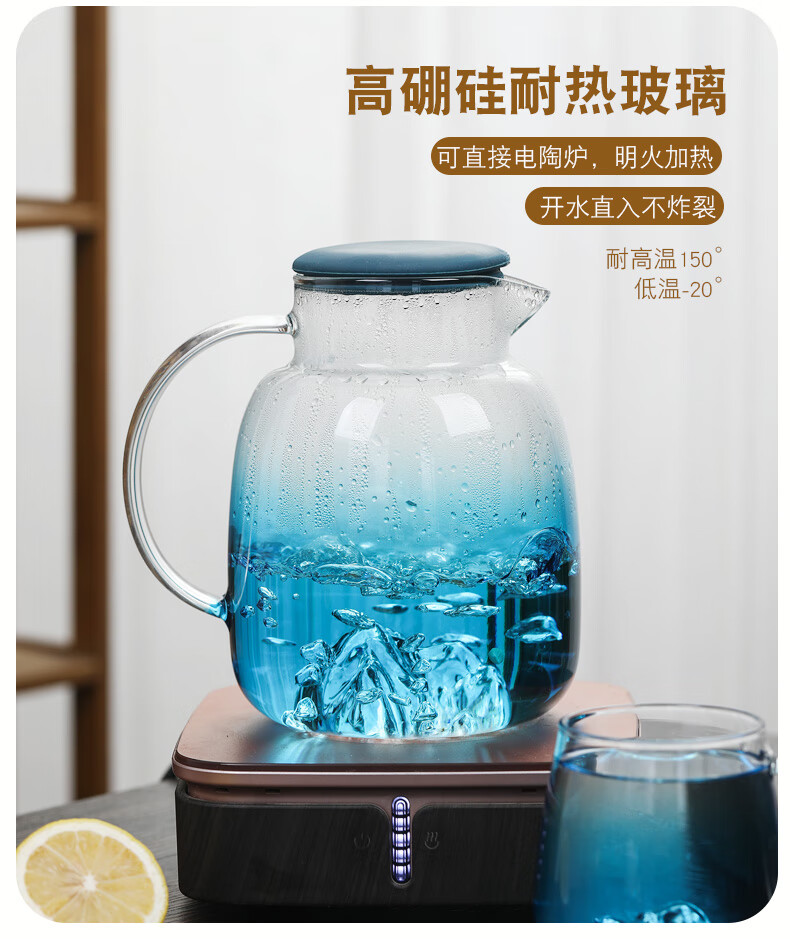 Su's ceramic high borosilicate glass large capacity cold water kettle, juice kettle, cold water cup, glass cup, mountain kettle, gradient blue, one pot, four cups