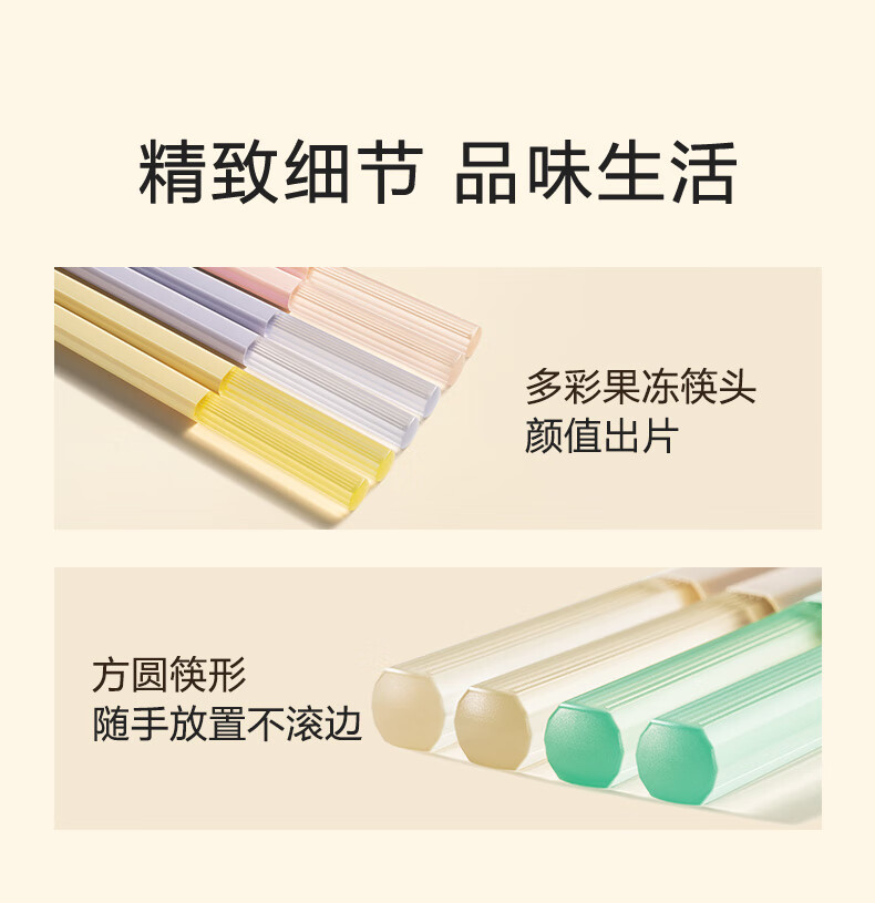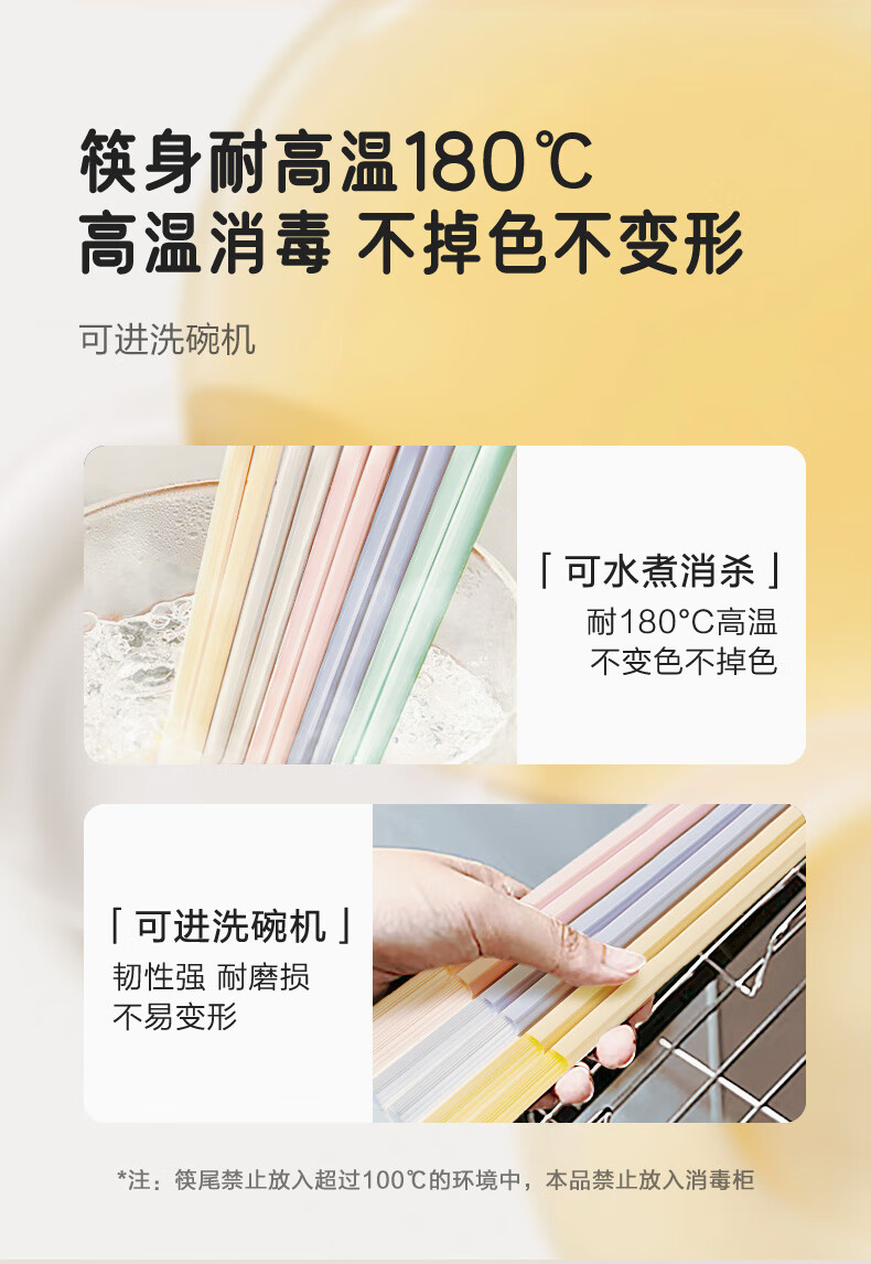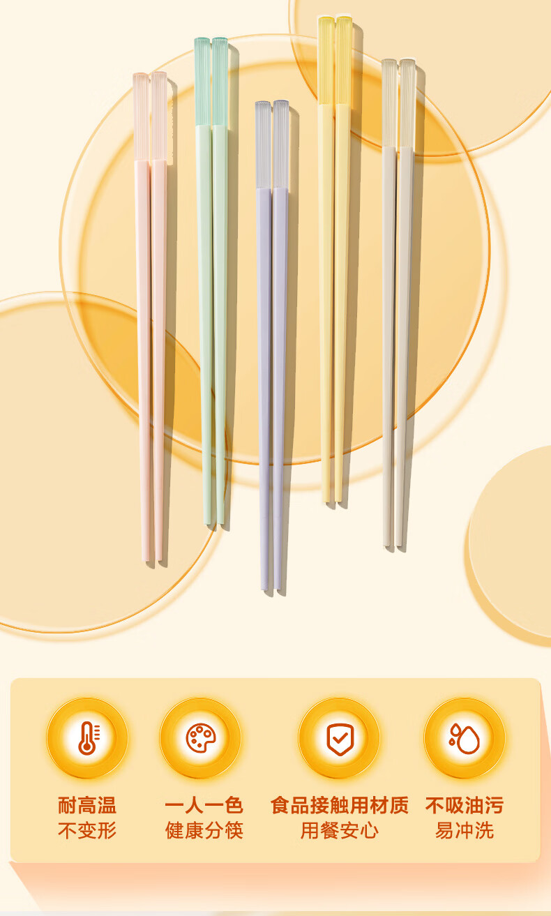 Supor special color chopsticks, high temperature resistant healthy chopsticks, color separated jelly chopsticks, 5 pairs TK23020E