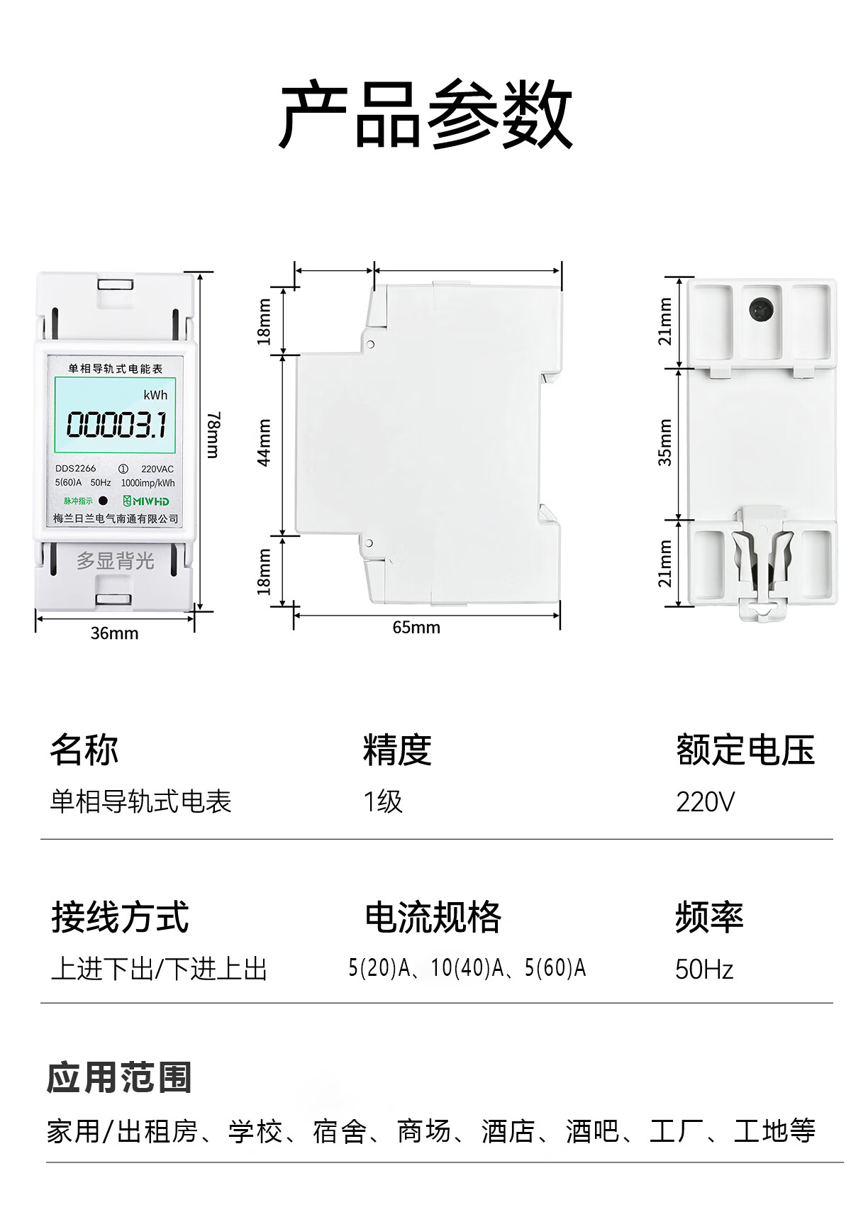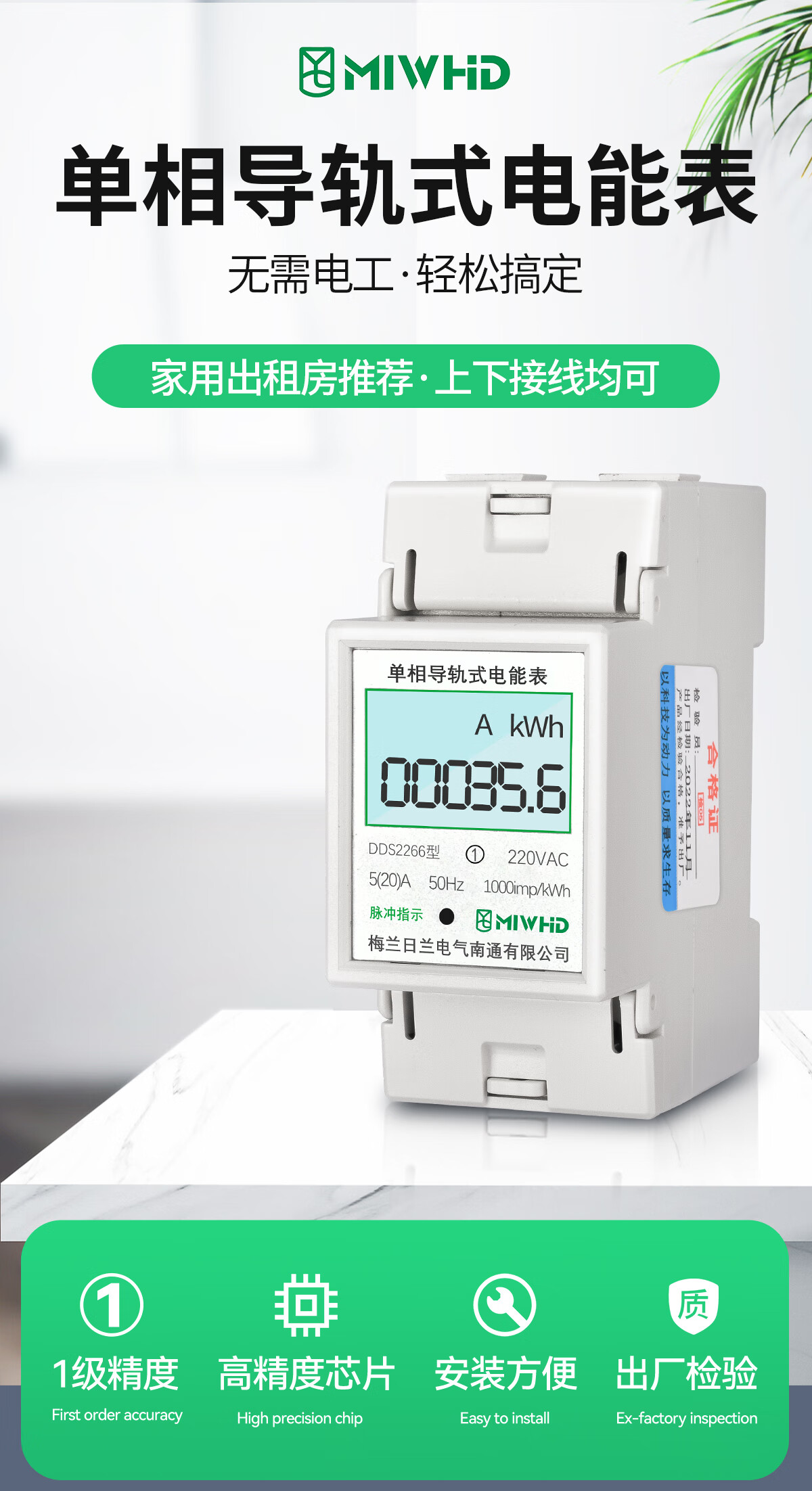 MIWHD single-phase rail electricity meter rental house household electricity meter DDS2266 220V 5(60)A
