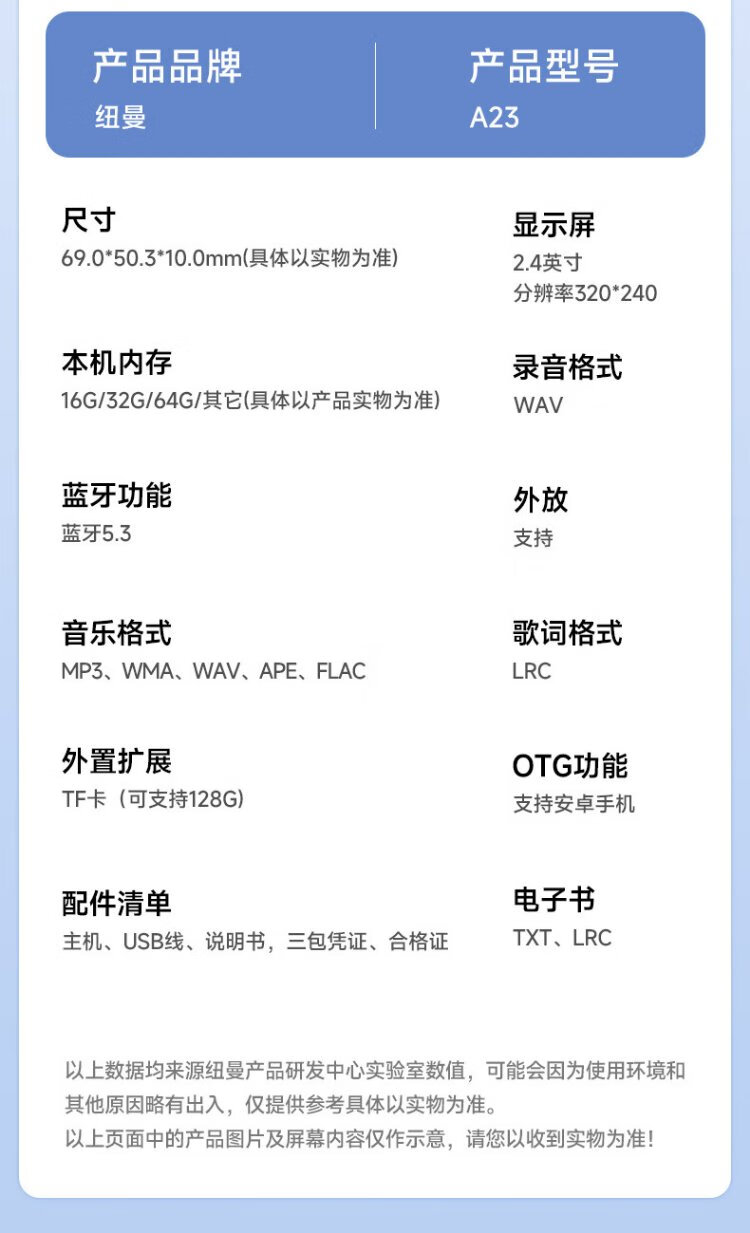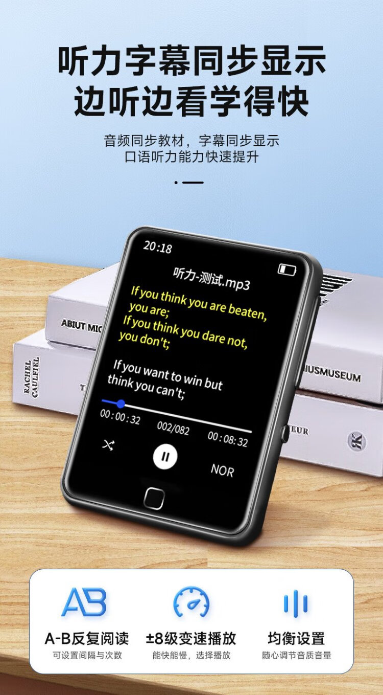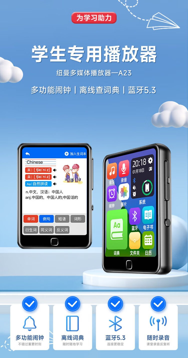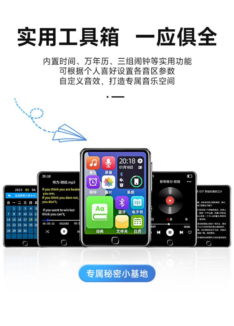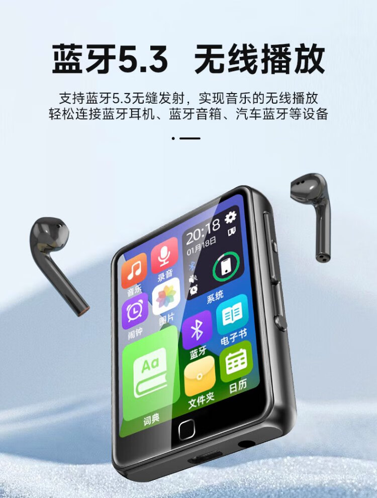 Newman A23 64G mp3/mp4 player walkman lossless HIFI music 2.4-inch e-book alarm clock recording repeat Bluetooth 5.3 dictionary student listening black