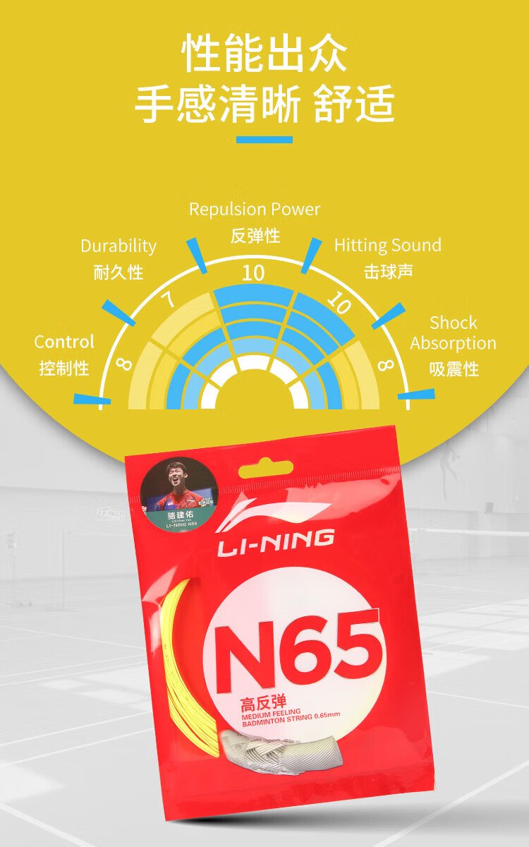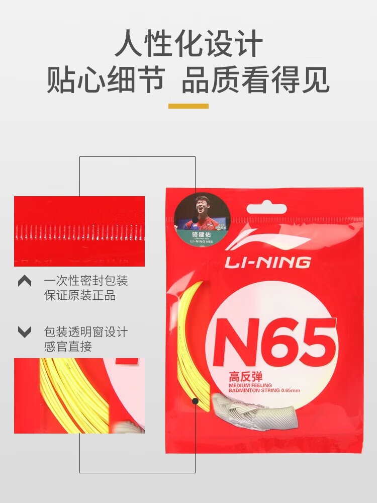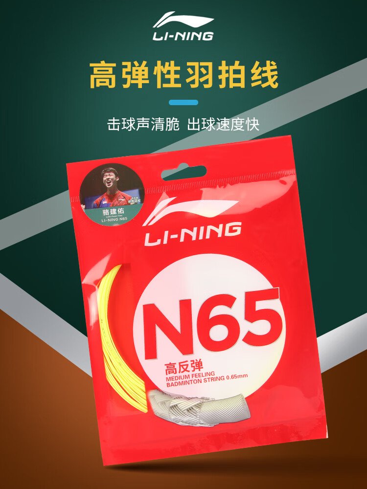 Li Ning (LI-NING) badminton string N65 high rebound type badminton string special network cable hitting sound crisp fluorescent light yellow
