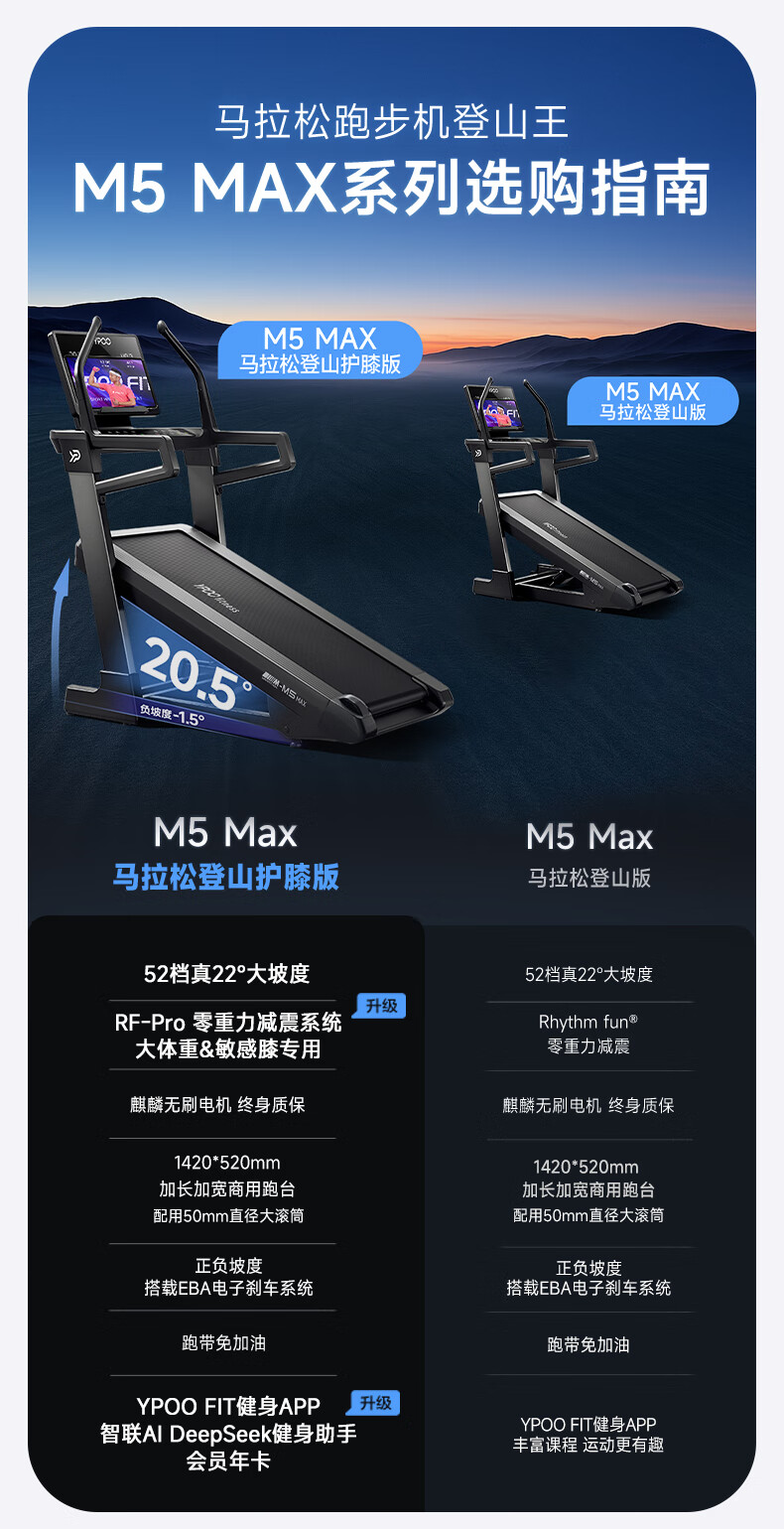 YPOO Marathon Treadmill Home Shock Absorbing Climbing Machine High-End Intelligent Commercial Fitness Equipment M5 MAX