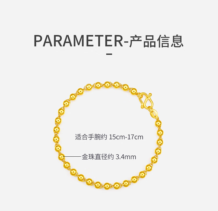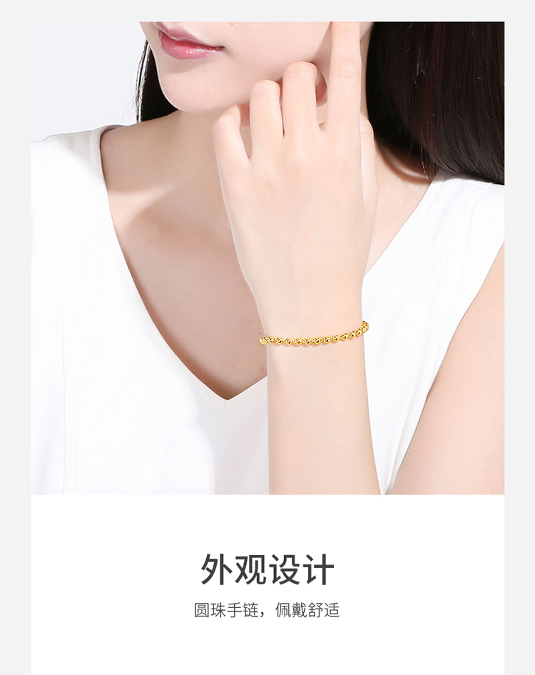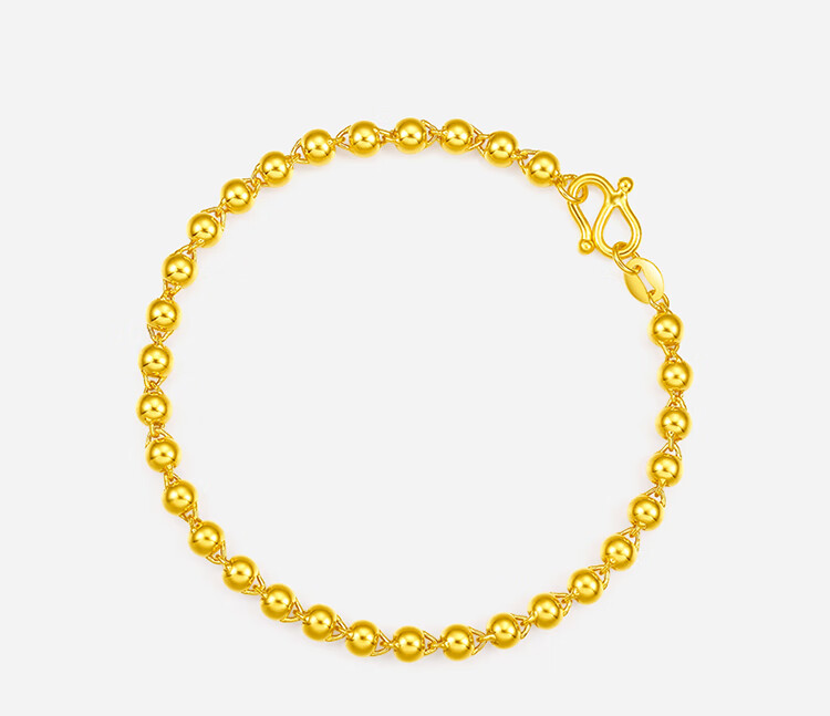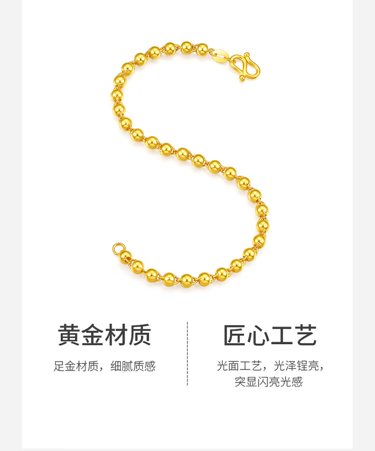 Saturday Fortune pure gold 999 simple round bead gold bracelet for women priced AA071295 about 4.78g 16cm birthday gift