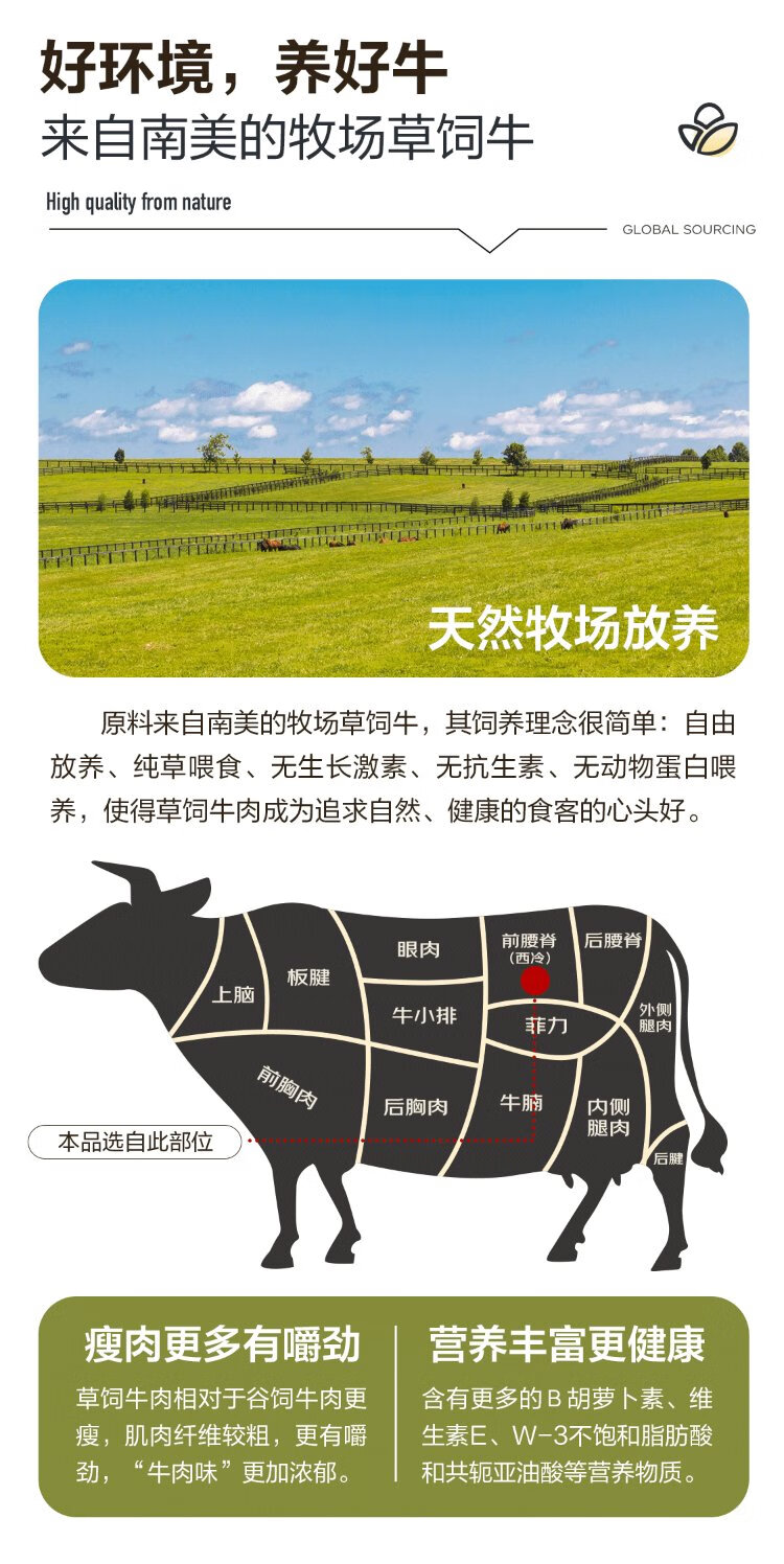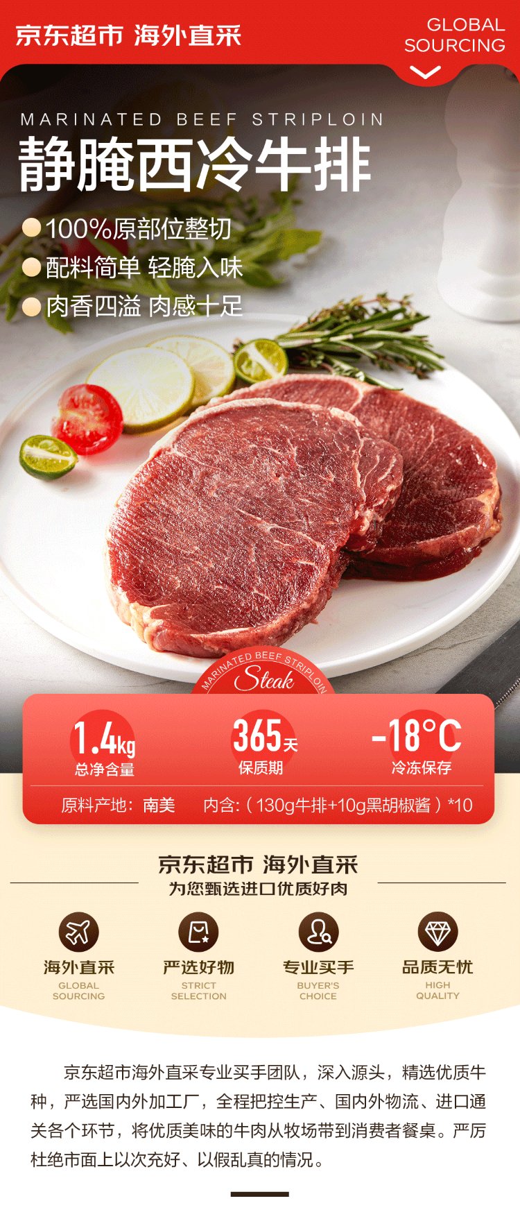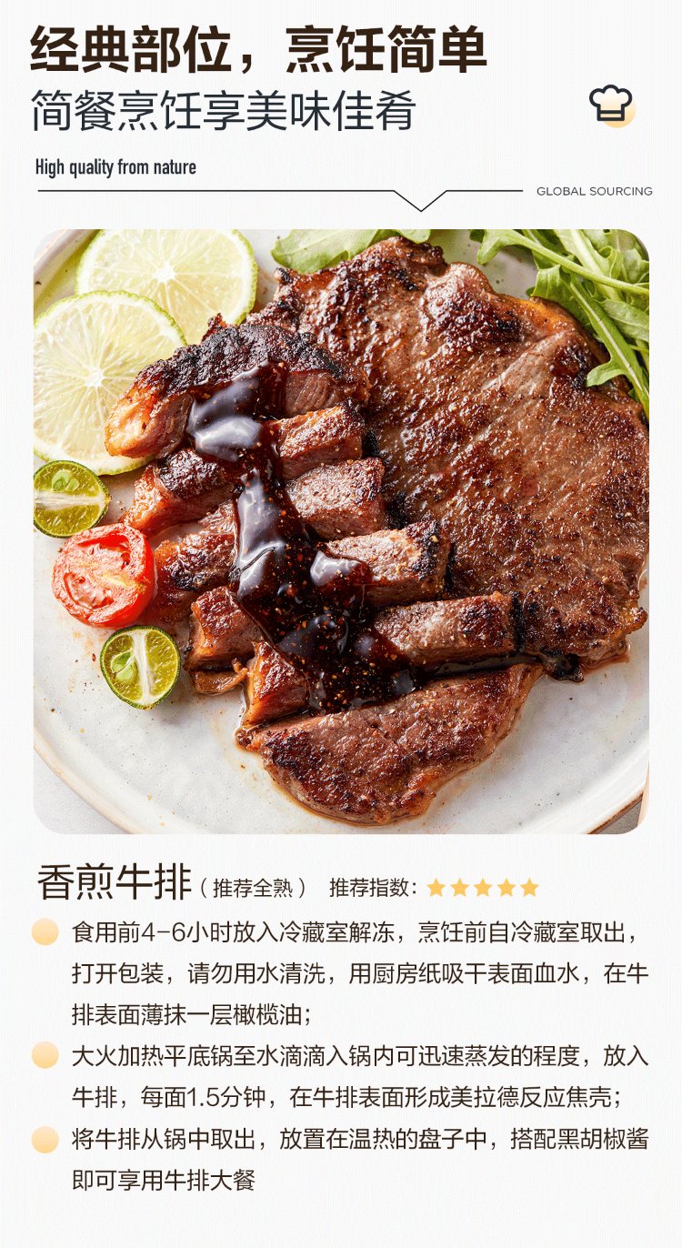 Jingdong Supermarket overseas direct pickled sirloin steak net weight 2.6Jin Jin is equal to 0.5kg (8-10 pieces) free 10 packs of black pepper sauce beef