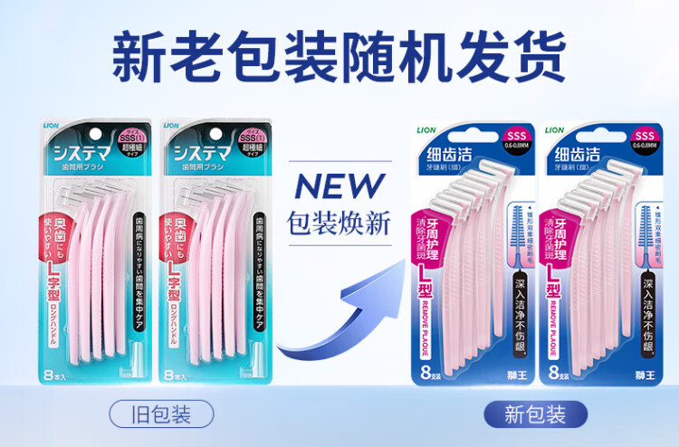Lion Fine Teeth Cleaner Orthodontics Professional Gum Protecting Interdental Brush Ultra-fine SSS*16 L-shaped Reusable New and Old Packaging Mixed Hair