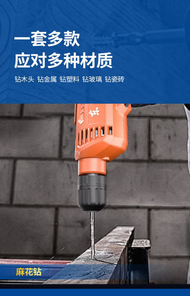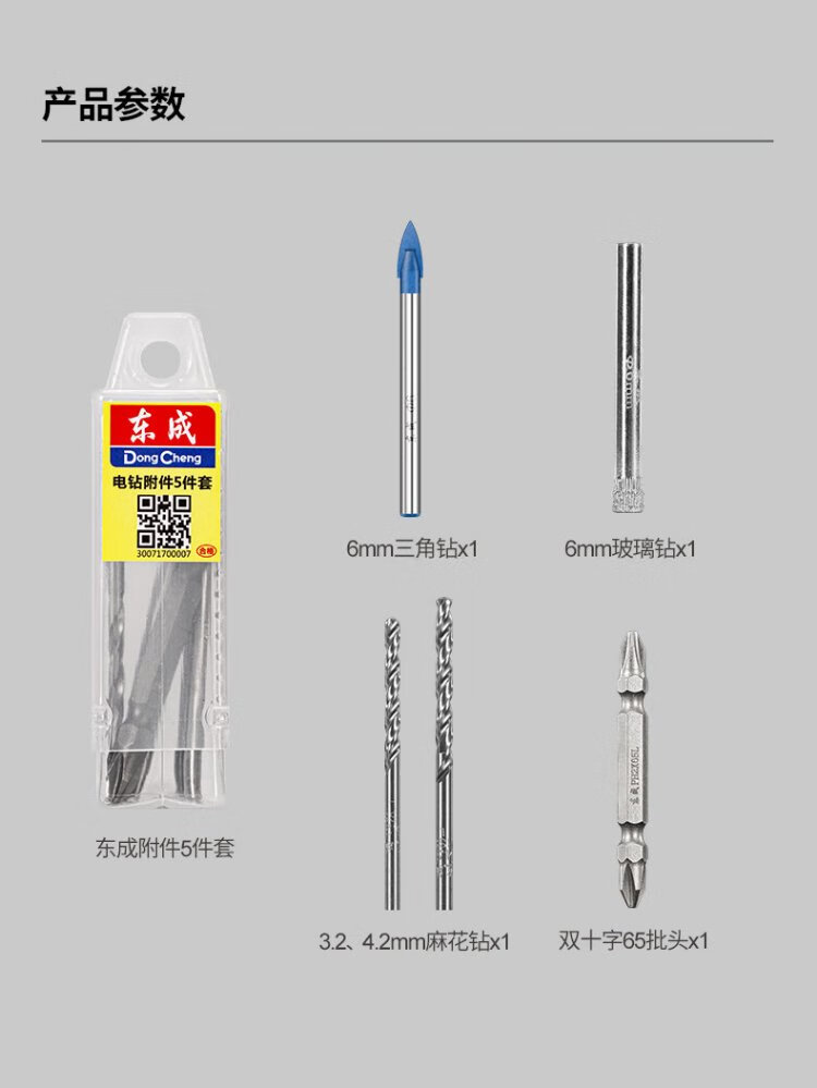 Dongcheng electric drill accessories 5-piece set for electric drills, triangle drill, twist drill, eleven-character bit glass drill, multi-functional household drill