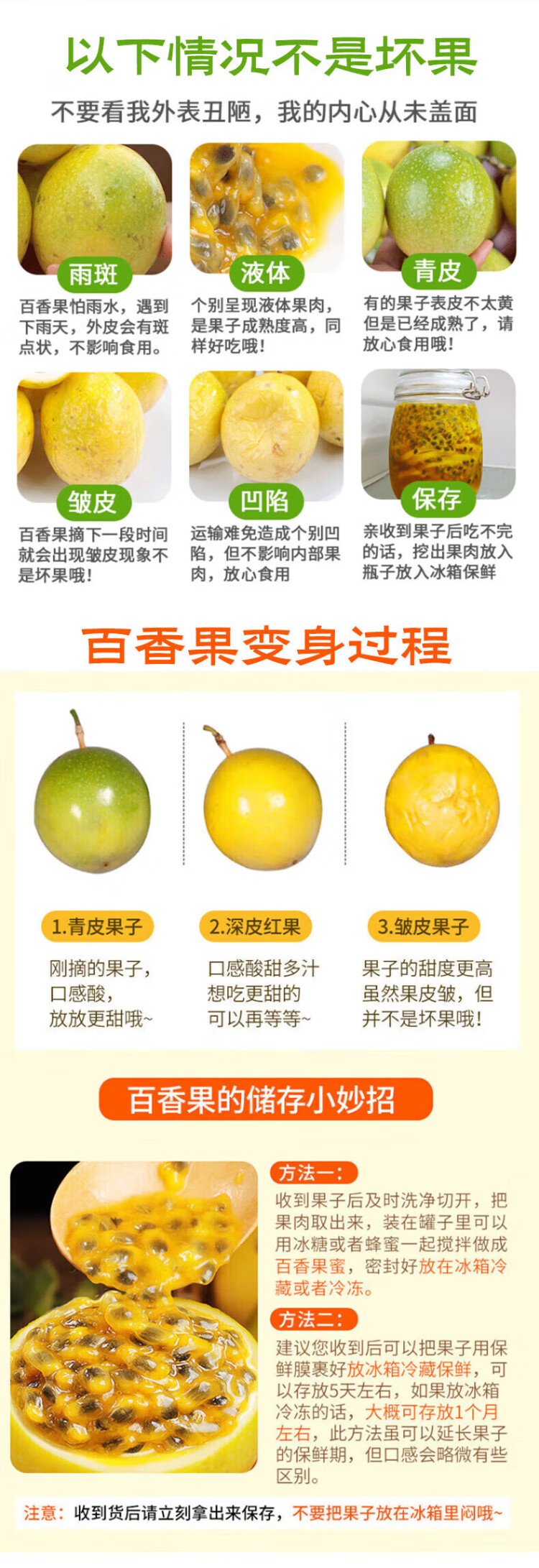 Jingxiansheng Guangxi Golden Passion Fruit Net weight 3Jin Jin is equal to 0.5kg Single fruit 45-60g/24-36 fresh fruits Straight from the source