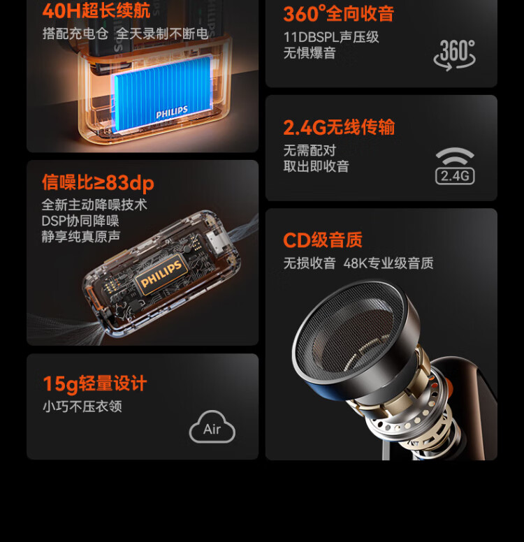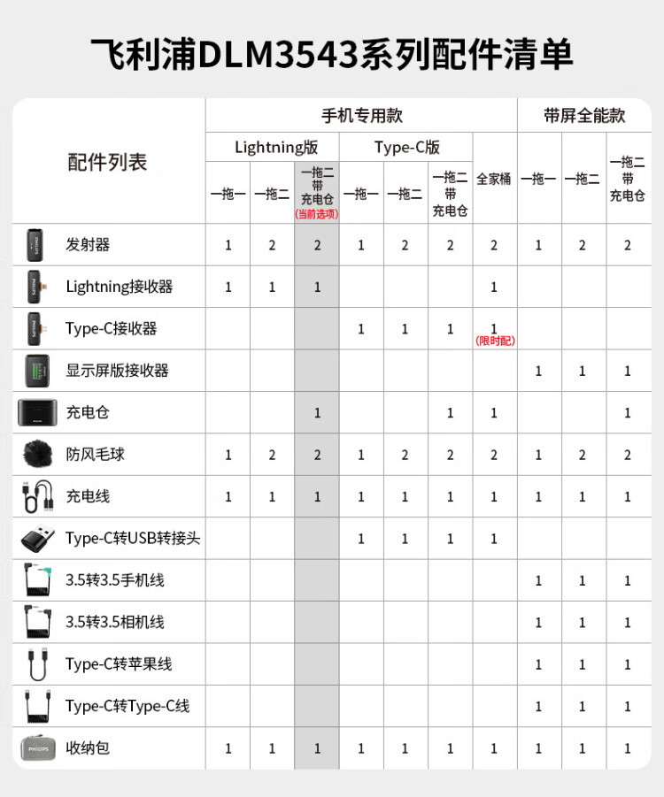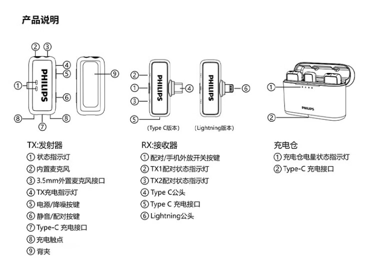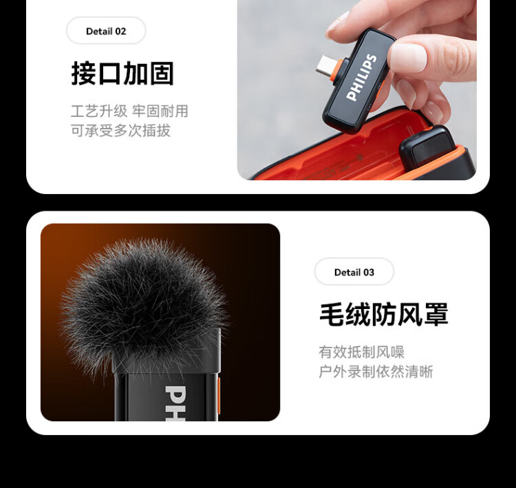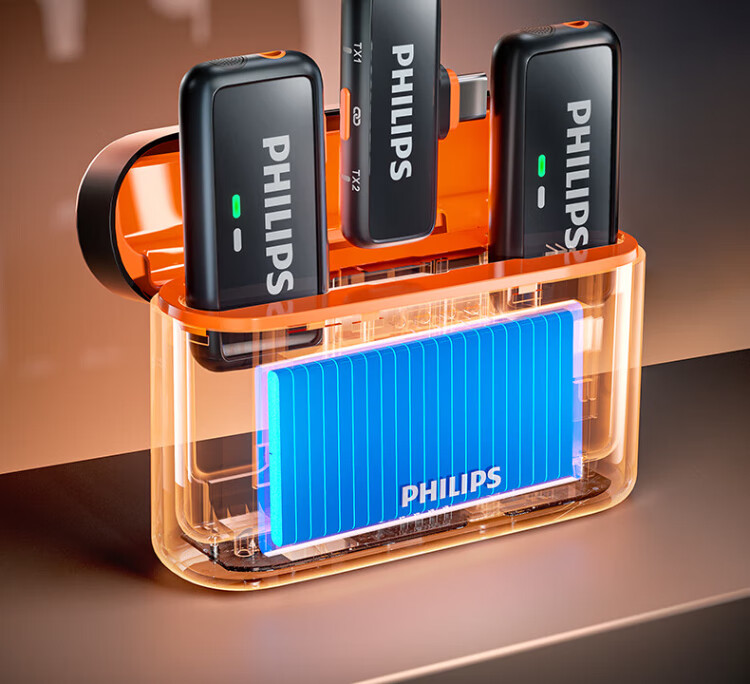 Philips (PHILIPS) National Subsidy Lavalier Microphone Wireless Radio Mobile Live Outdoor Vlog Short Video Noise Reduction Recording Microphone Apple Version One-to-Two DLM3543C+ Charging Box