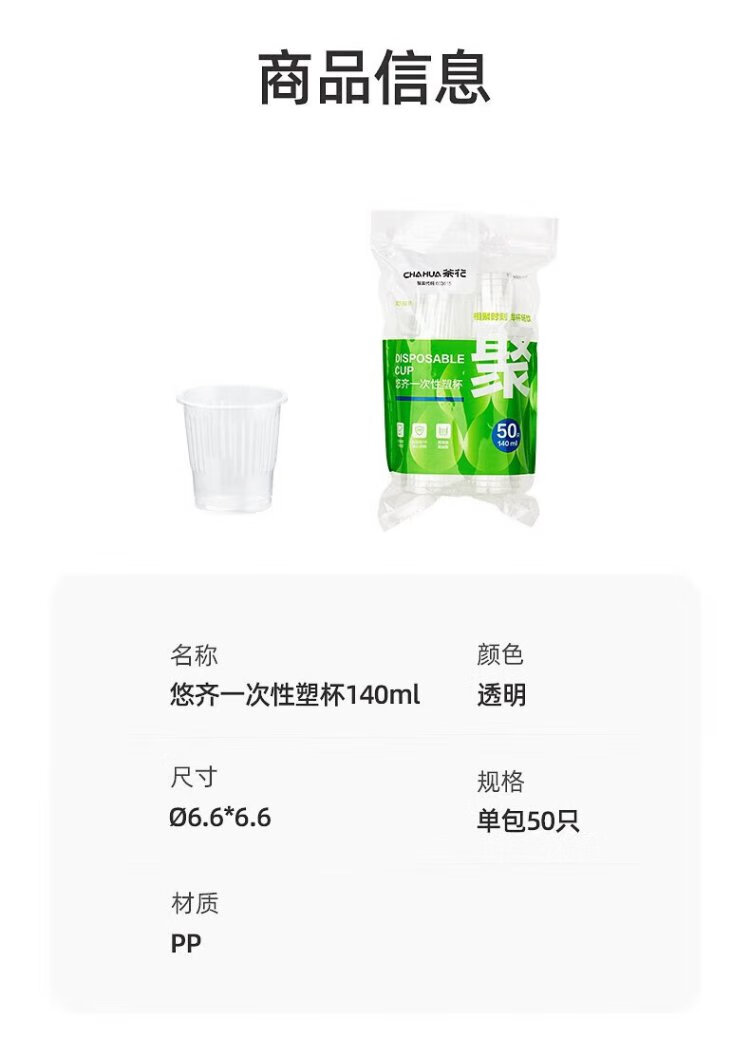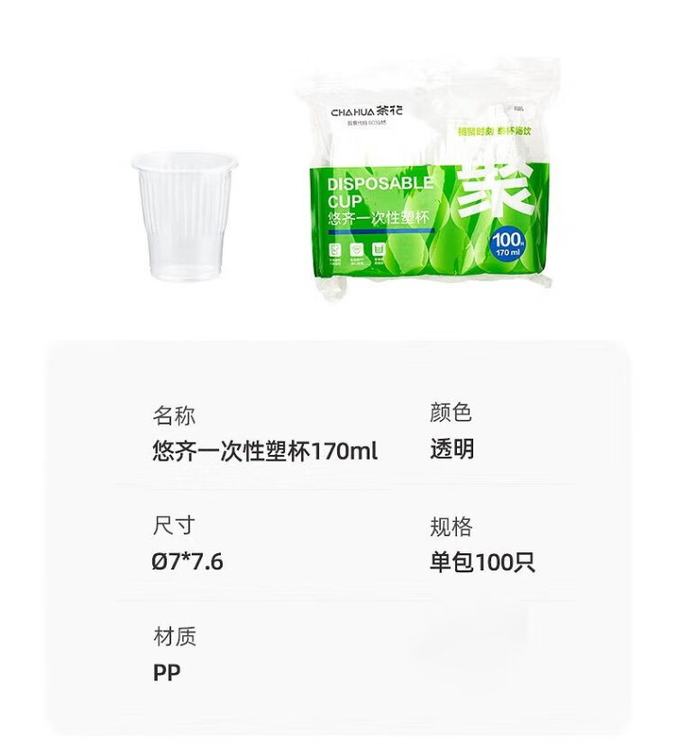 Camellia aviation cup disposable cup thickened plastic cup pp transparent plastic cup household 100 pieces 210ML