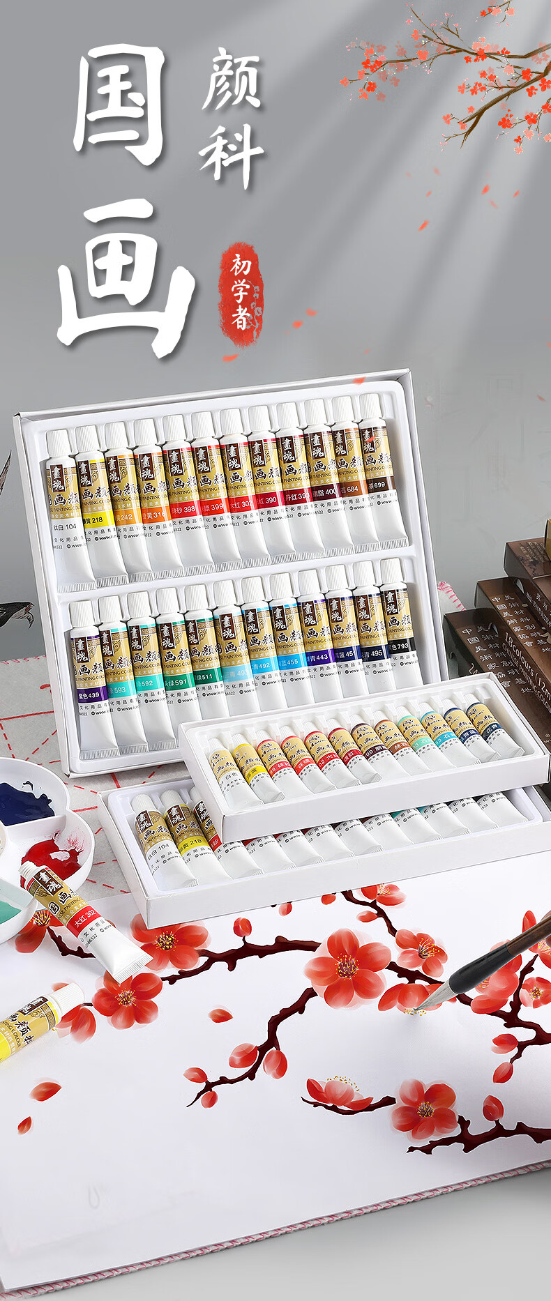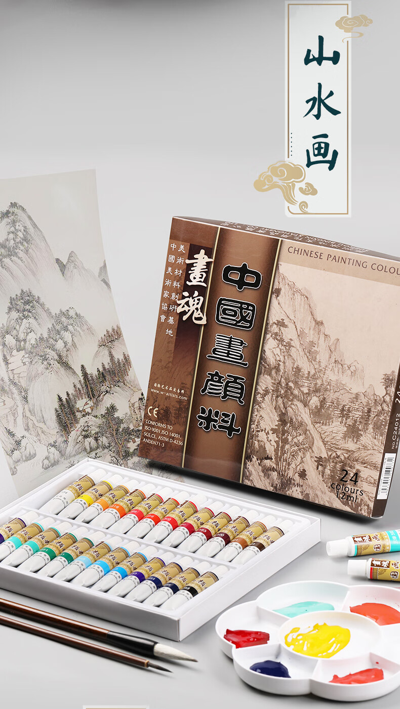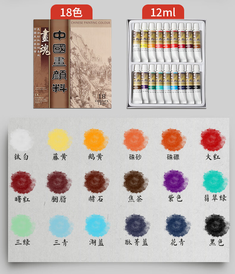 Surada Chinese Painting Pigments Chinese Painting Pigments Chinese Painting Pigment Set Beginner Students Children's Ink Painting Landscape Painting Set 18 Colors 6ML Toolbox Set SD159 Art Sketching