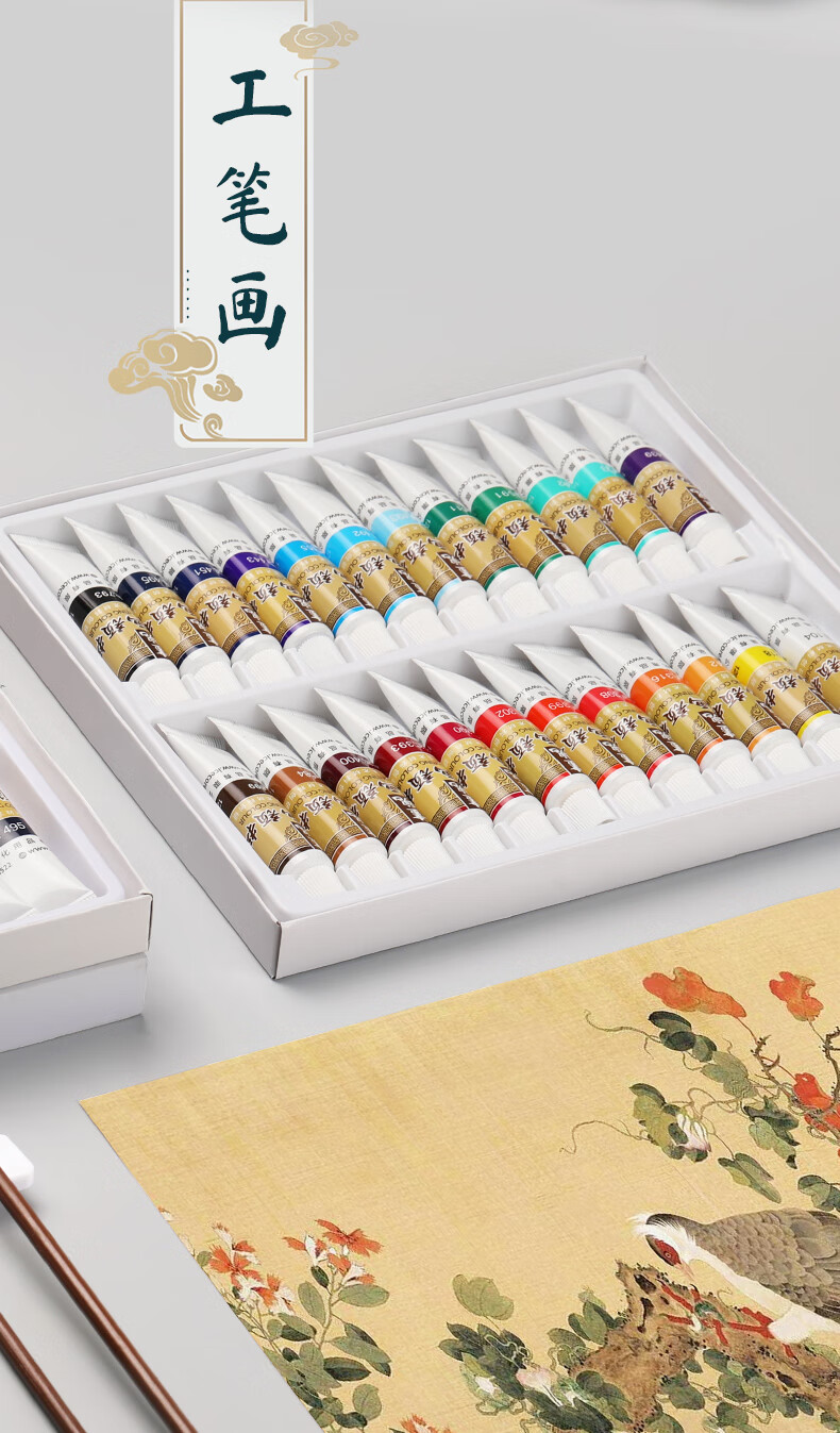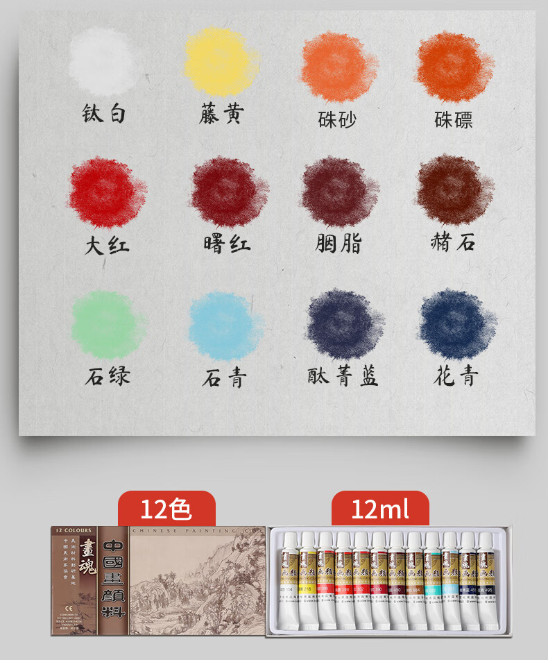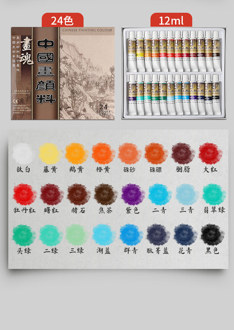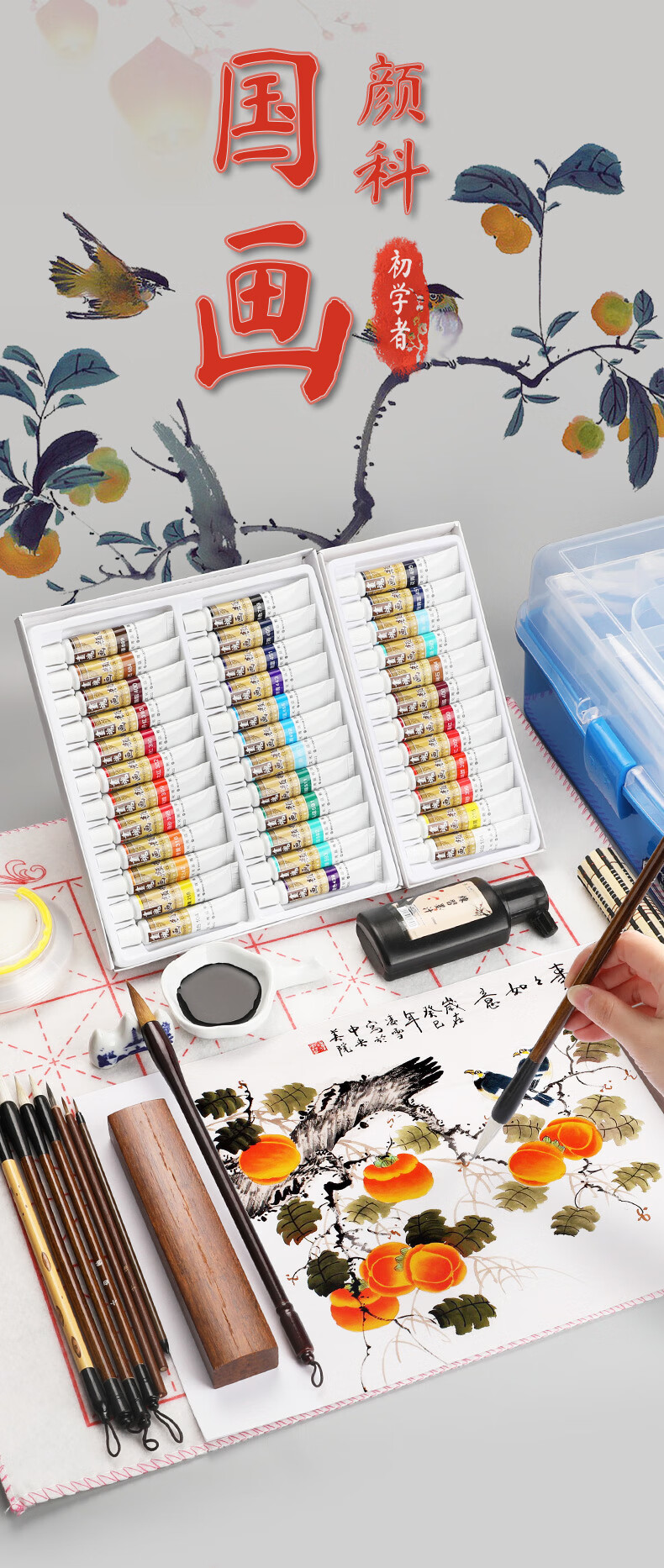 Surada Chinese Painting Pigments Chinese Painting Pigments Chinese Painting Pigment Set Beginner Students Children's Ink Painting Landscape Painting Set 18 Colors 6ML Toolbox Set SD159 Art Sketching