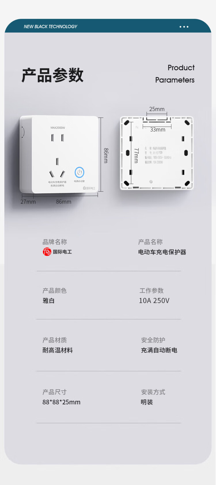 International Electrician Electric Vehicle Charging Protector Socket Fully Automatically Cuts Off Charging Pile Timing Switch Exposed Type 86 Concealed Yabai Energy Saving Prevent Overcharging