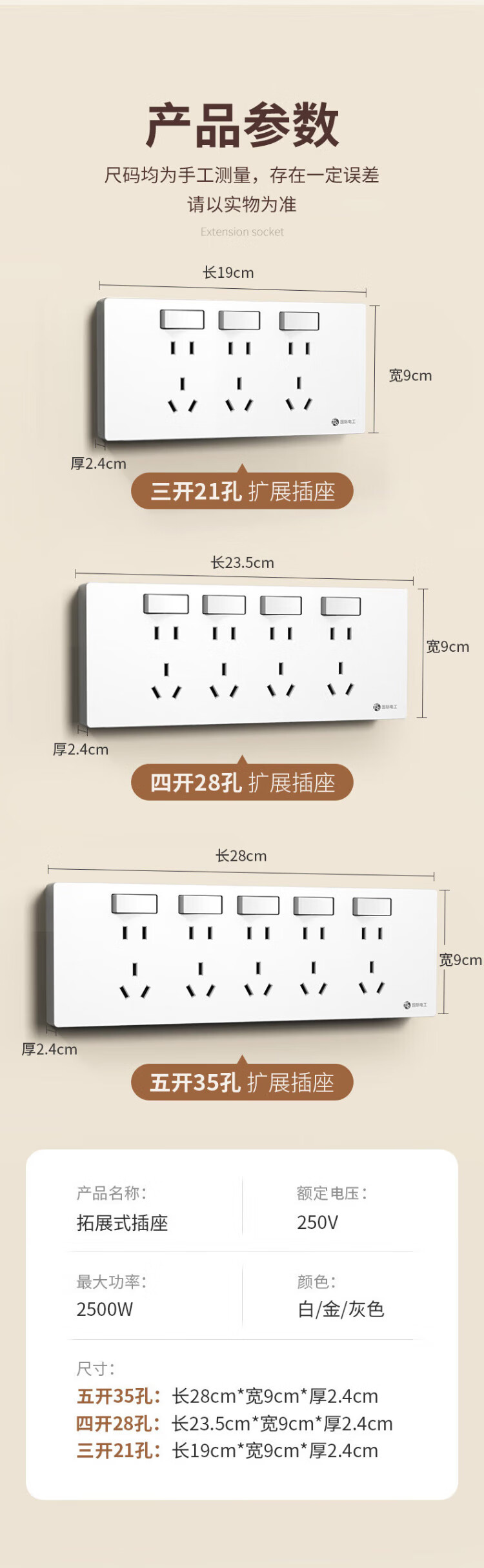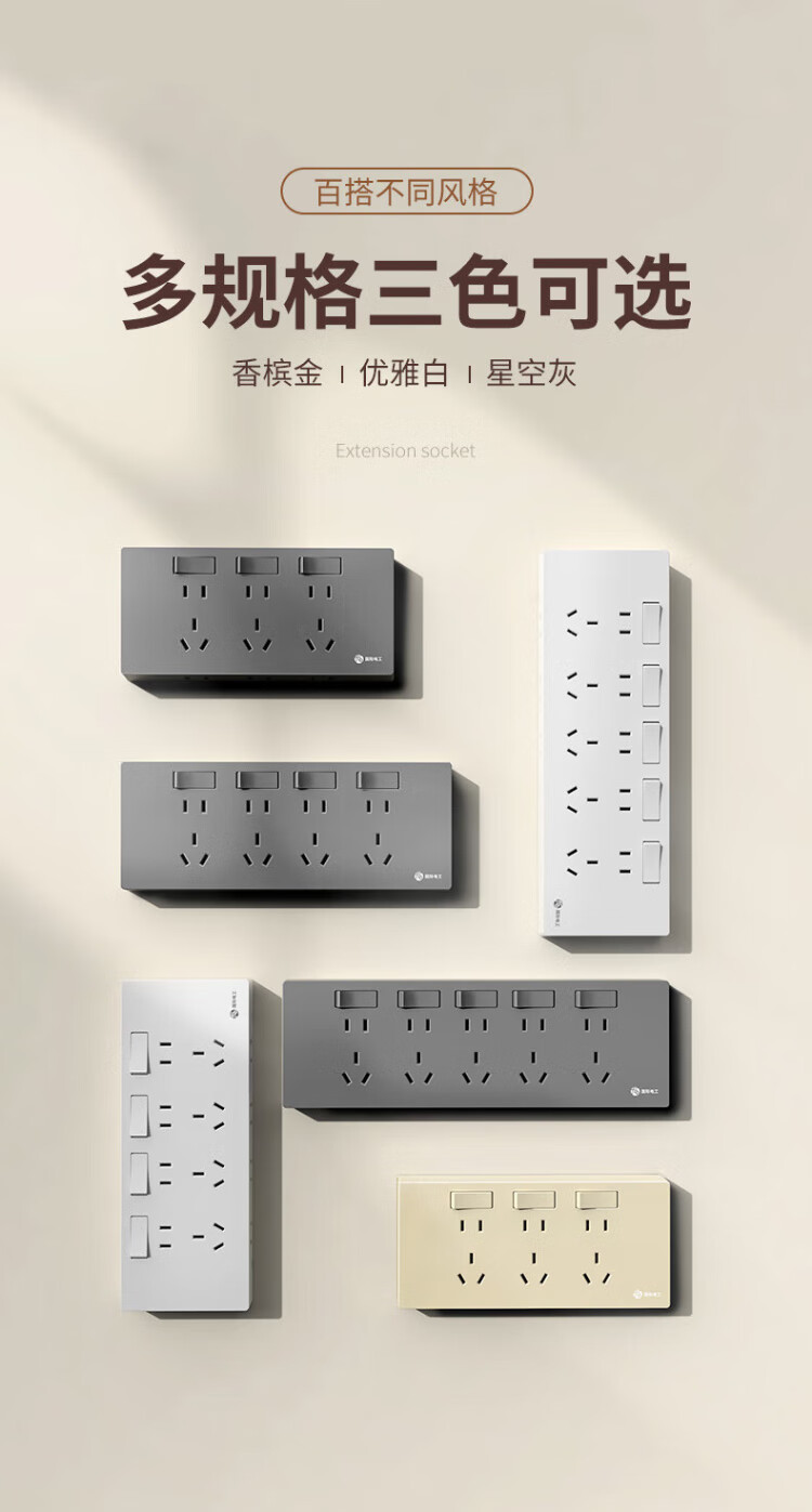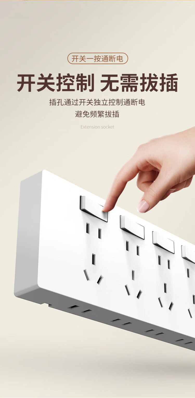 International Electrician (FDD) Concealed Expansion Socket 86 Type Converter Extension Socket Panel One Open Five Holes with Switch White - 21 Holes Expand to the Right + Independent Switch