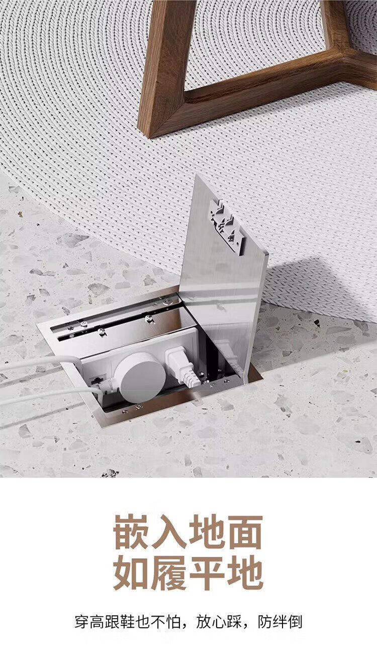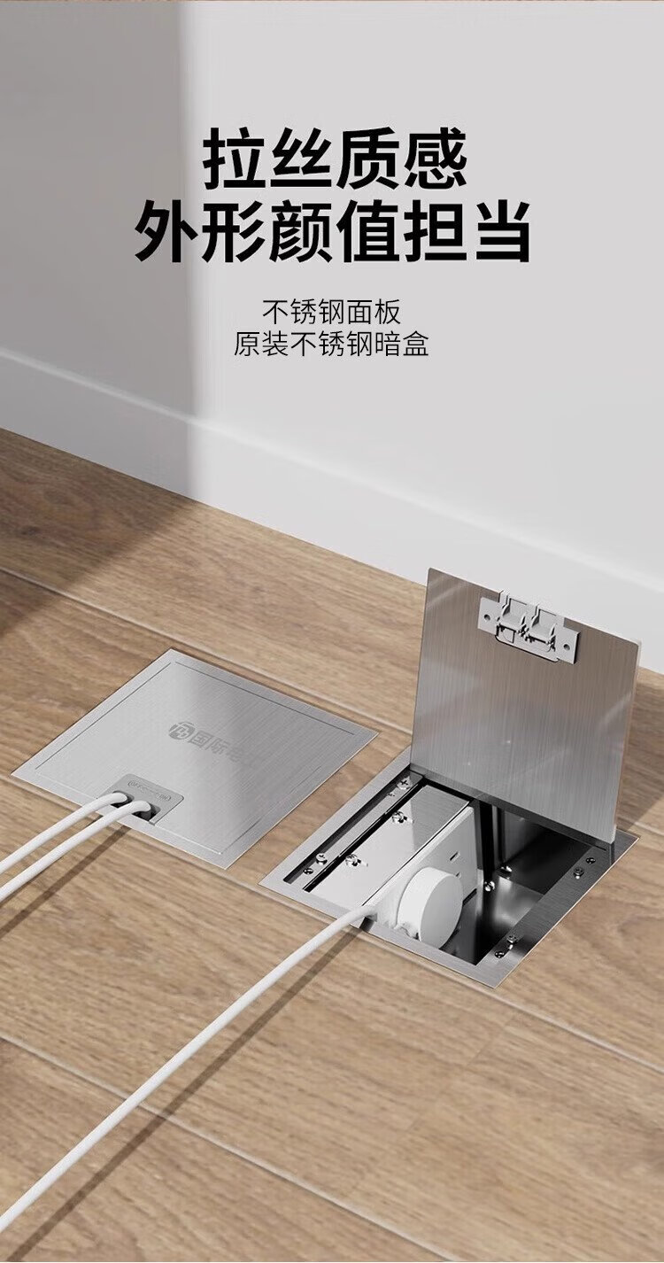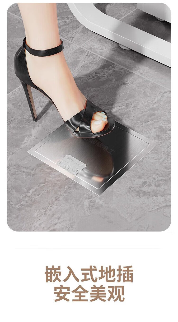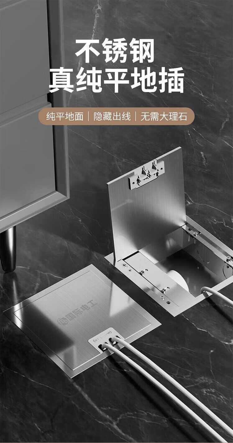 International Electrician (FDD) flat invisible floor socket hidden stainless steel waterproof embedded floor socket ultra-thin five-hole