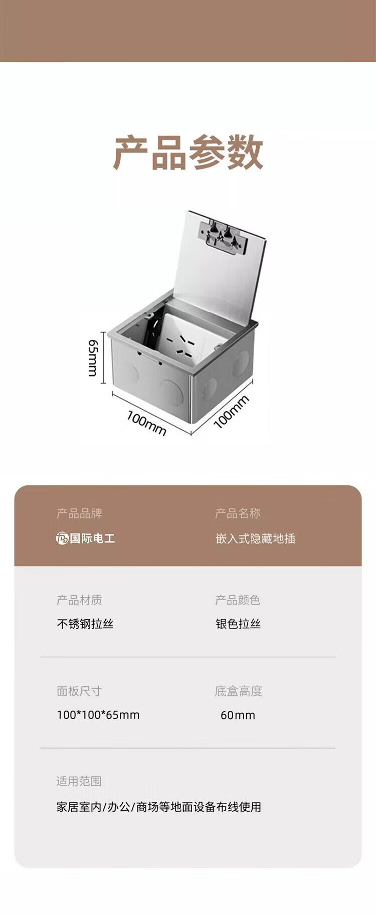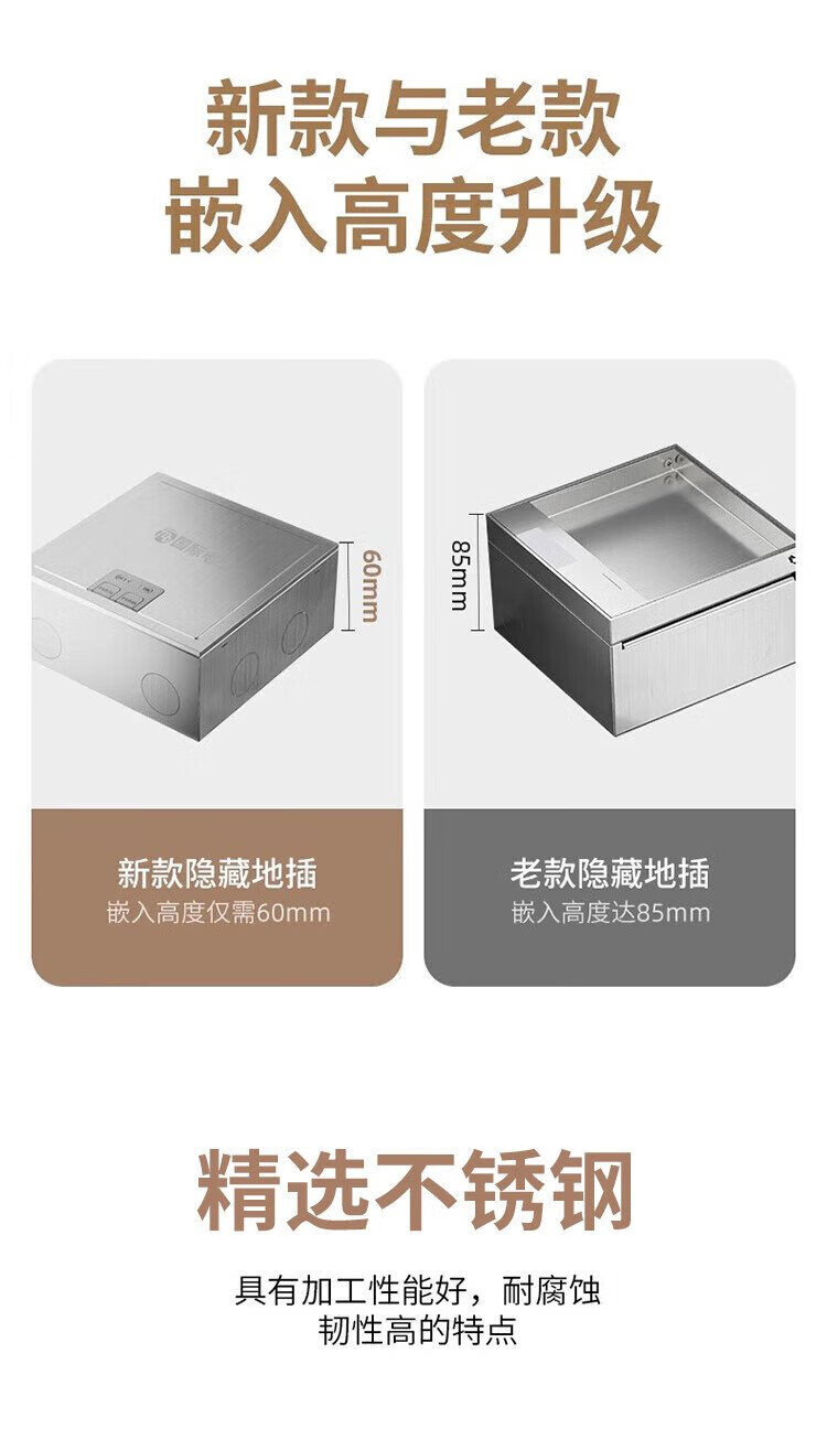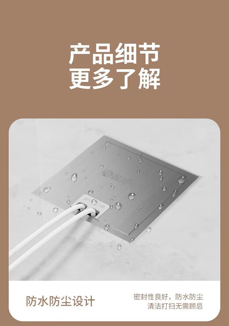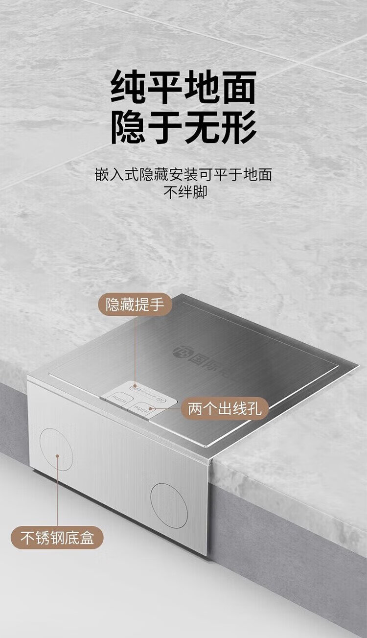 International Electrician (FDD) flat invisible floor socket hidden stainless steel waterproof embedded floor socket ultra-thin five-hole
