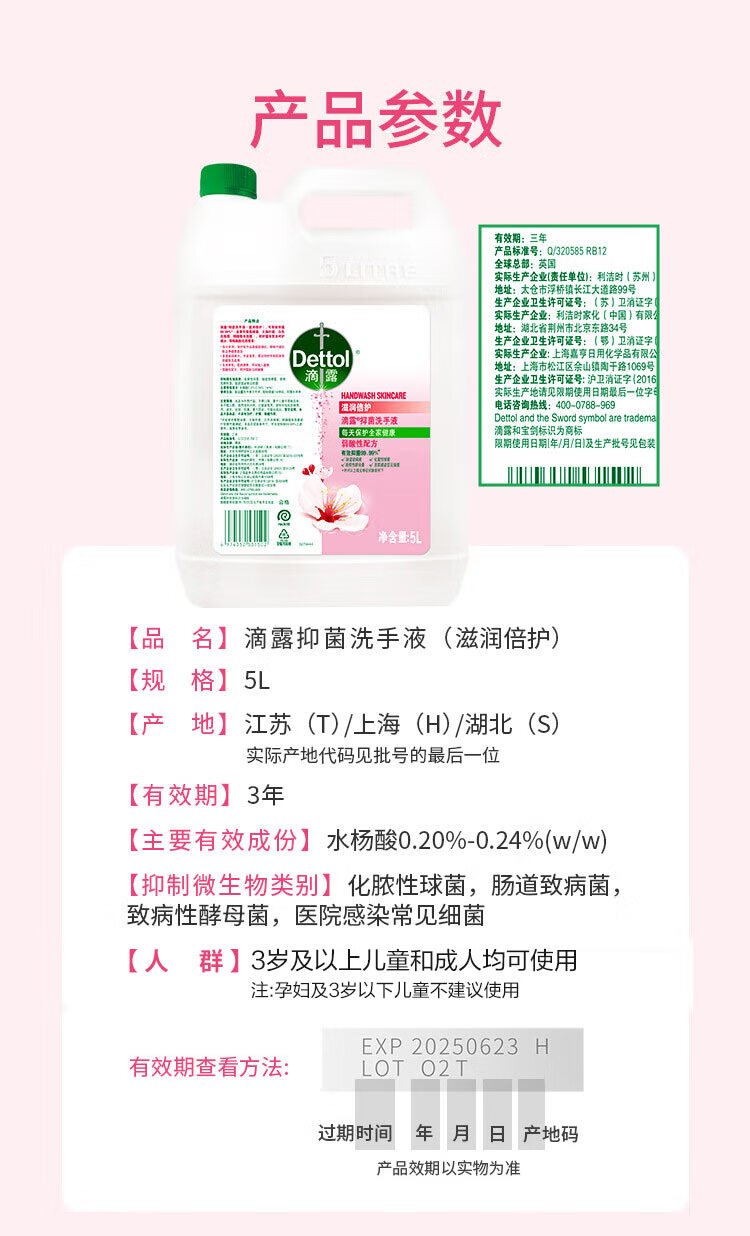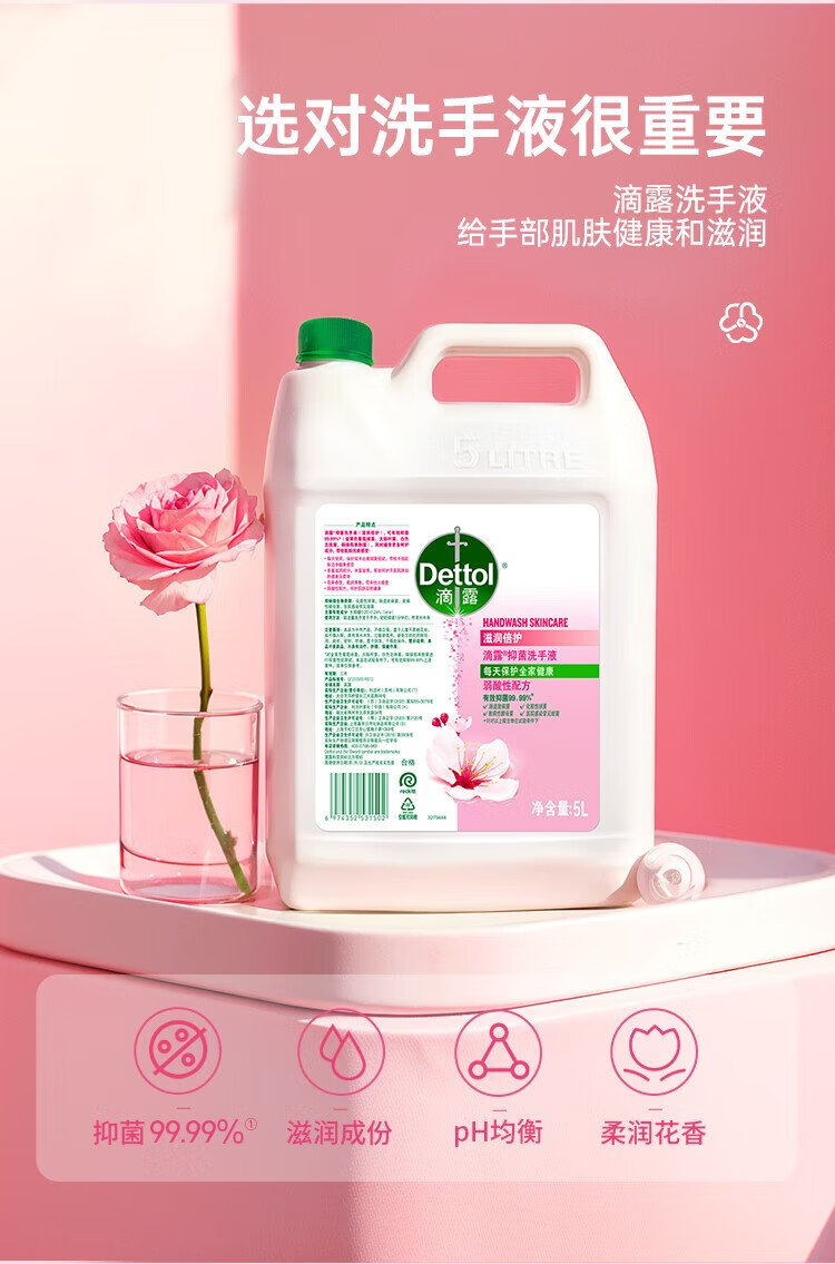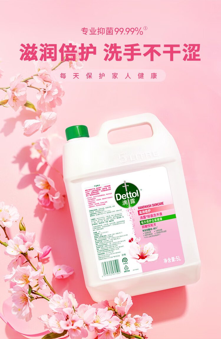 Dettol hand sanitizer refill large bucket disinfection and moisturizing 5L children's family size sterilization hand protection
