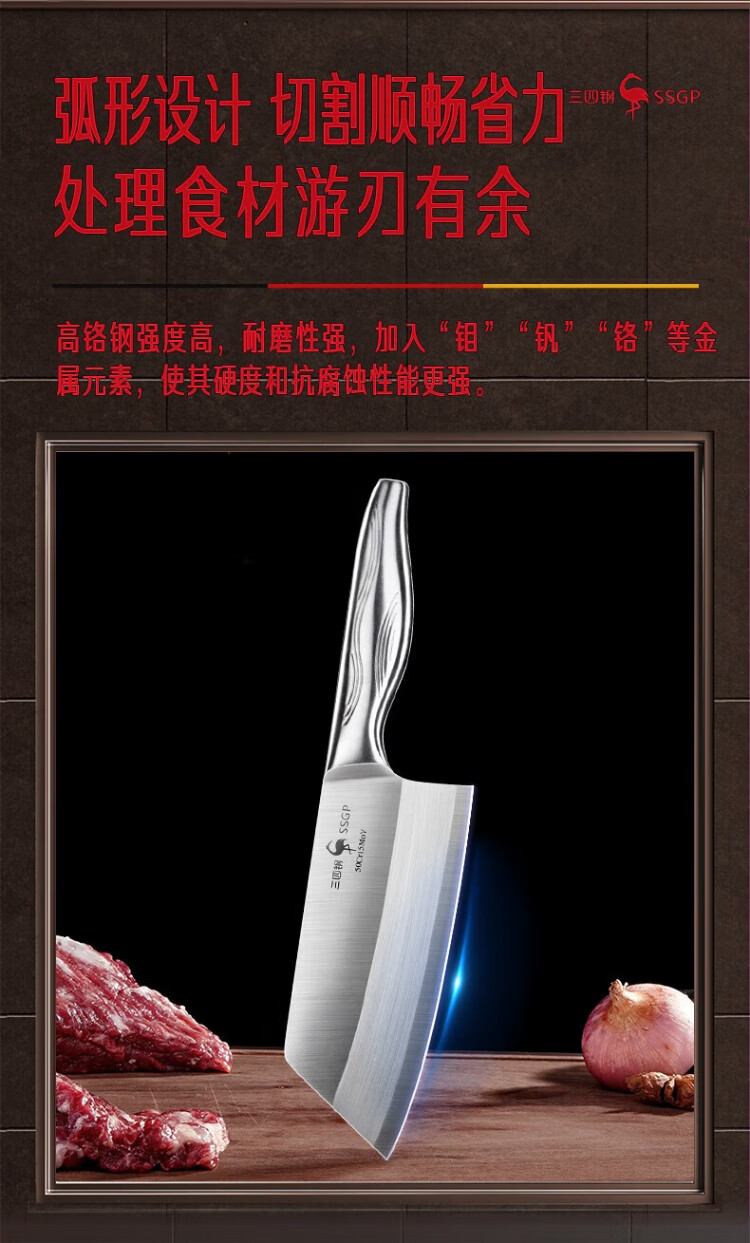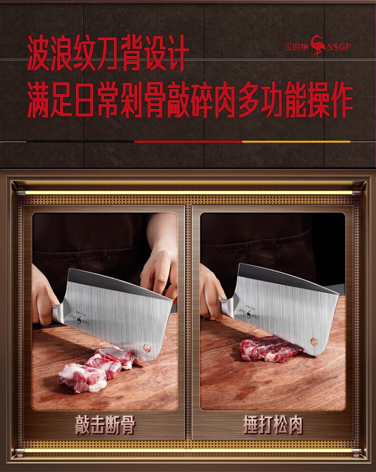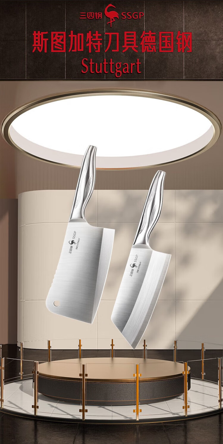 三四钢®菜刀砍骨刀切片刀切肉家用水果刀不锈钢刀具套装两件50cr 26061