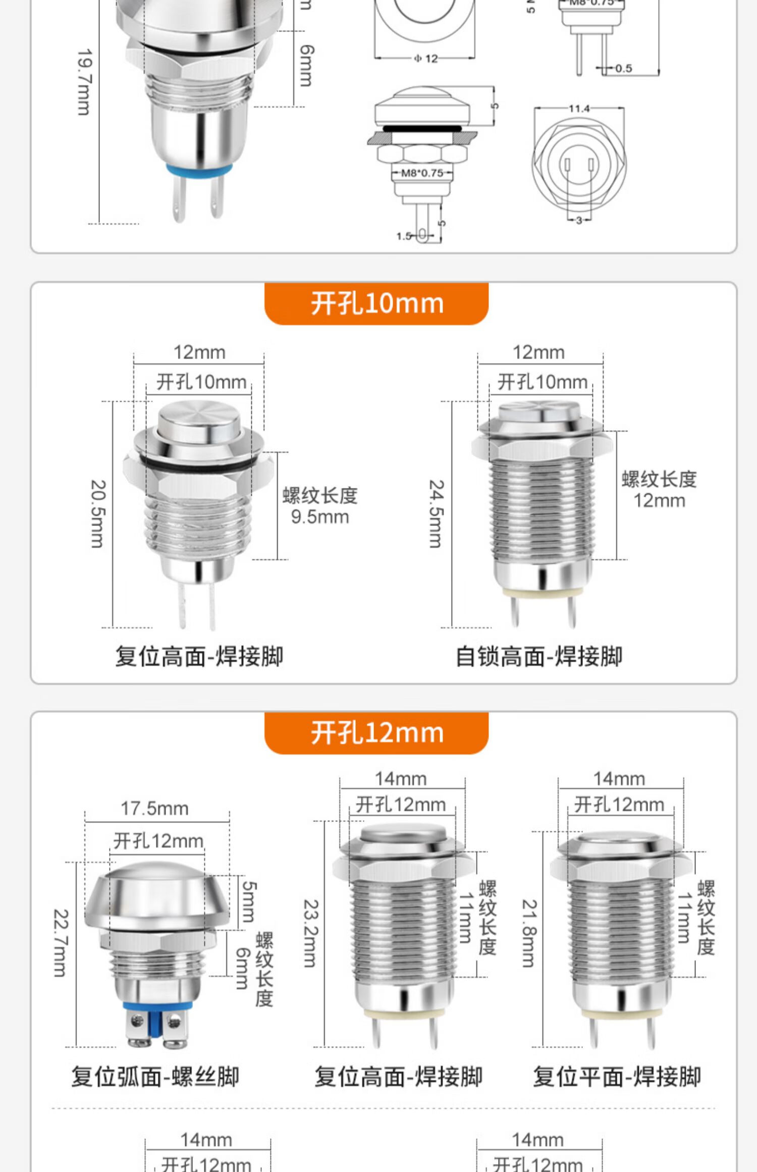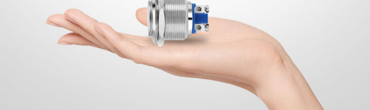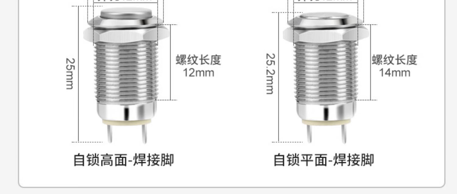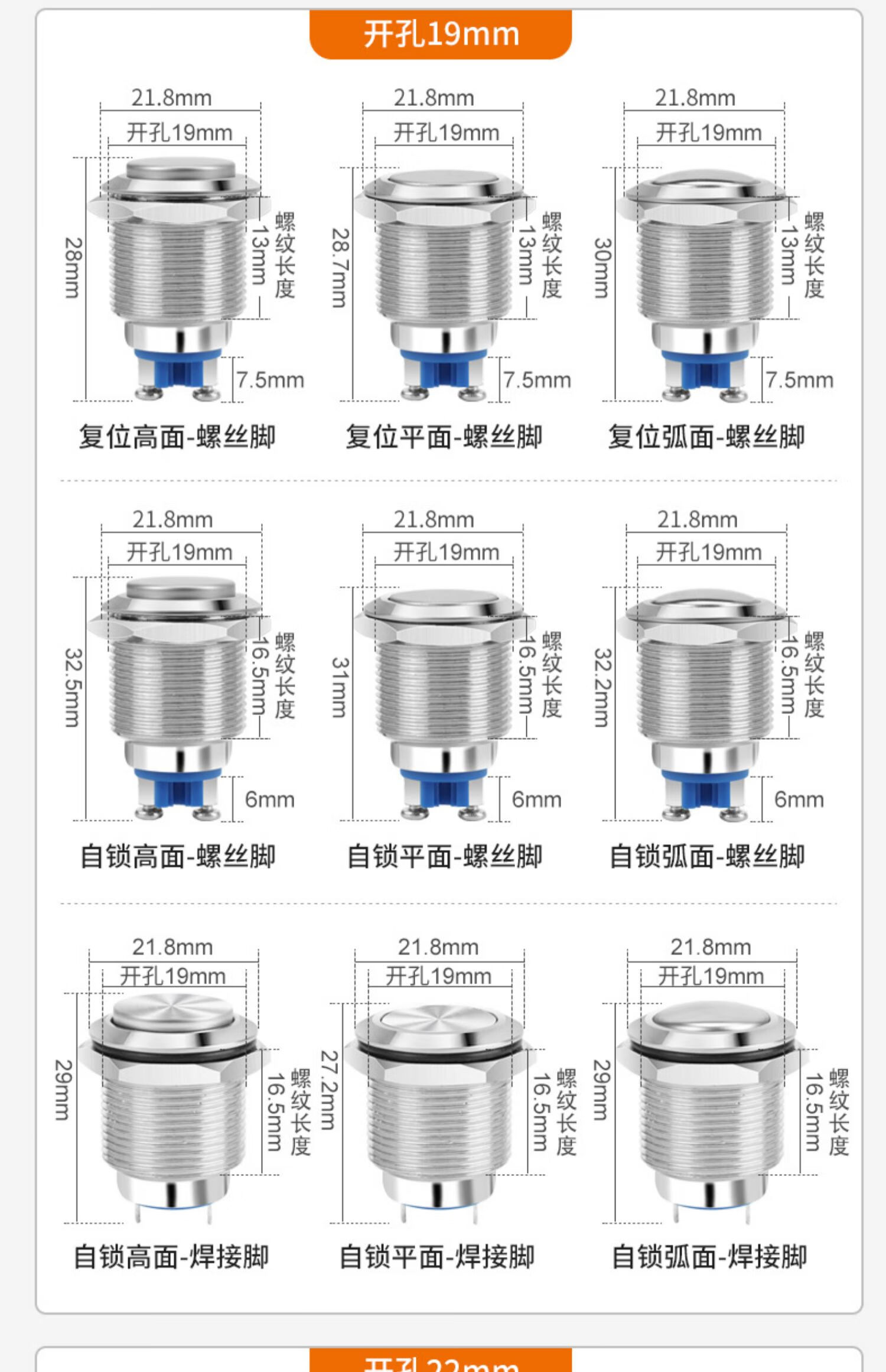 Huijun metal button switch waterproof small start stop switch power supply 16mm reset metal high head screw foot